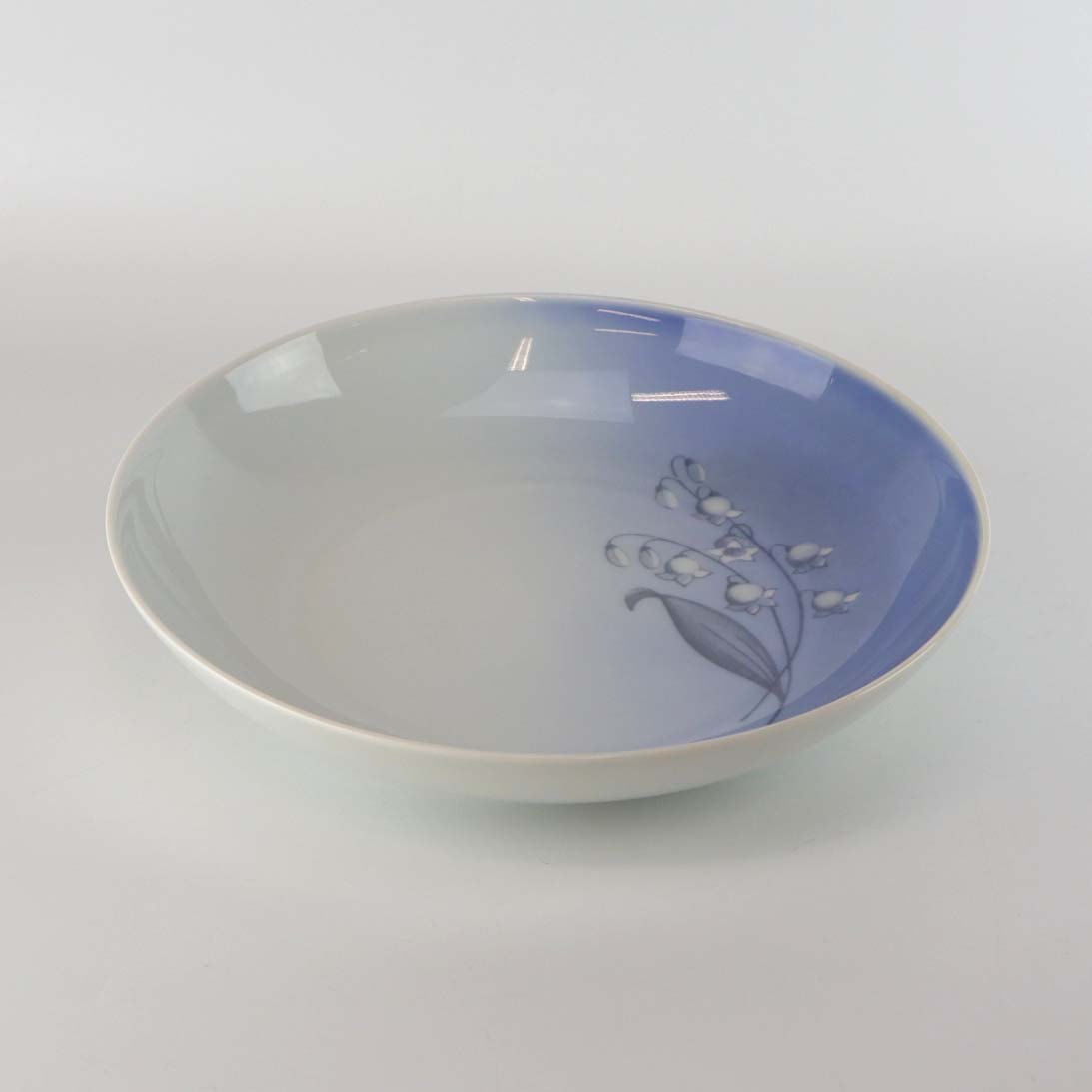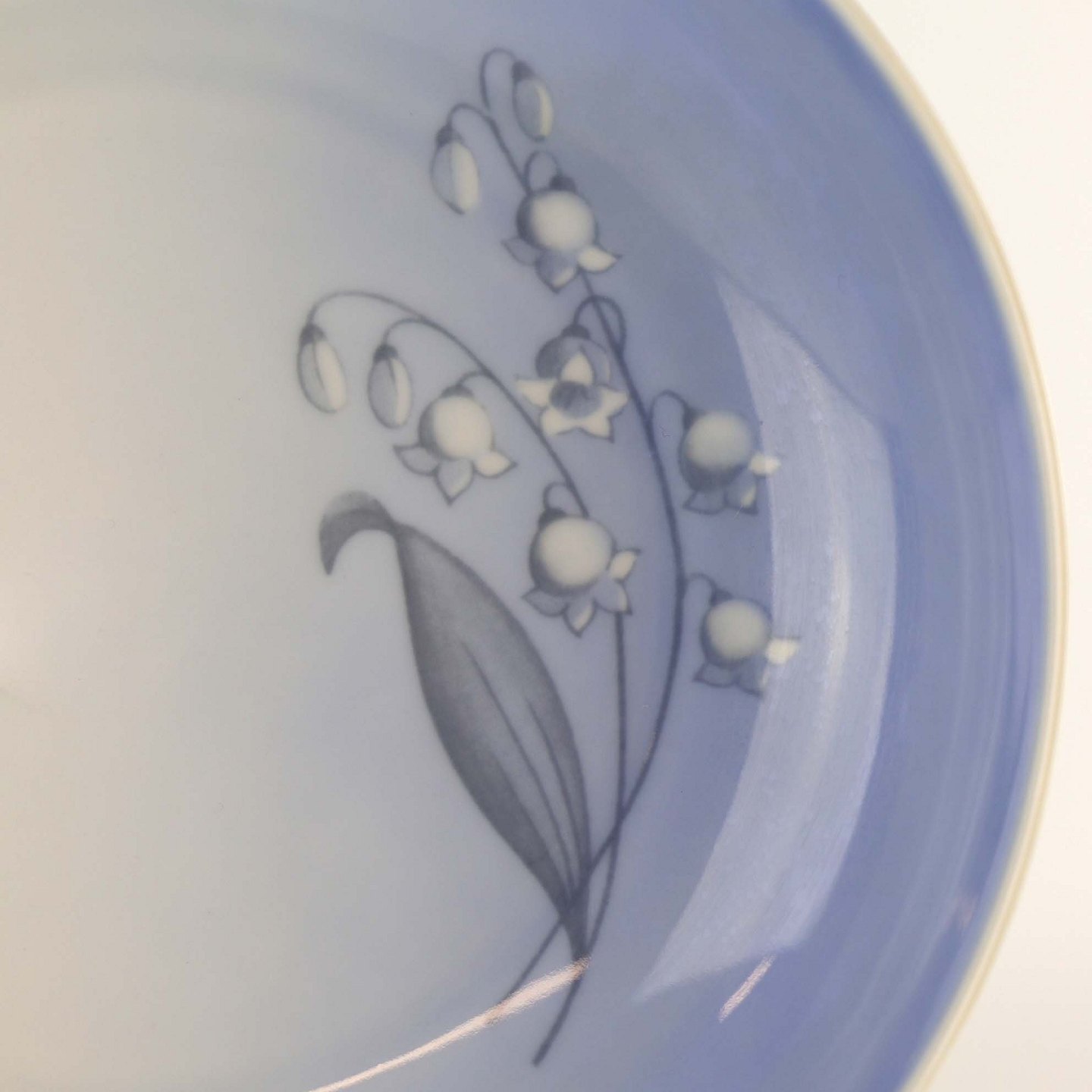 Stellet er fra 1970 og udformet i glat porcelæn med gradueret blålig tone samt motiv af en liljekonval.