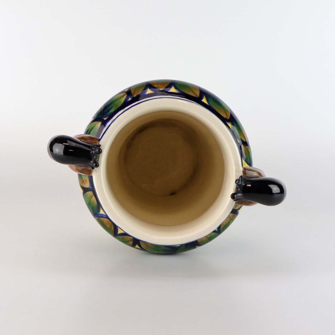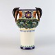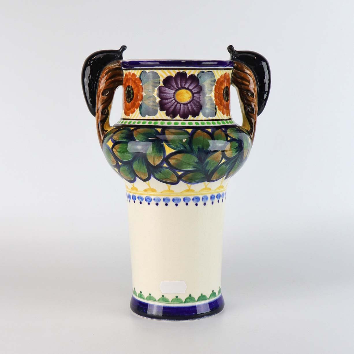 Vase i fajance dekoreret med blomster. På hankene er der udformede sorte skovsnegle. Nr. 1037/190