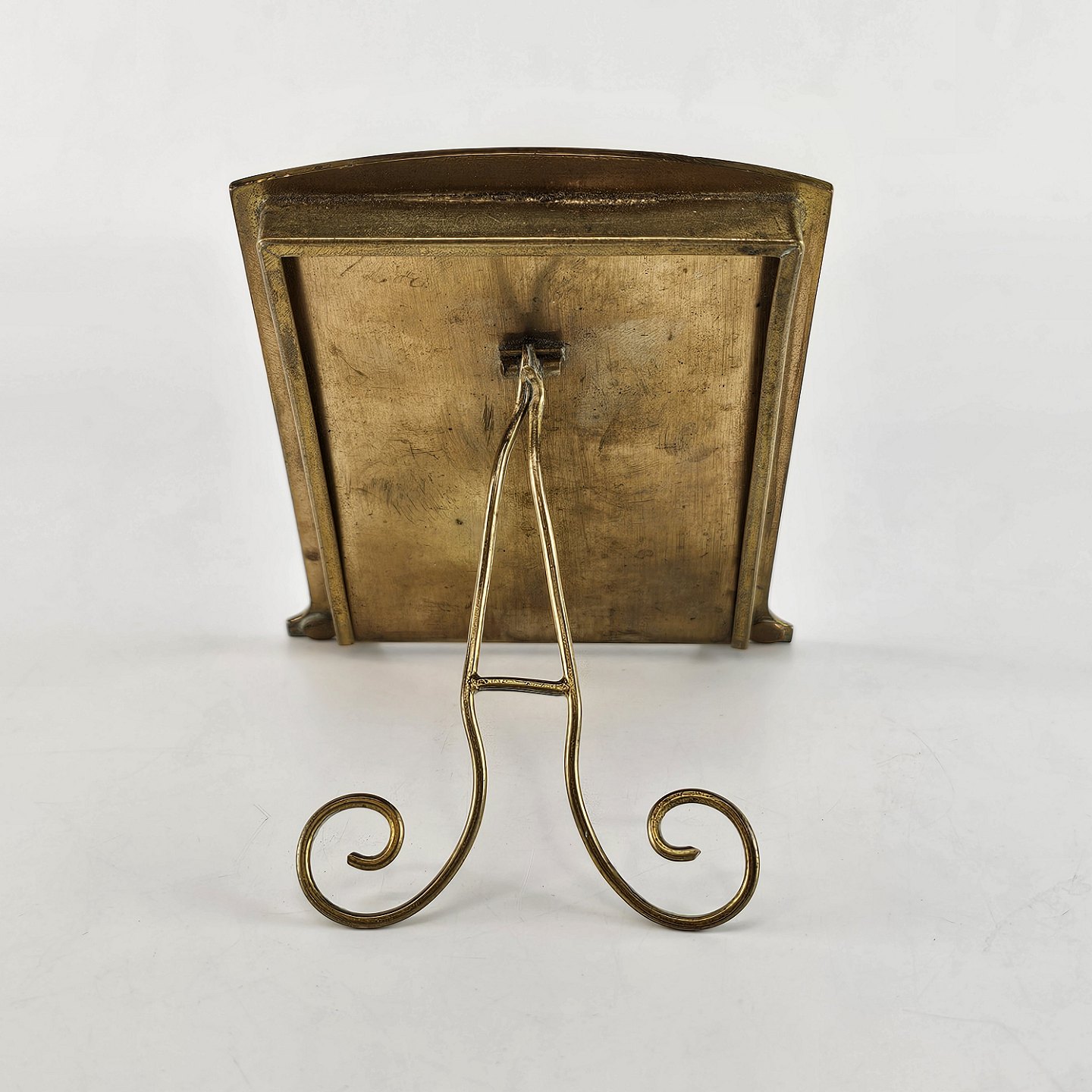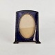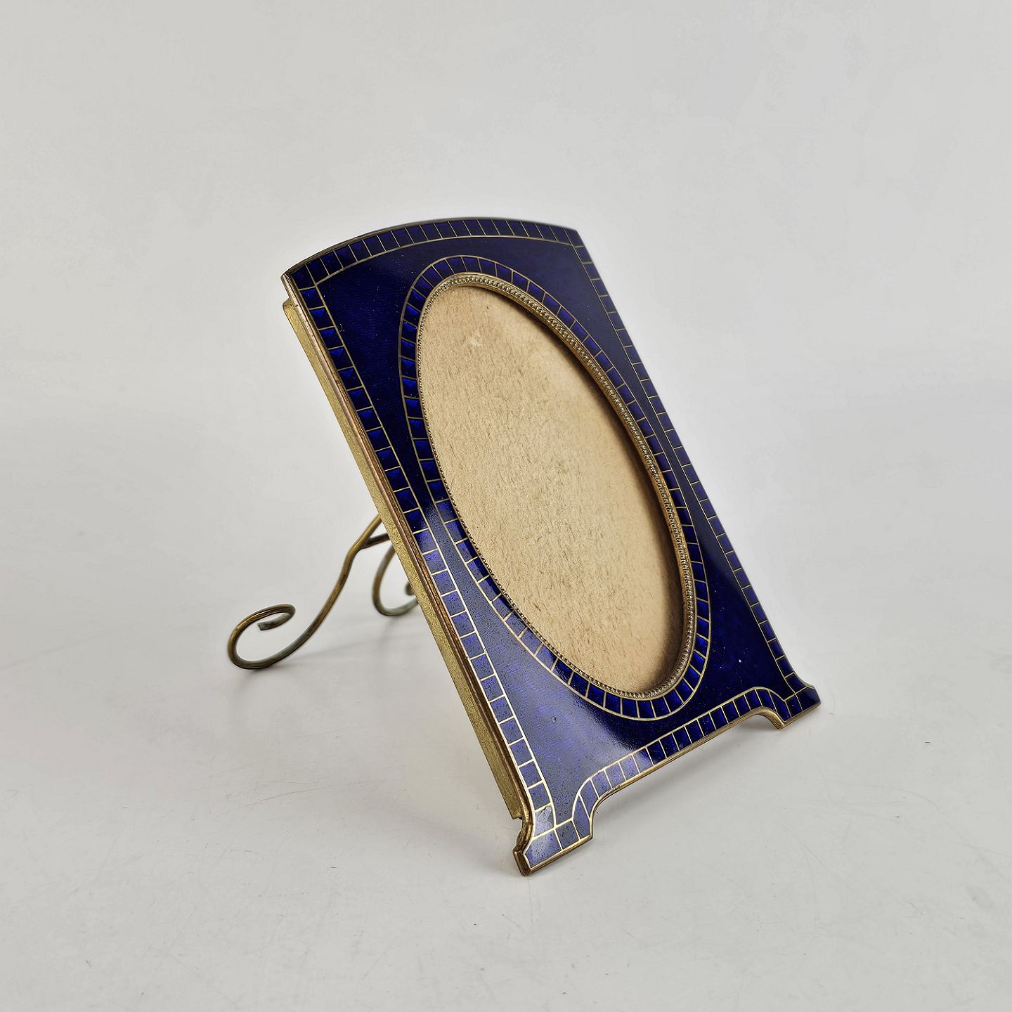 Billedramme i blåt glas med guld detaljer og messing bagplade og fod.