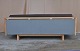 Tre personers sofa med sove-udtræk og stel i lakeret egetræ. Sæde og ryghynde er med springfjeder og betrukket med mørkebrunt uldstof . Møblet er en sovesofa, som udtrukket kan rumme to personer. Model GE-77