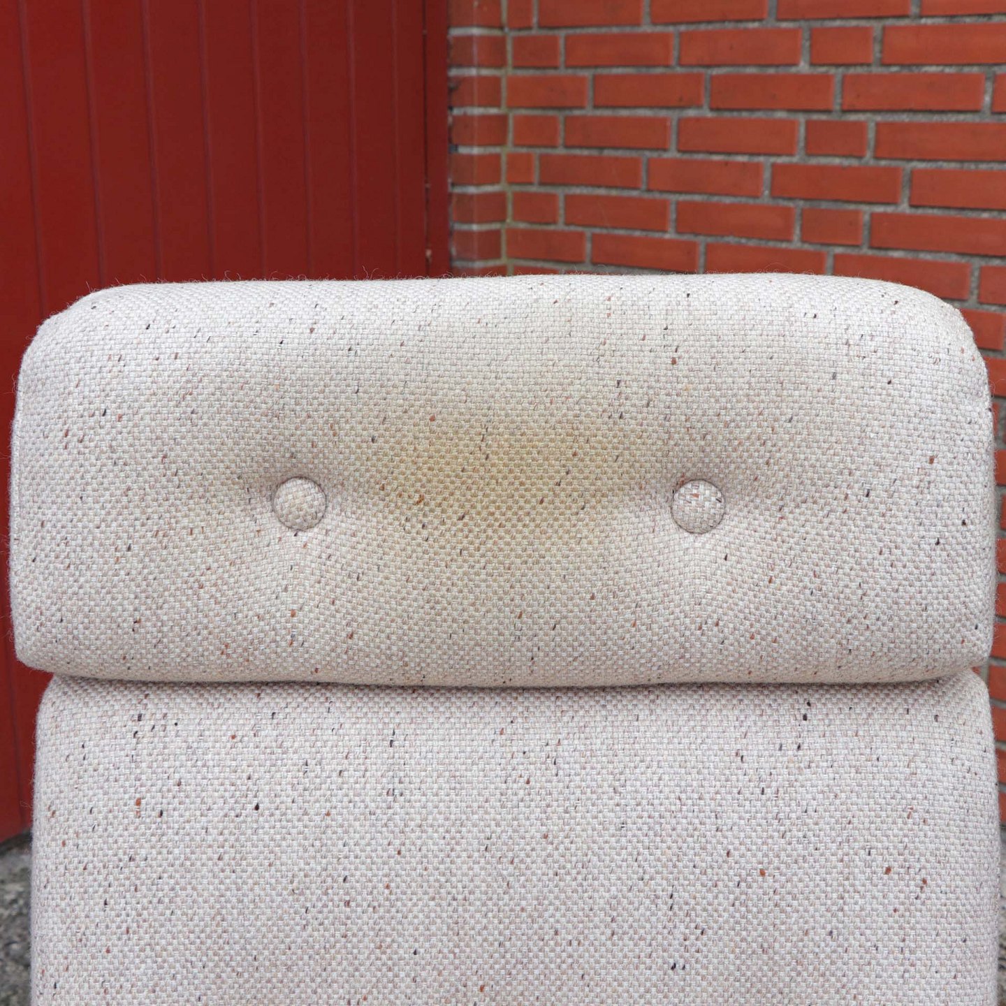 Fremstår med lettere brugsspor på stel og misfarvning på uldstoffet