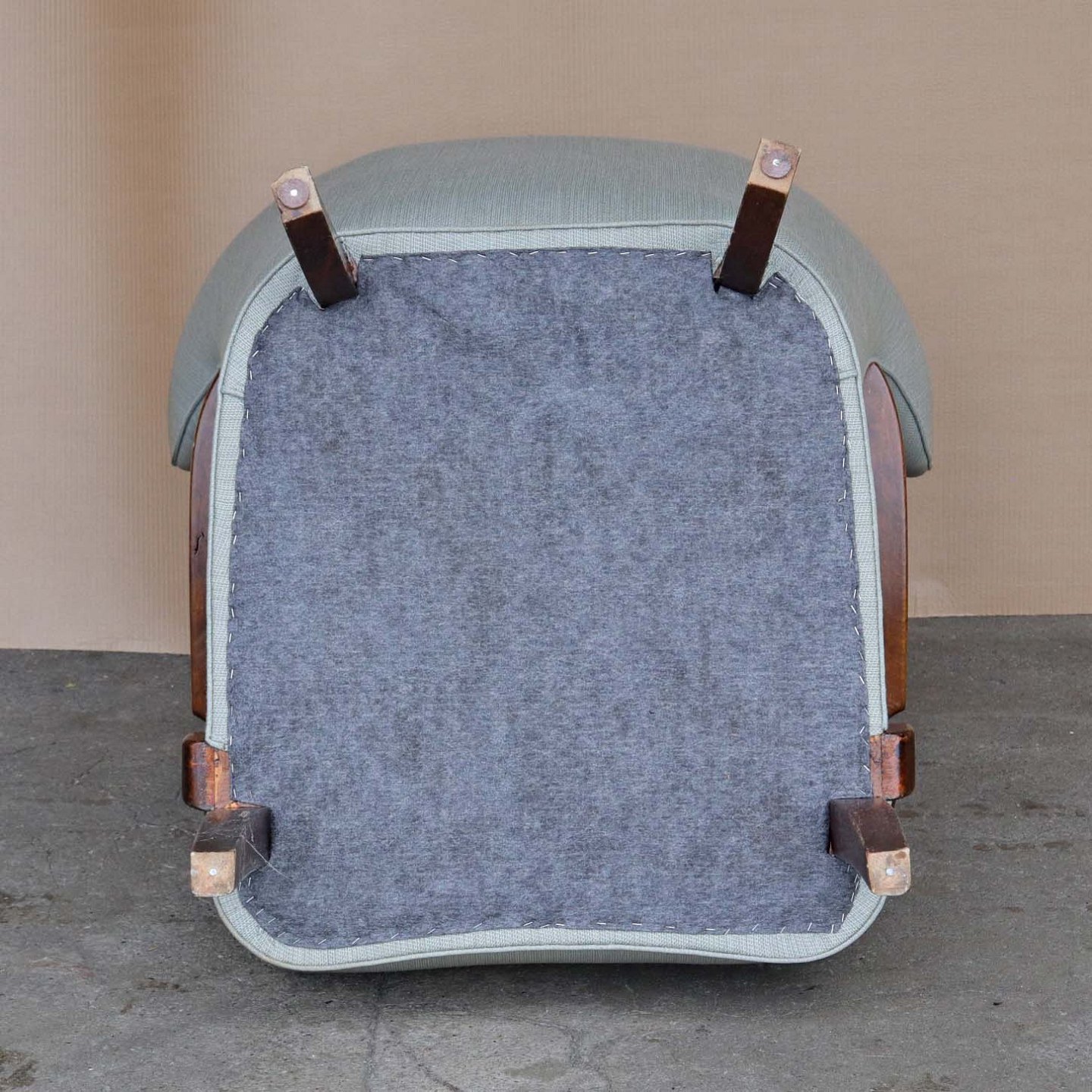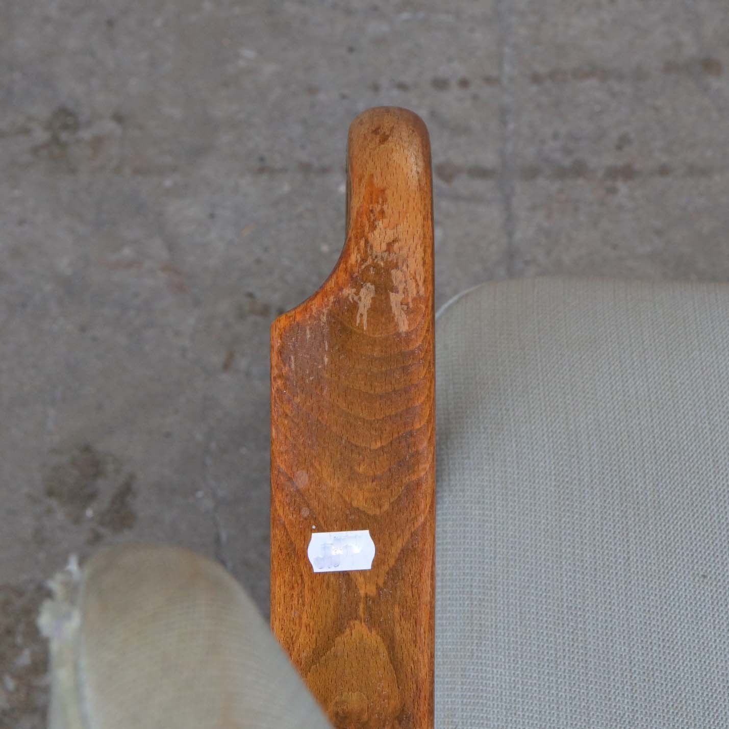 Fremstår med brugsspor på stel og hul i stof. Trænger til ompolstring.