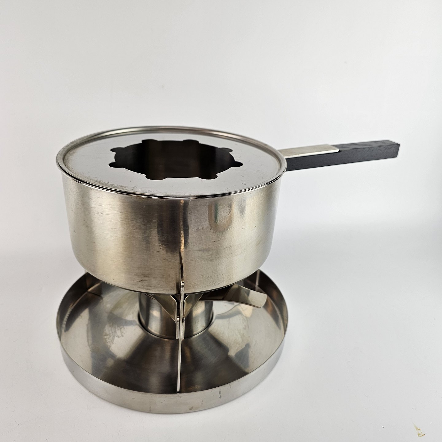 Stelton fonduesæt i rustfrit stål som indeholder med bakke, stander, brænder, gryde og låg. Model 500/2