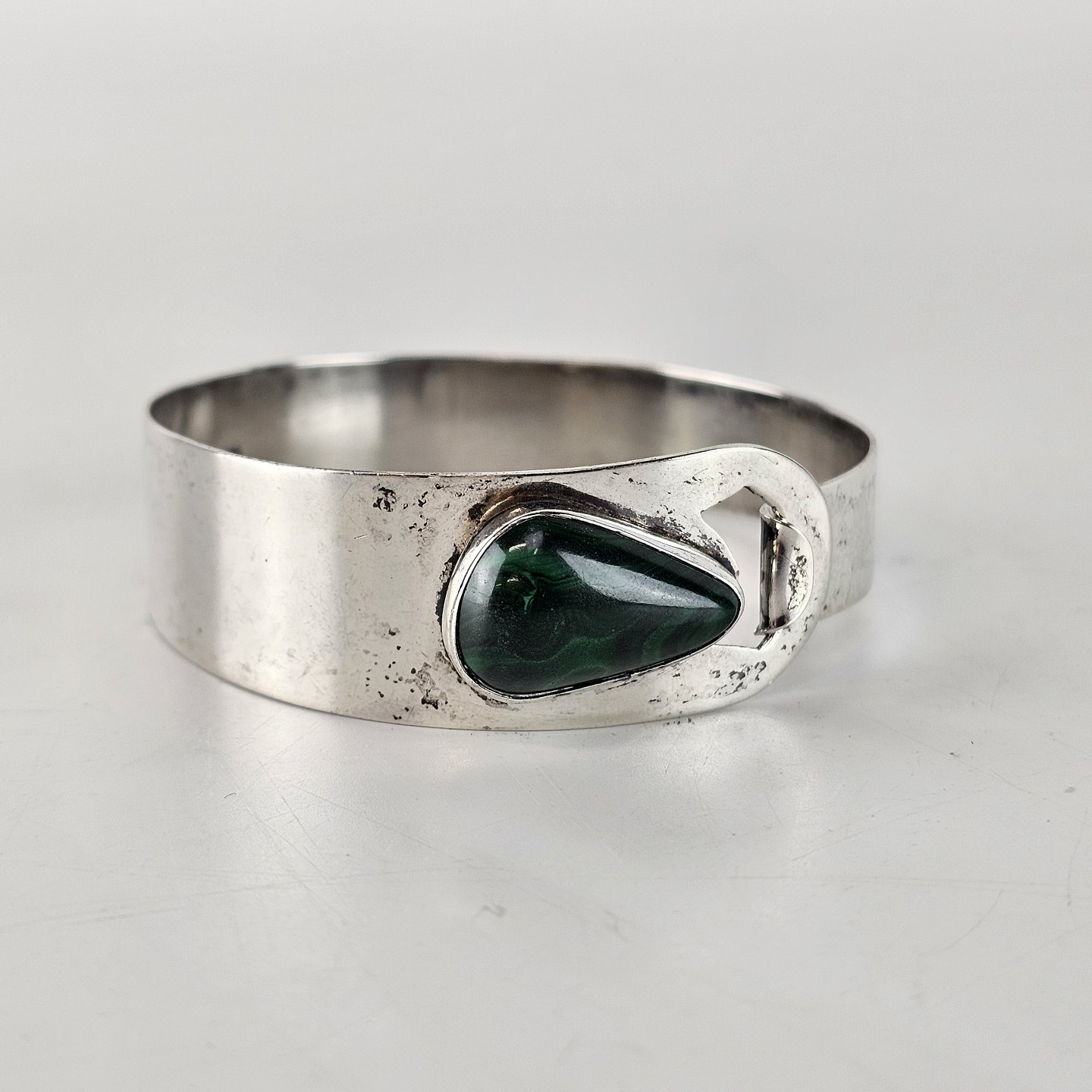 Broche med grøn sten Skønvirke Sølv 5 cm