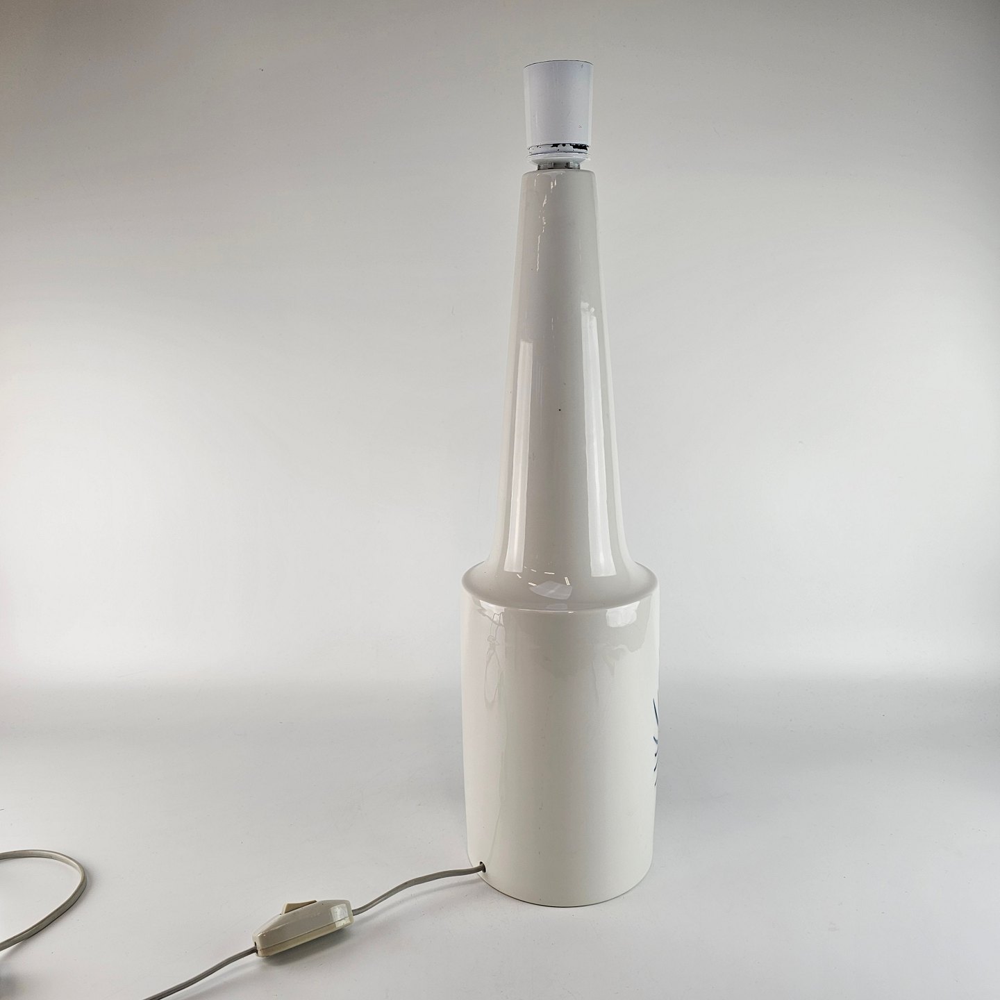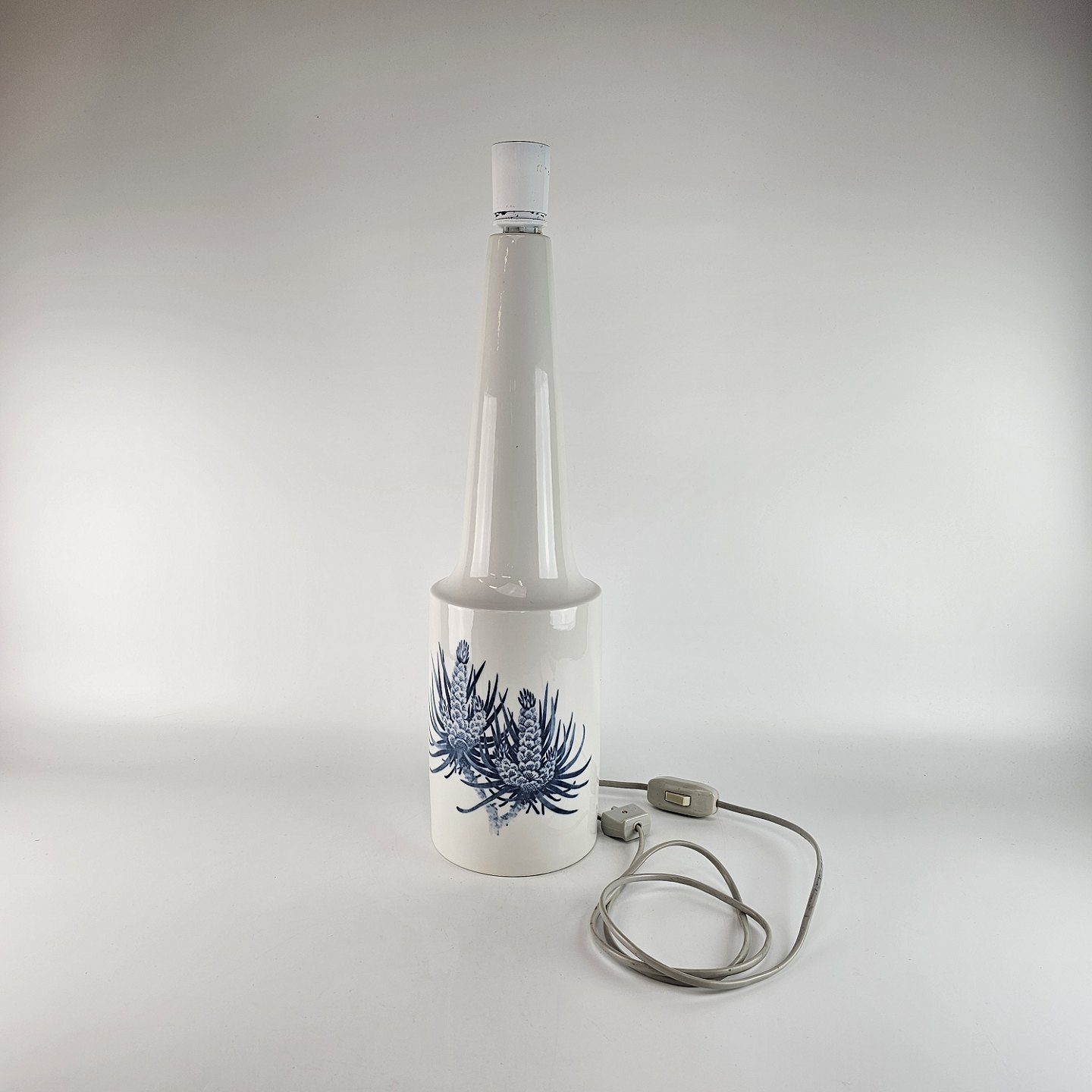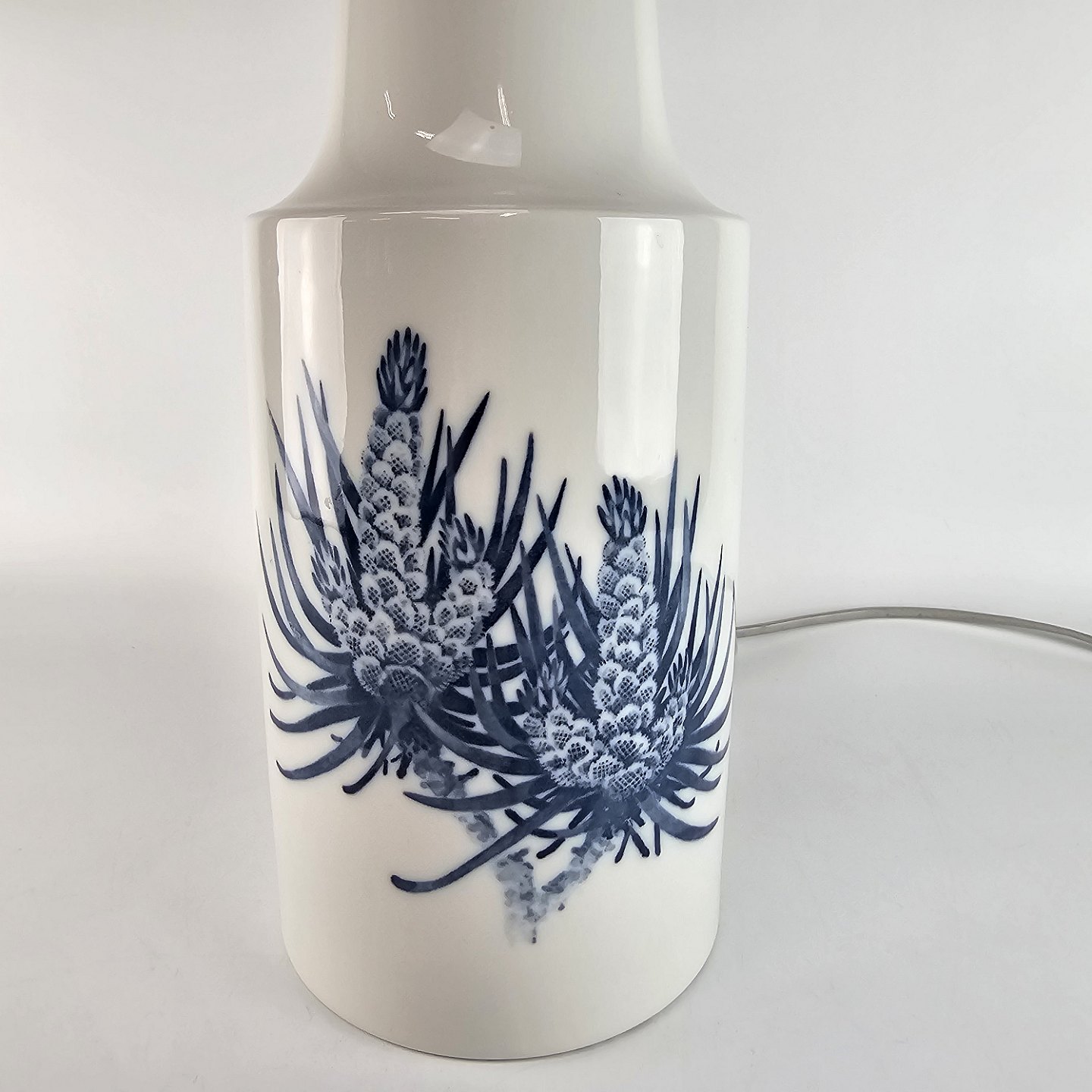 Kongelig bordlampe af porcelæn dekoreret med blå tidsler.