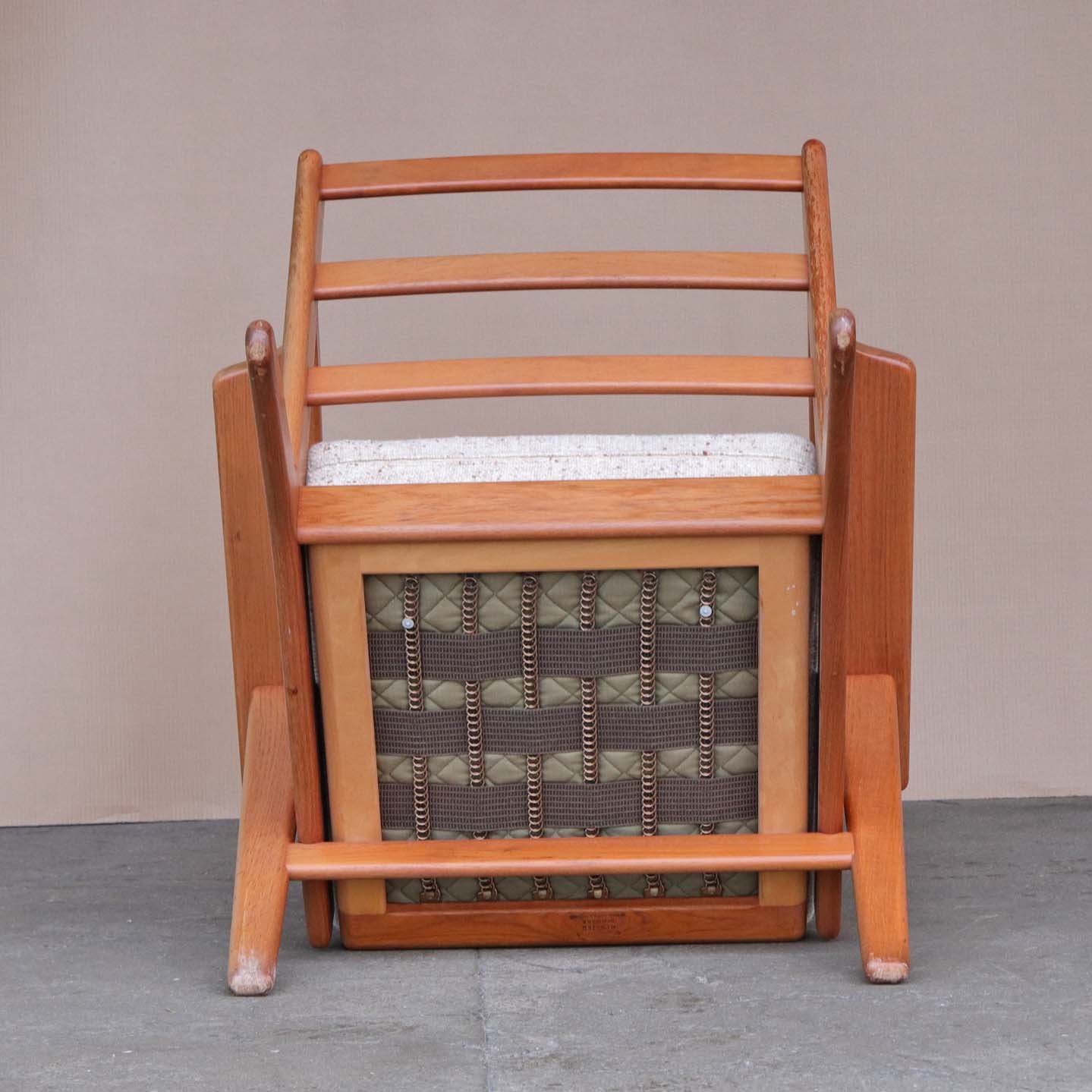 Fremstår med brugsspor på stel og stof. Lak har udtørret træ og dermed gjort den lysere
