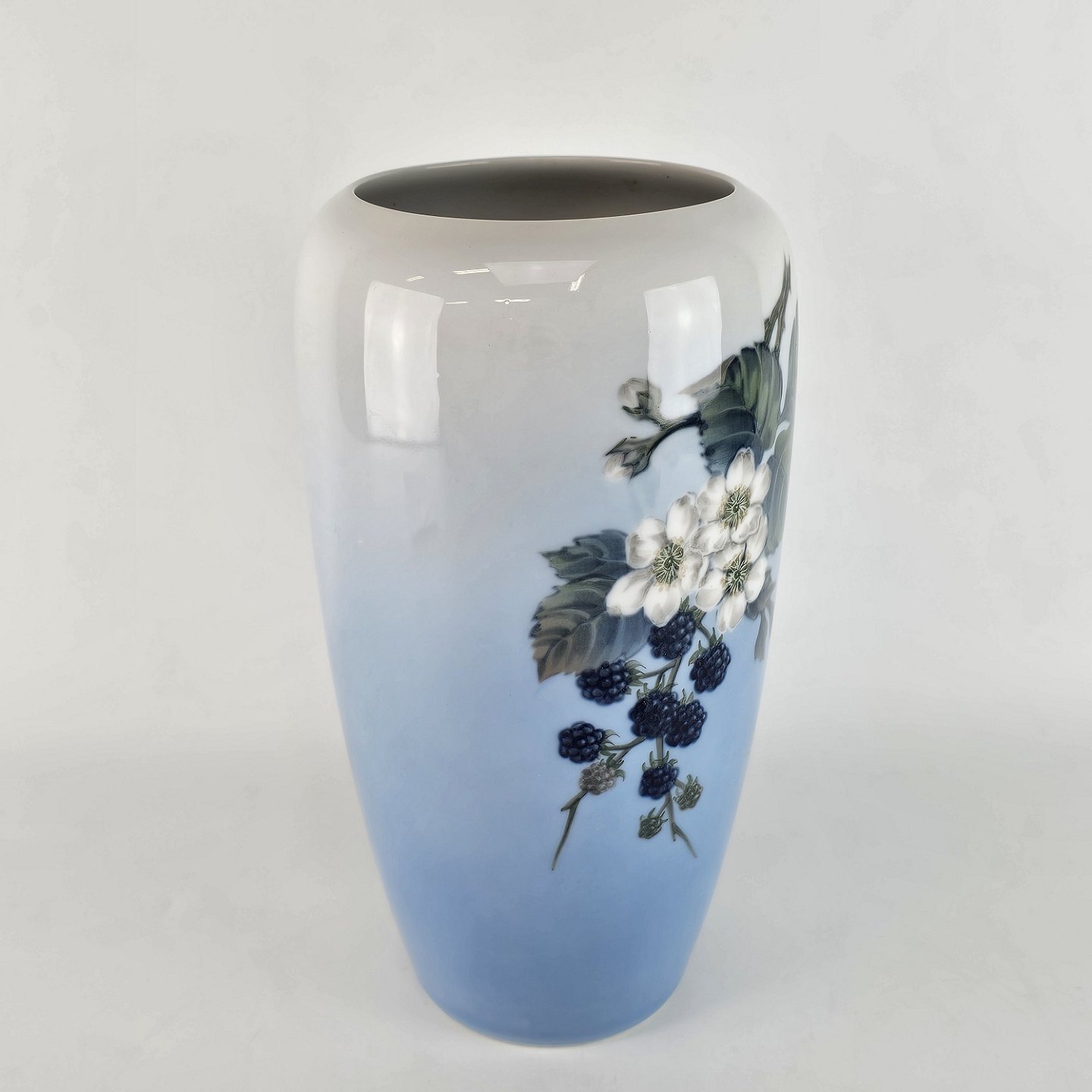 Kongelig vase i porcelæn med motiv af grene med brombær på gradueret blå baggrund. Nr. 288/1049.