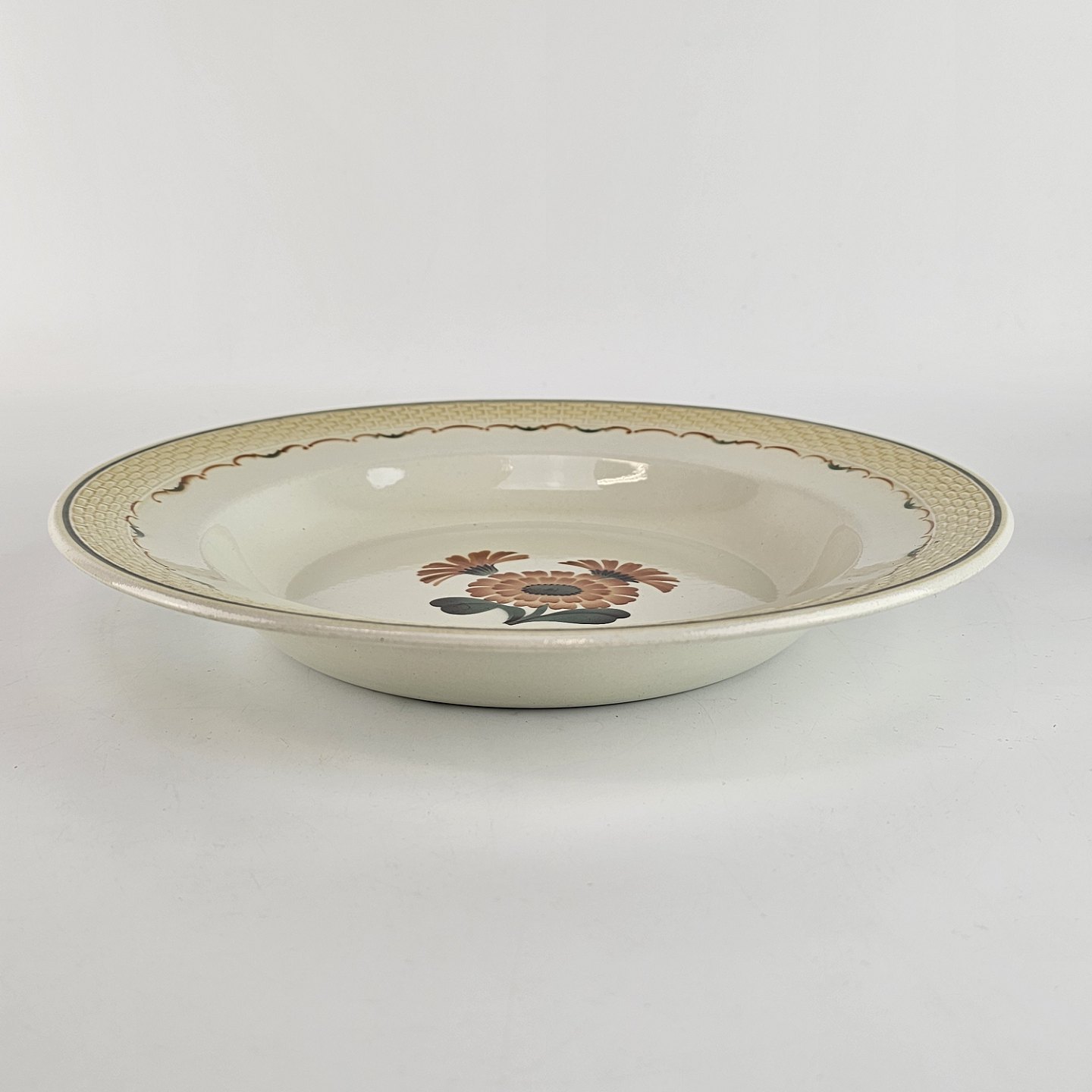 Stort dyb tallerken i fajance fra stellet Morgenfrue.
