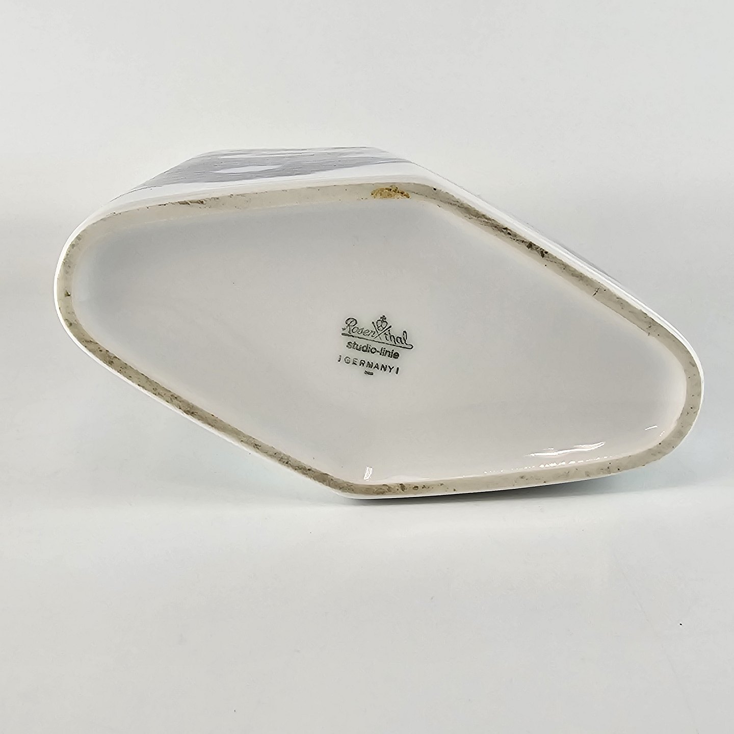 Høj, rudeformet Rosenthal vase med motiv af påfugl.