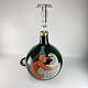 Bordlampe i mørkt grønt glas, med motiv af "Leda og Svanen" malet af Henry Heerup i forbindelse med hans 70 års fødselsdag.