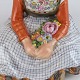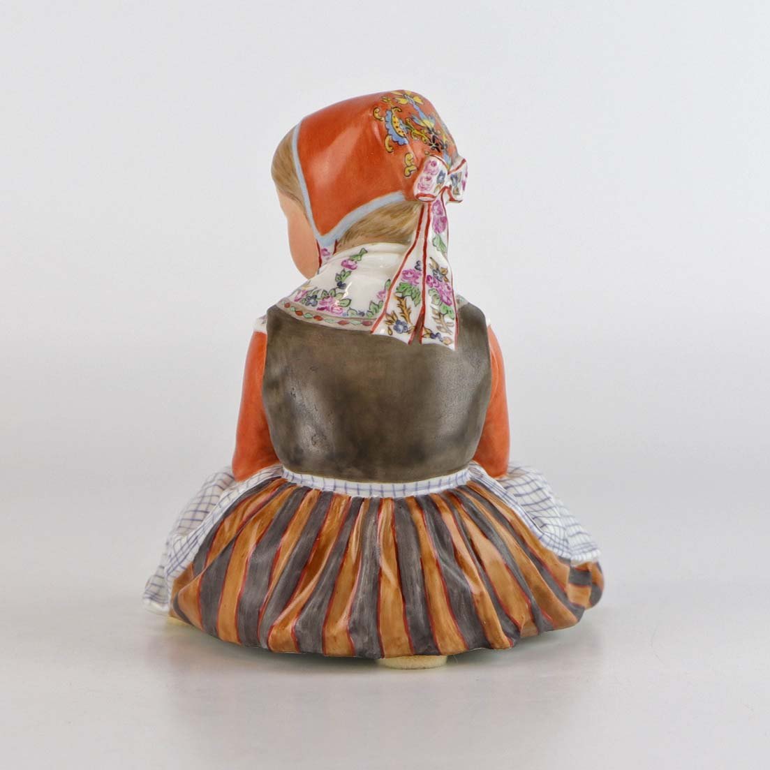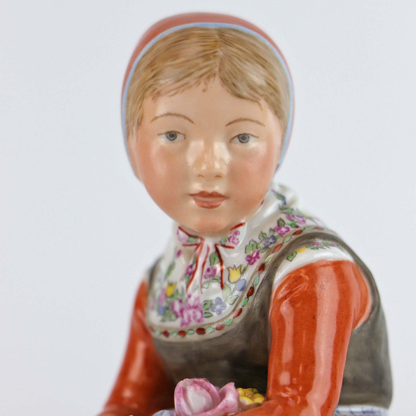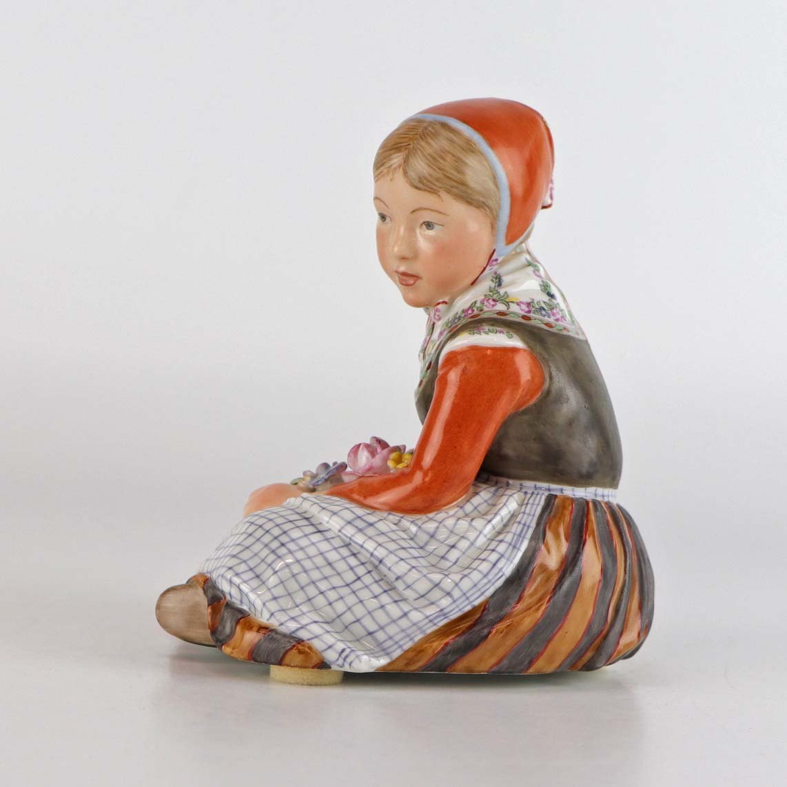 Kongelig figur i porcelæn med motiv af siddende blomsterpige i egnsdragt fra Sjælland. Nr. 12420