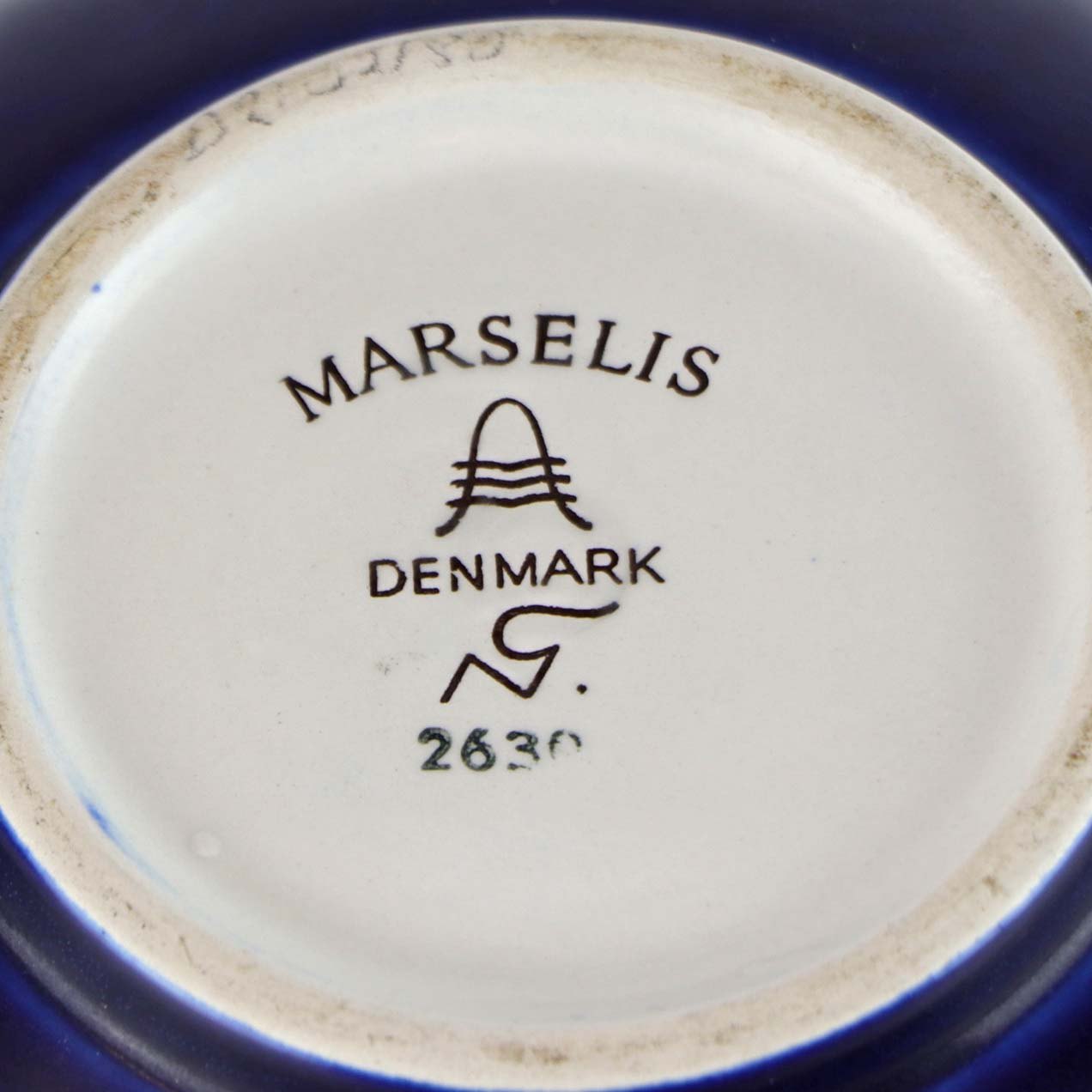 Kantet blå Marselis skål i fajance dekoreret med motiv af blade. Nr. 2630