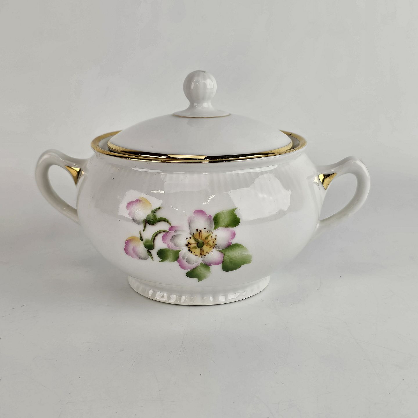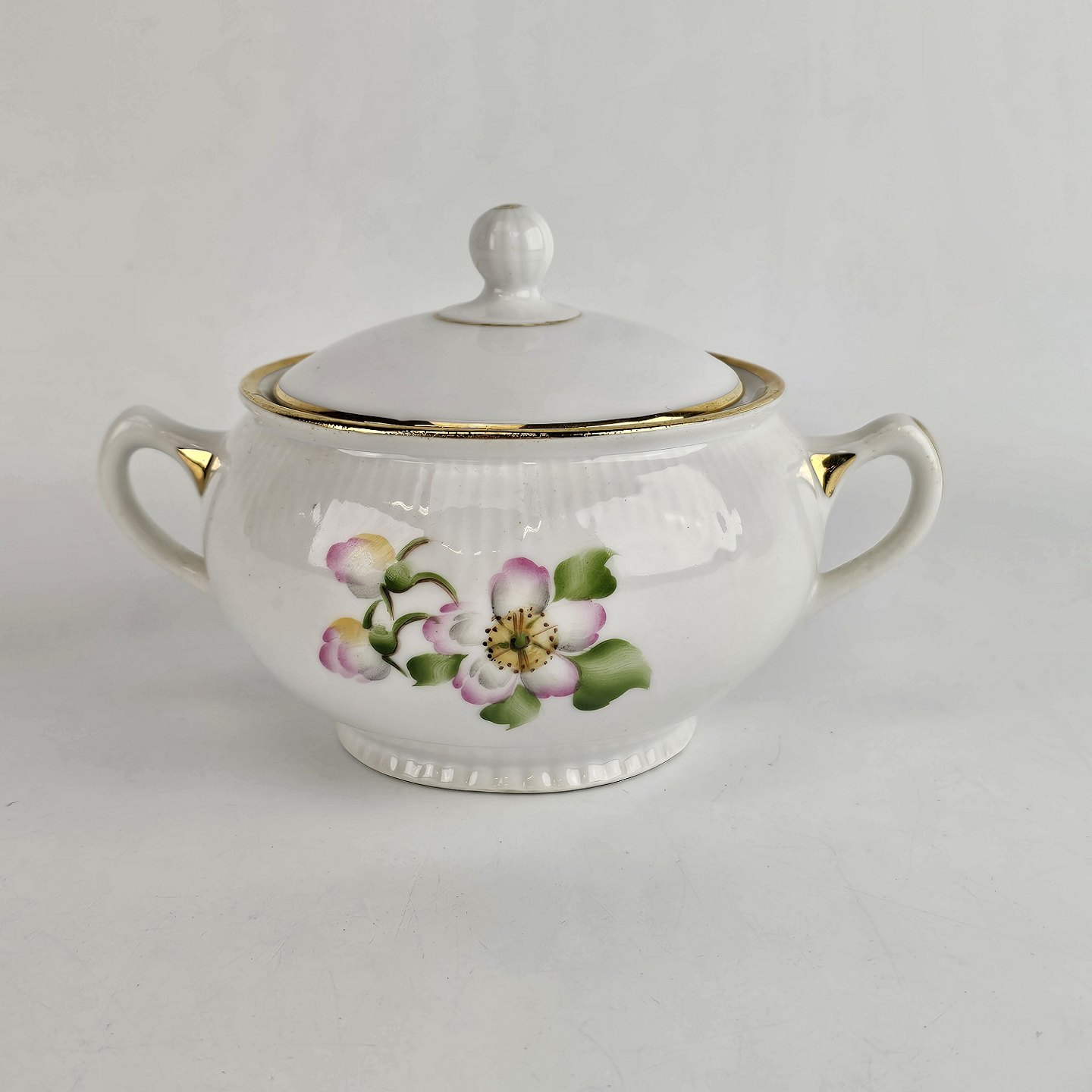 Sukkerskål i porcelæn fra stellet æbleblomst.