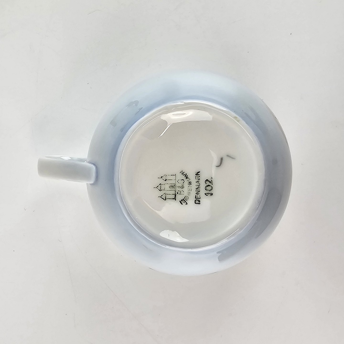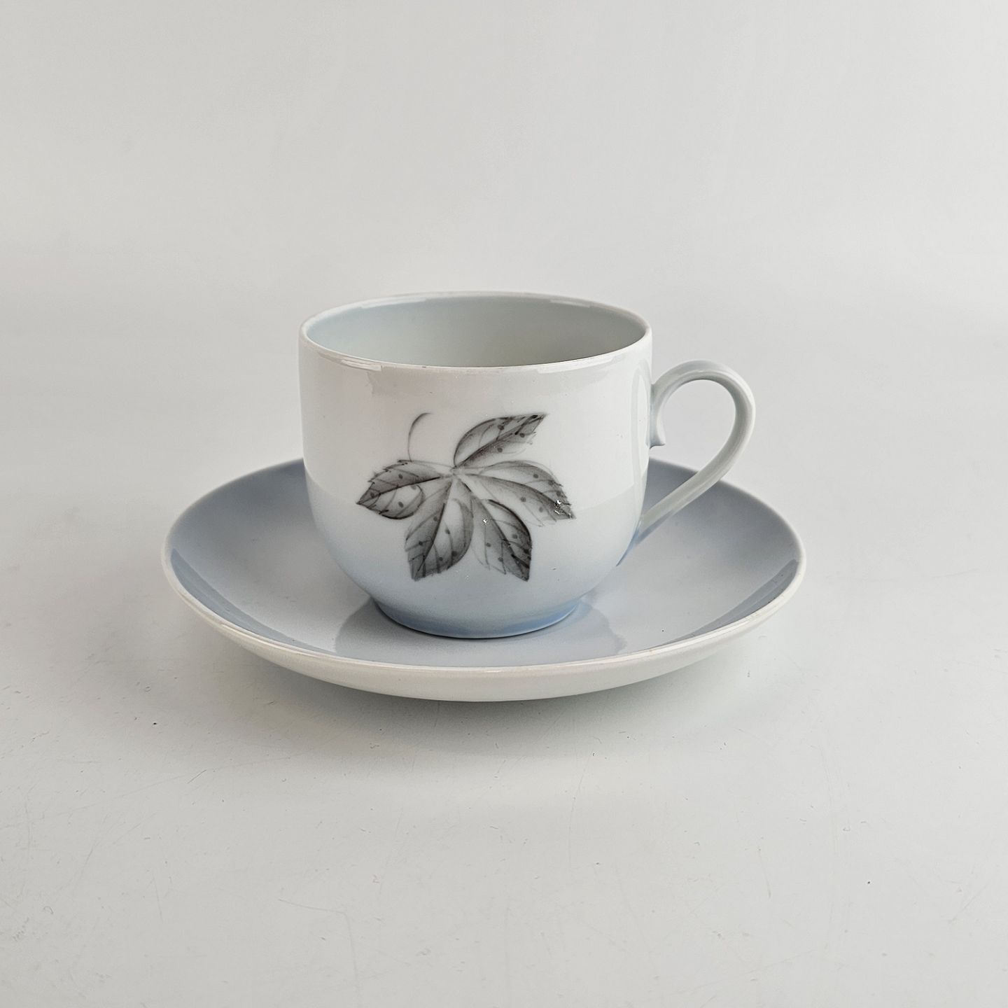 Kop og underkop i porcelæn fra stellet Løvfald. Nr 102.