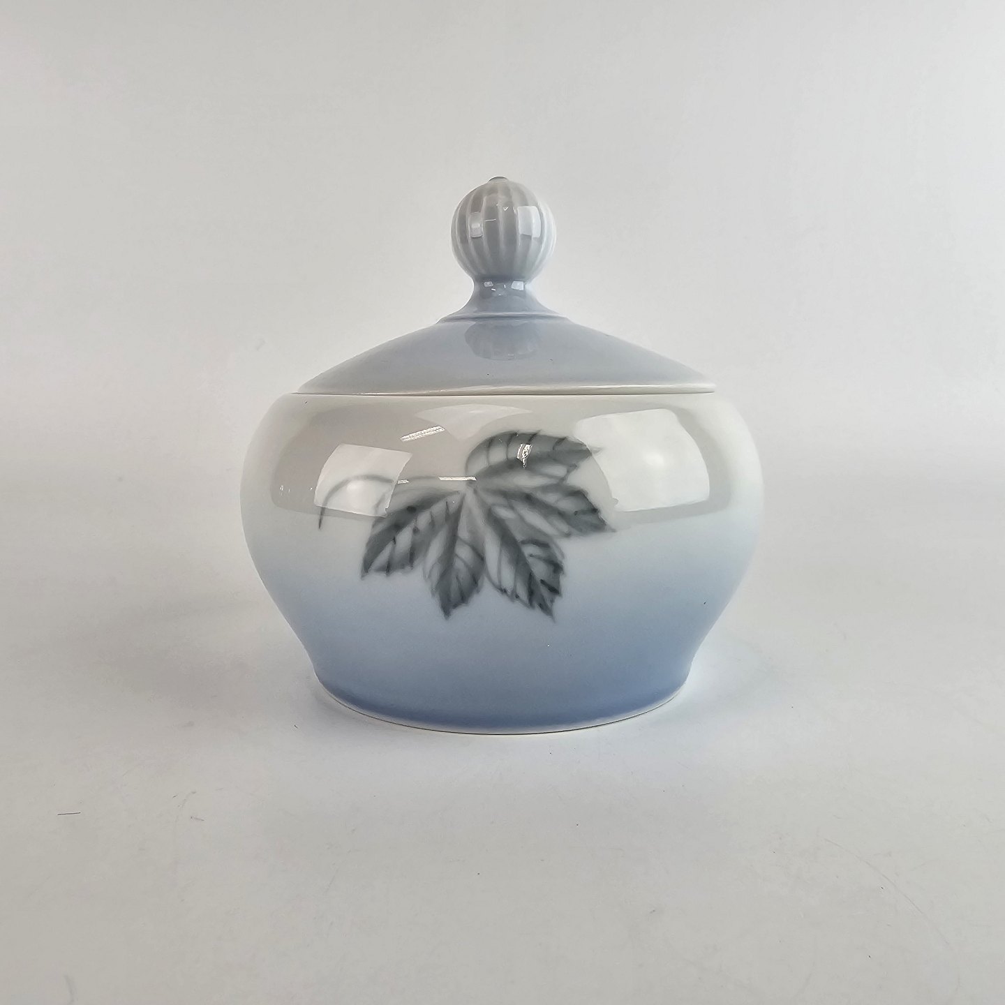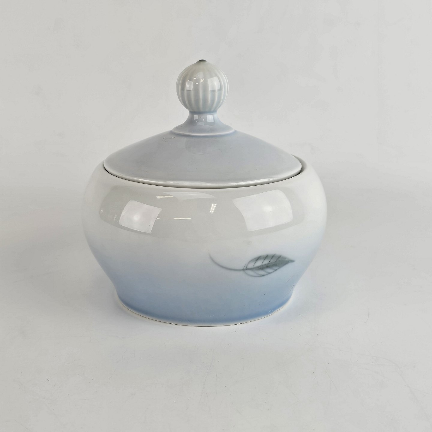 Sukkerskål i porcelæn fra stellet Løvfald. Nr 302.
