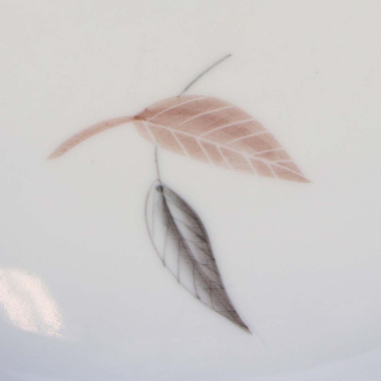 Løvfald er hvidt porcelæn som toner ud i blå, dekoreret med faldende blade i sort og rødt.