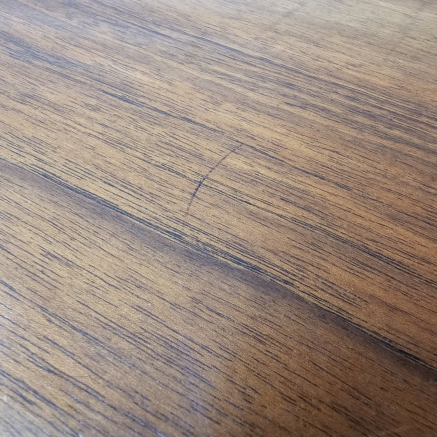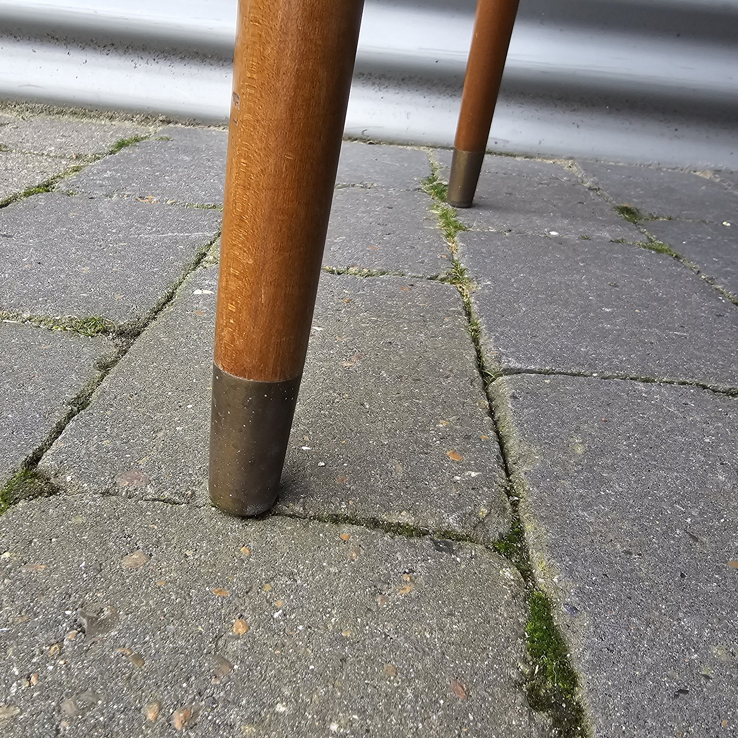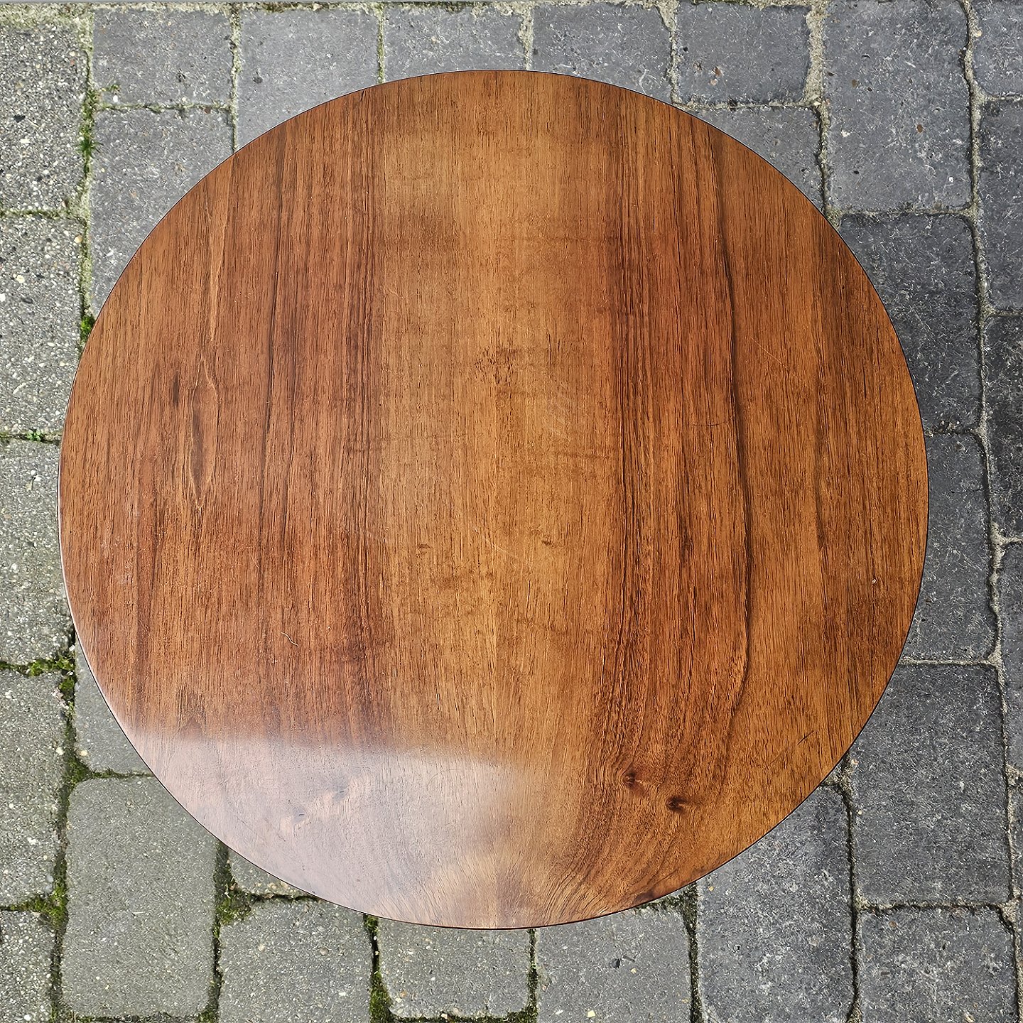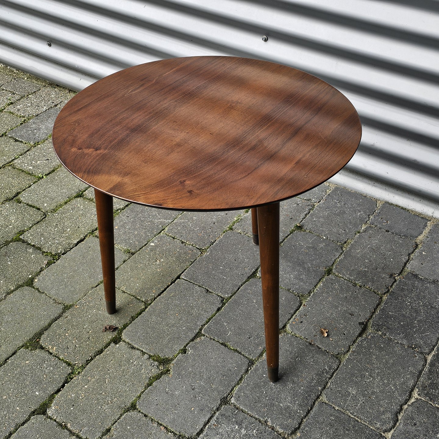 Lille rundt sofabord af palisander, med tre tilspidsede ben.