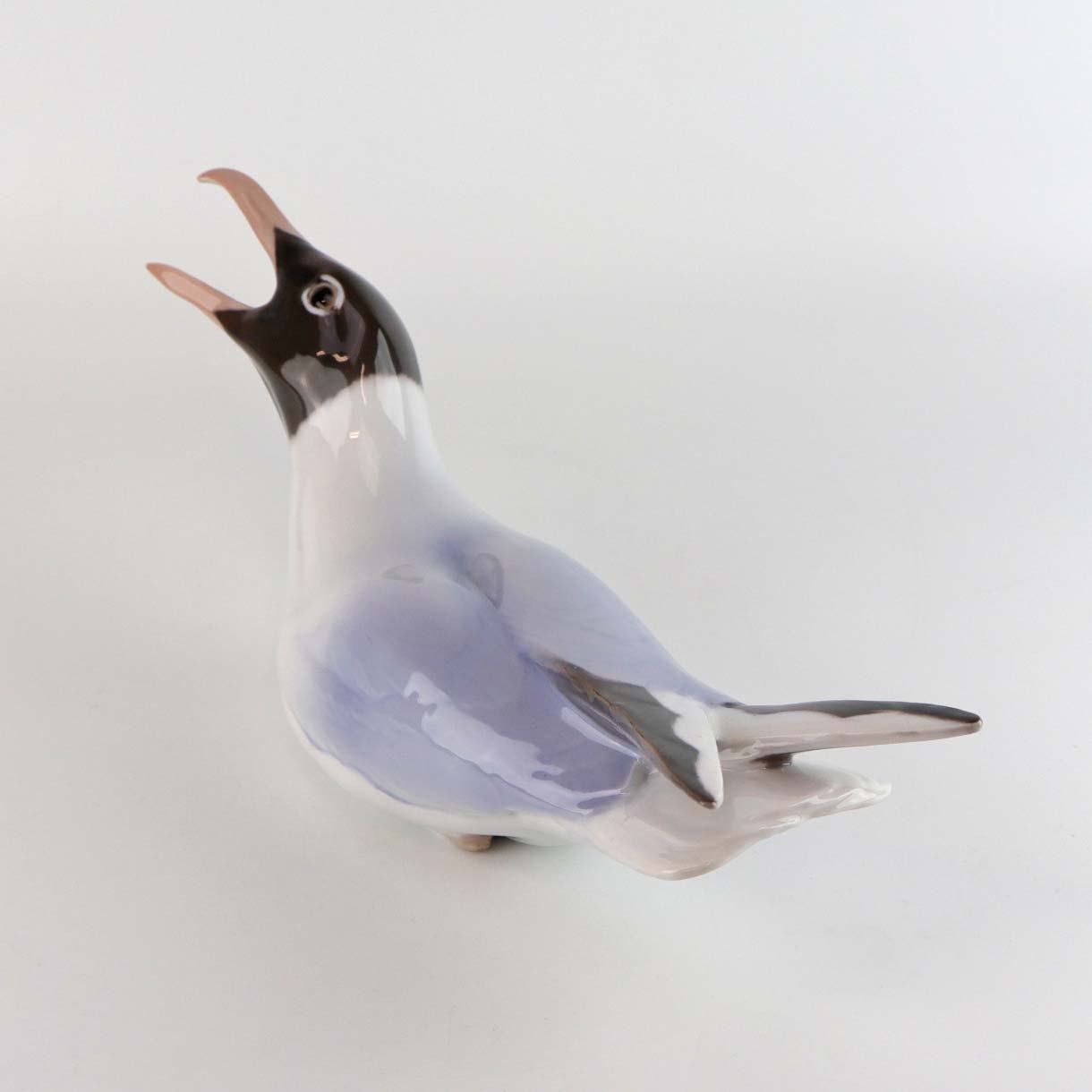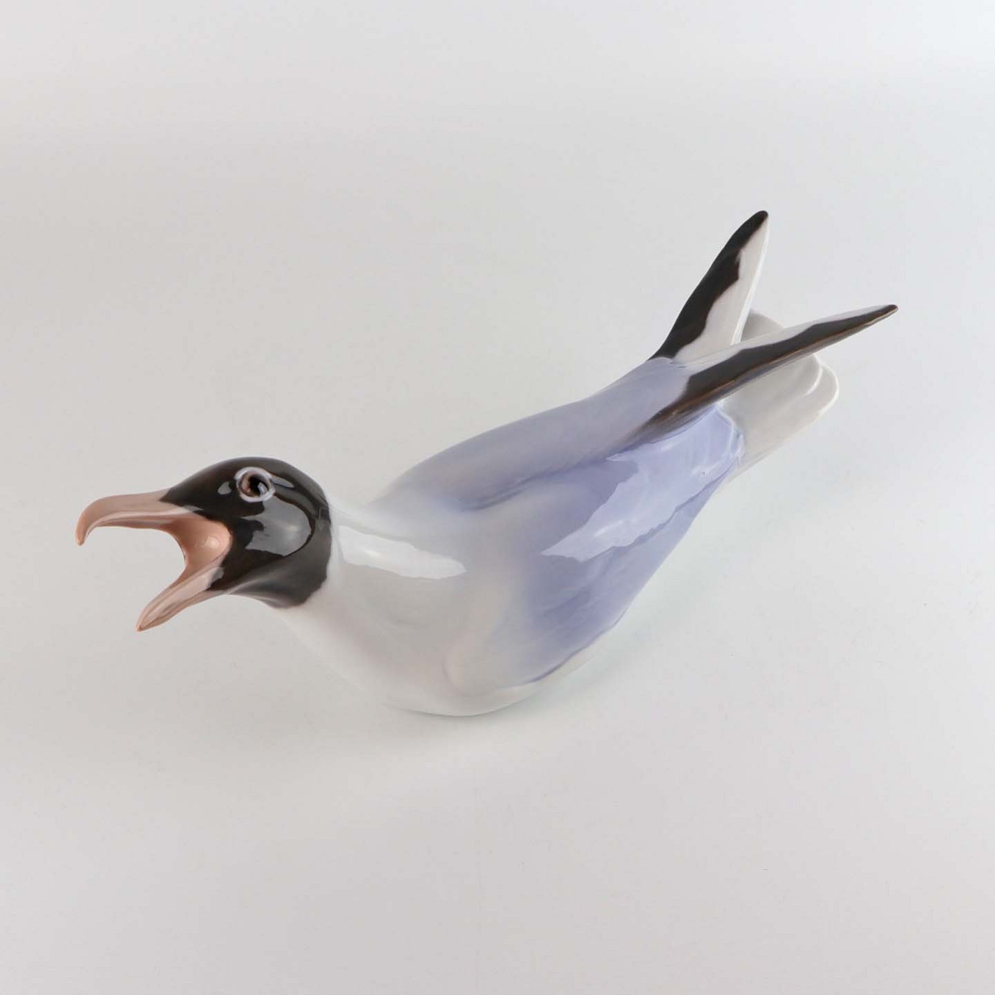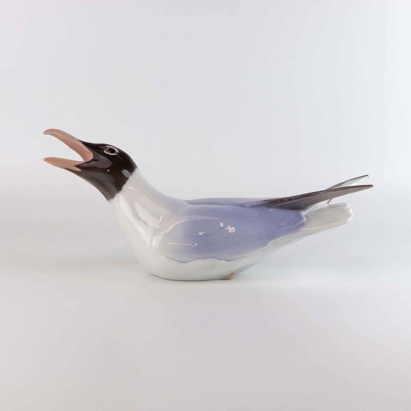 Figur i porcelæn med motiv hættemåge med åbent næb. Nr. 1727