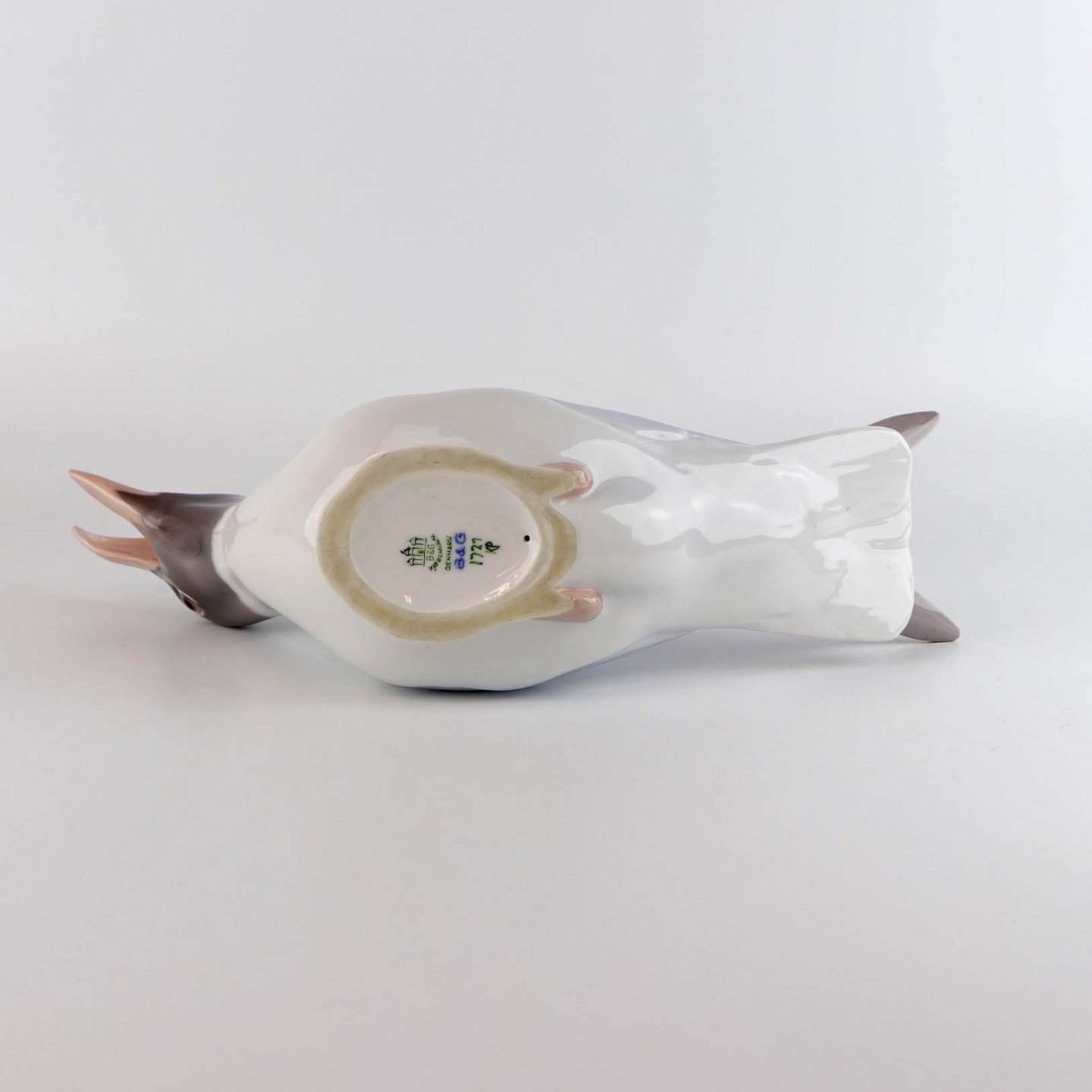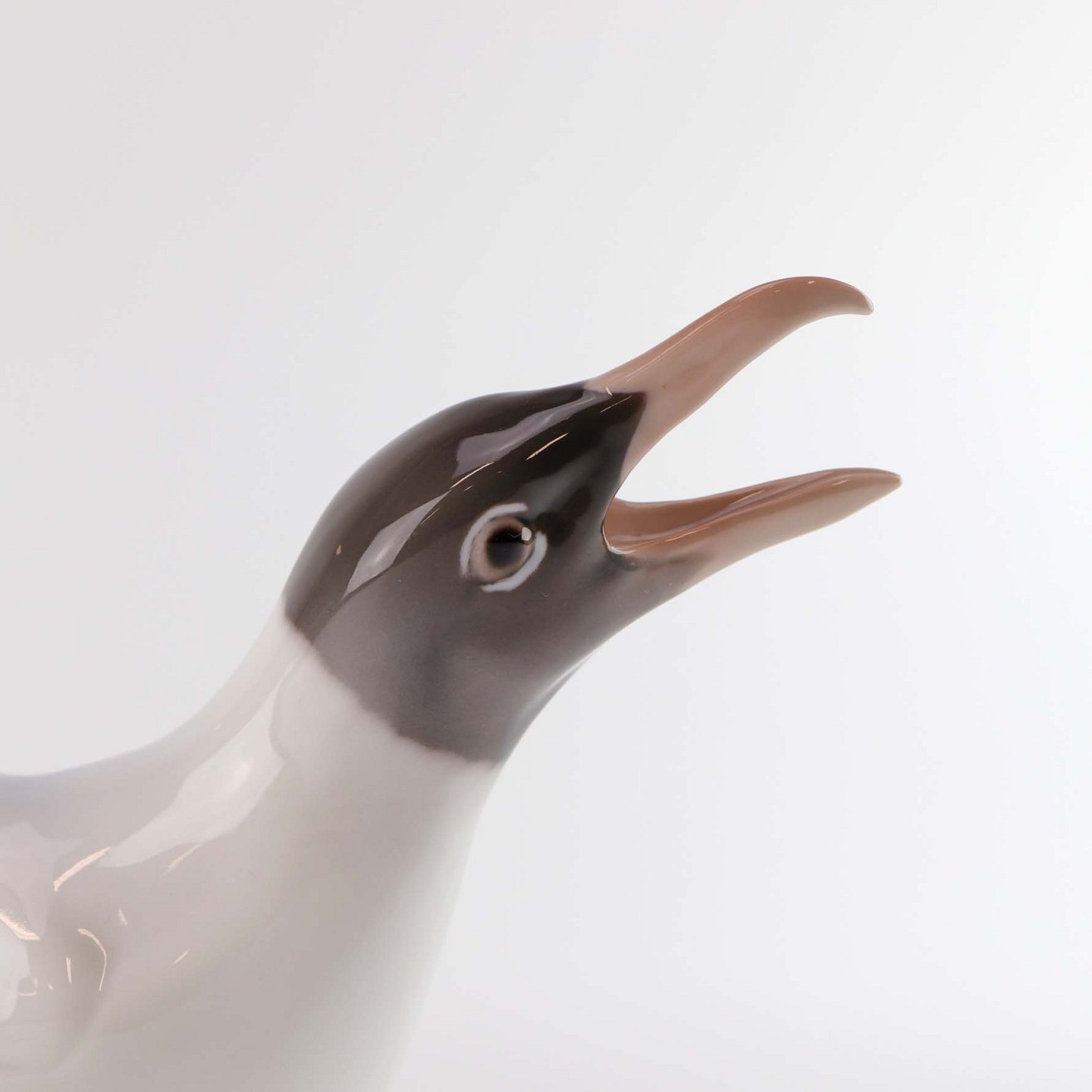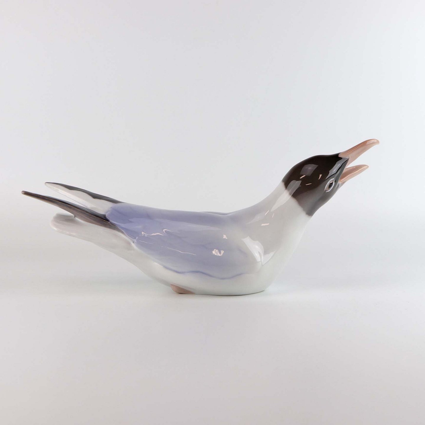 Figur i porcelæn med motiv hættemåge med åbent næb. Nr. 1727