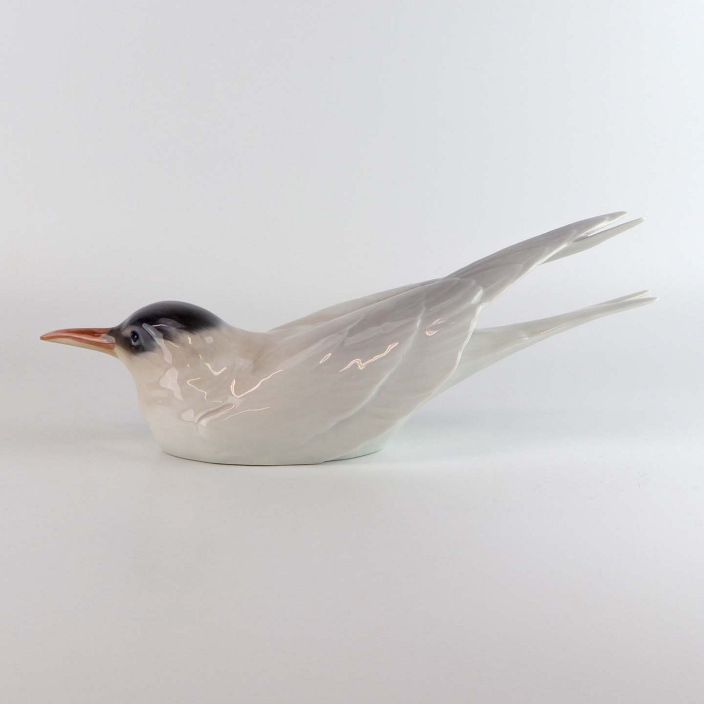 Kongelig figur i porcelæn med motiv af en liggende havterne eller en fjordterne. Nr 827