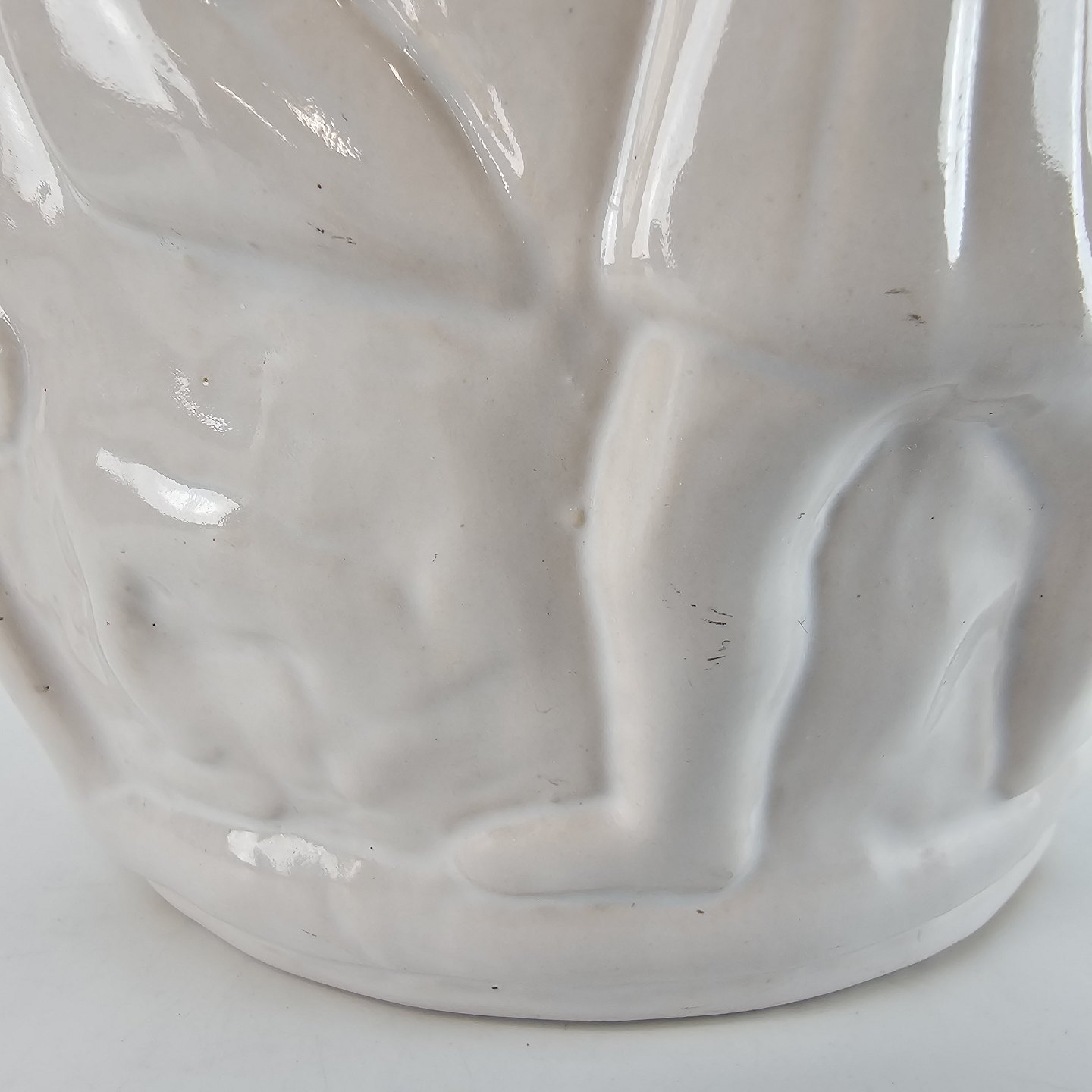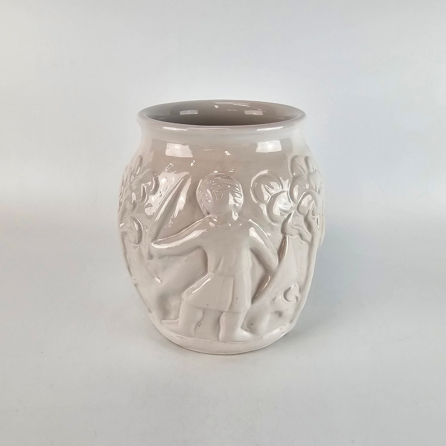 Keramikvase med motiv af tre krigere med skjolde og sværd.