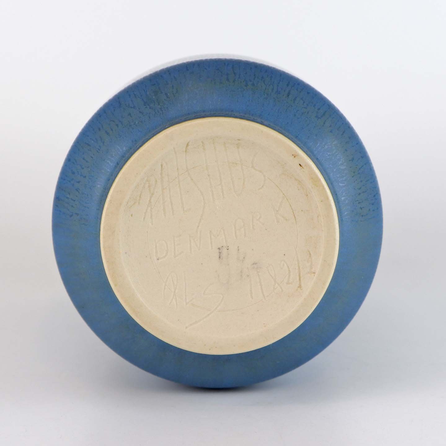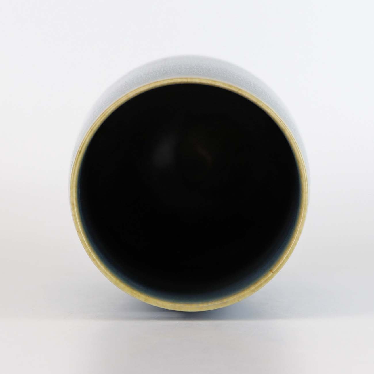 Fremstår med et mindre lyst område i glasuren på vasens inderside