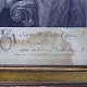 Fremstår med vandmærker på papiret, urensheder i glasset og afslag på rammen.