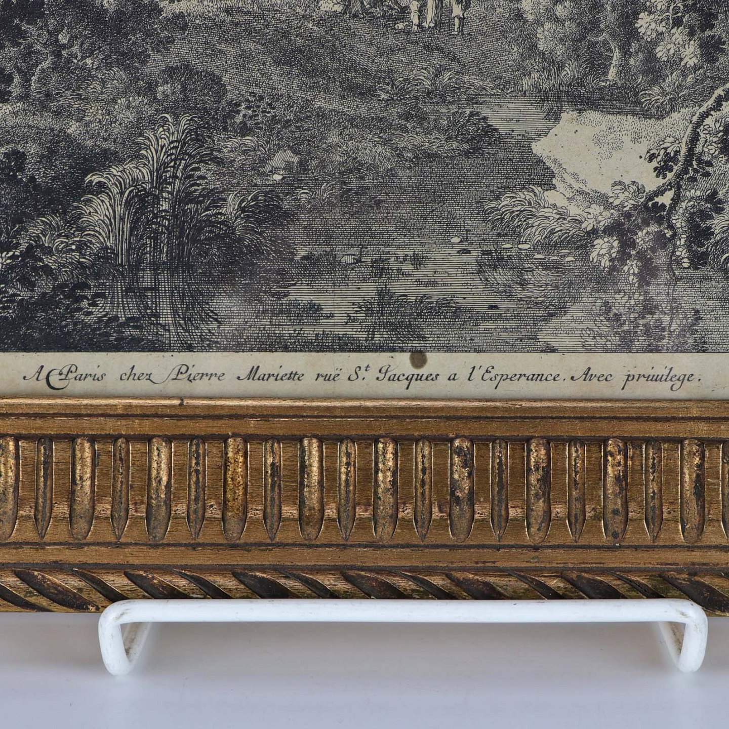 Fremstår med blæk plet nederst på papiret, mindre vandmærker øverst på motivet samt afslag på rammen.