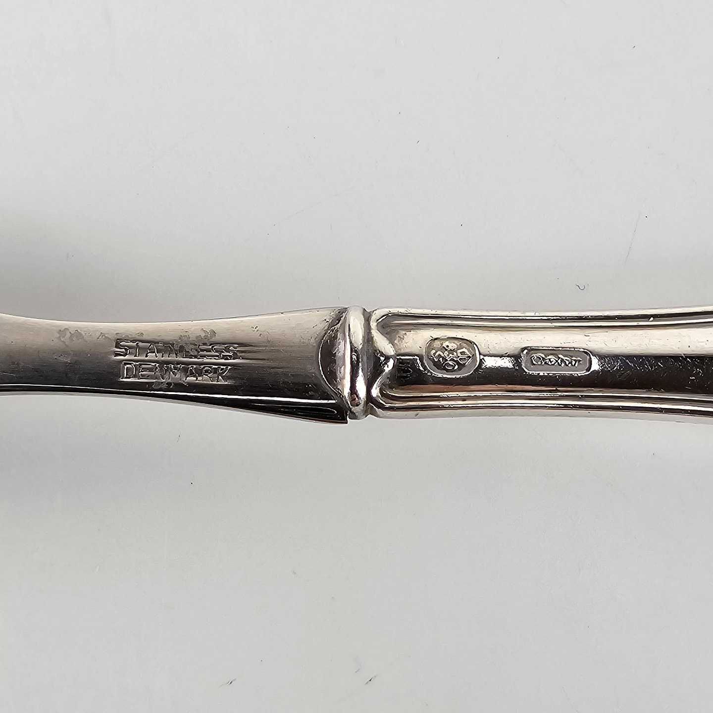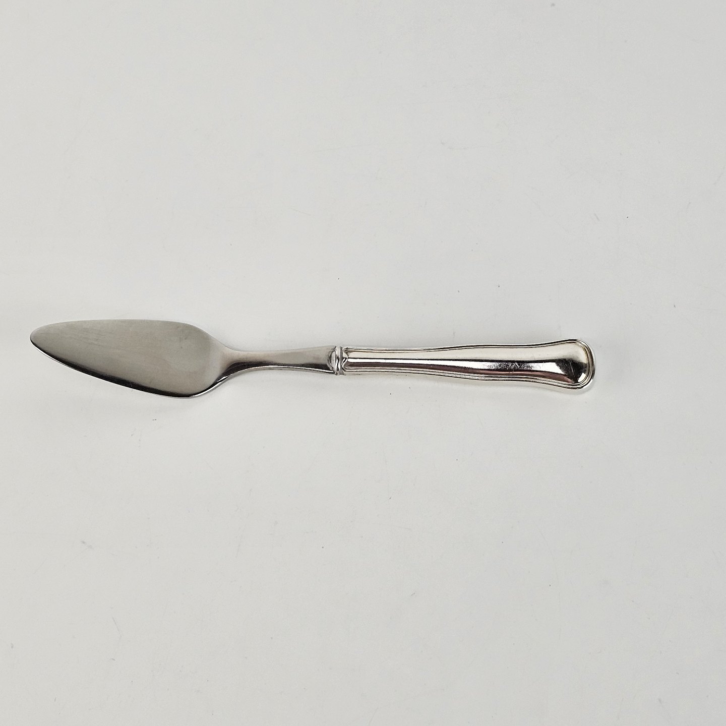Kaviarspade fra bestiksættet Dobbeltriflet. Rustfrit stål og 830 sølv