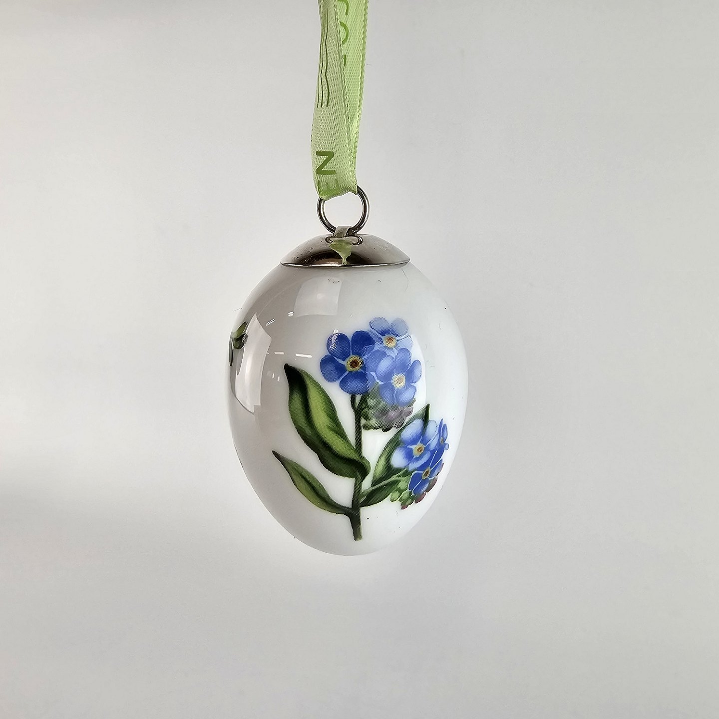 Påskeæg af kongelig porcelæn fra Forårskollektionen år 2009, med motiv af forglemmigej og musvit.