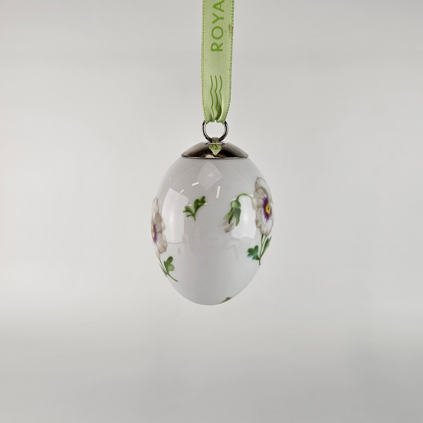 Påskeæg af kongelig porcelæn fra Forårskollektionen år 2007, med motiv af stedmoderblomst og anemone.