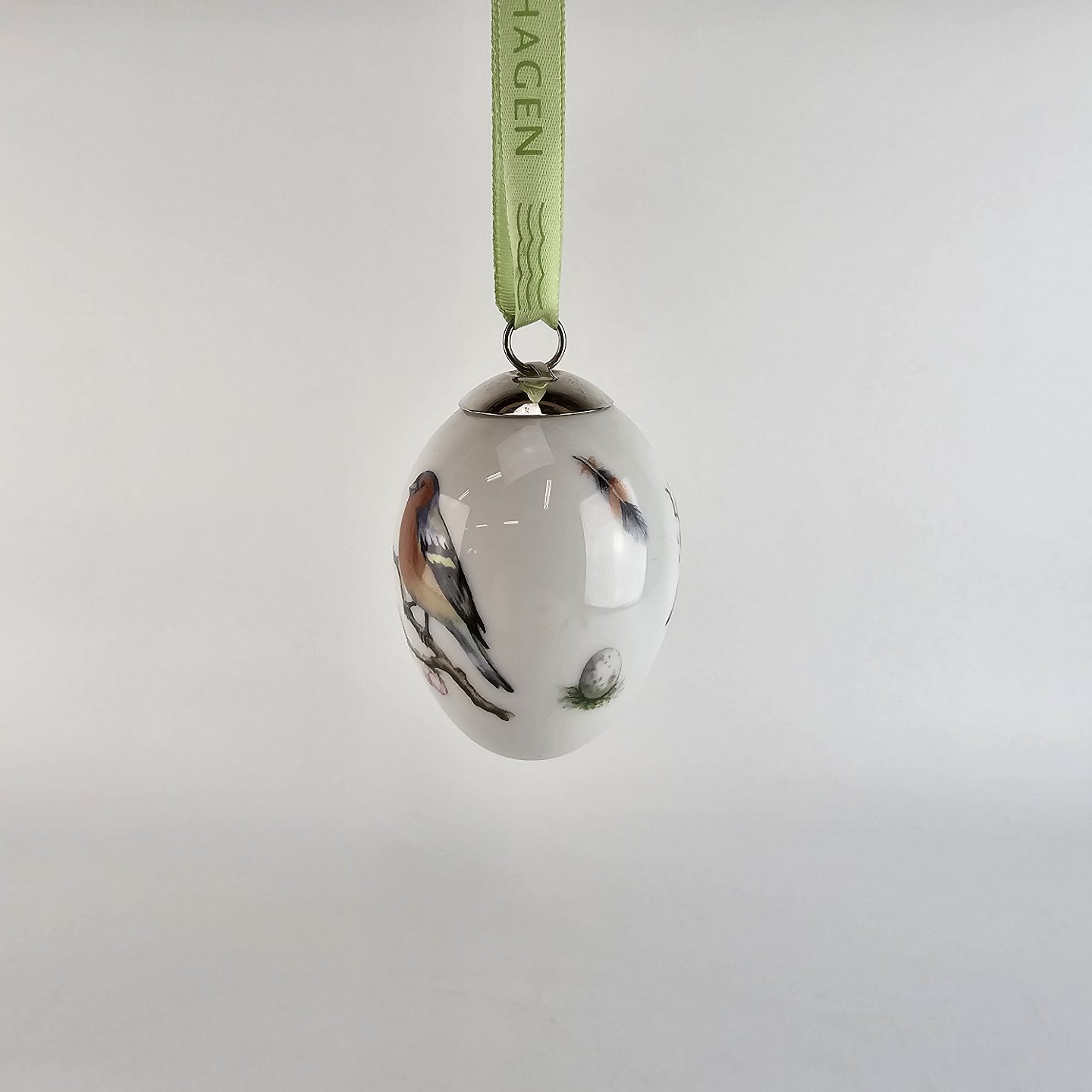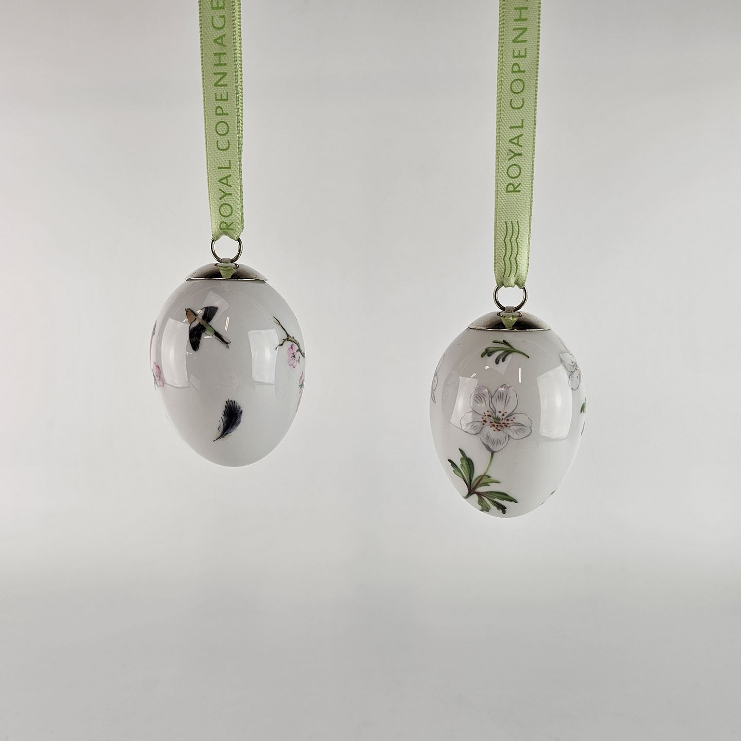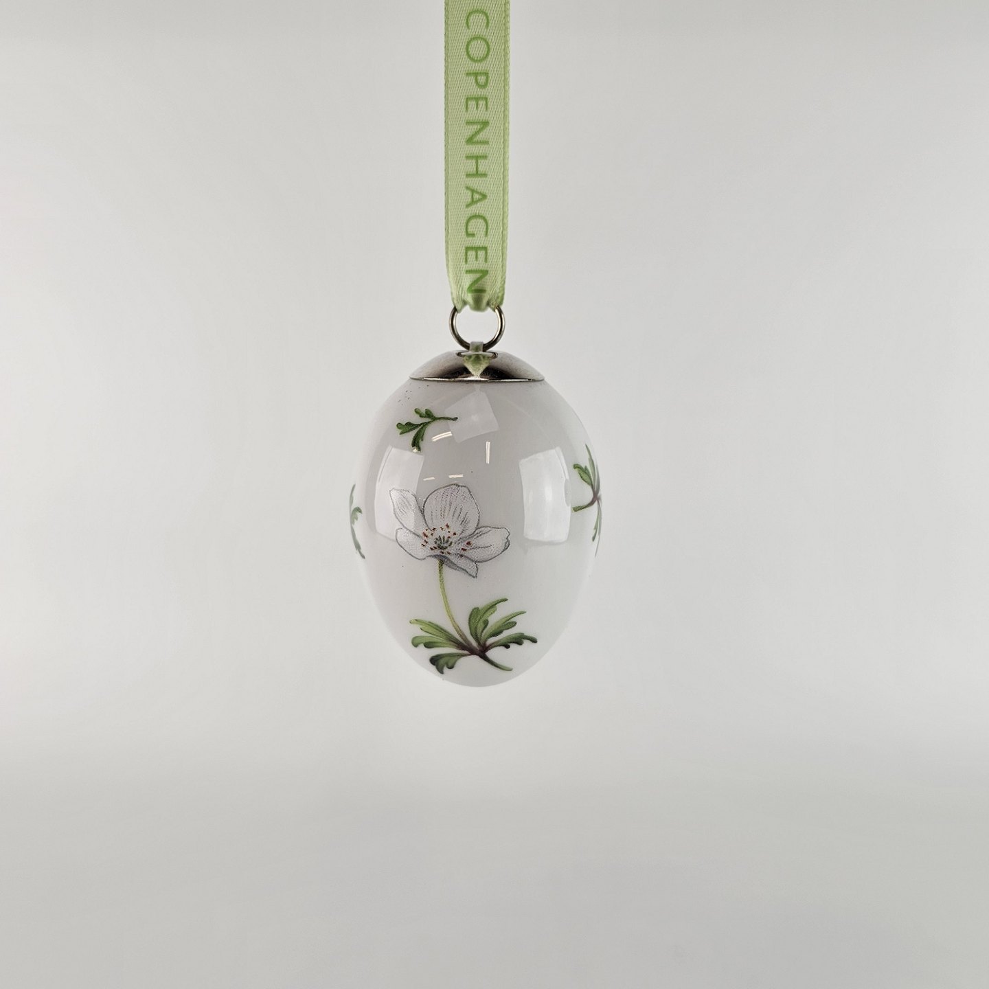 Påskeæg af kongelig porcelæn fra Forårskollektionen år 2009, med motiv af hvid anemone og bogfinke.