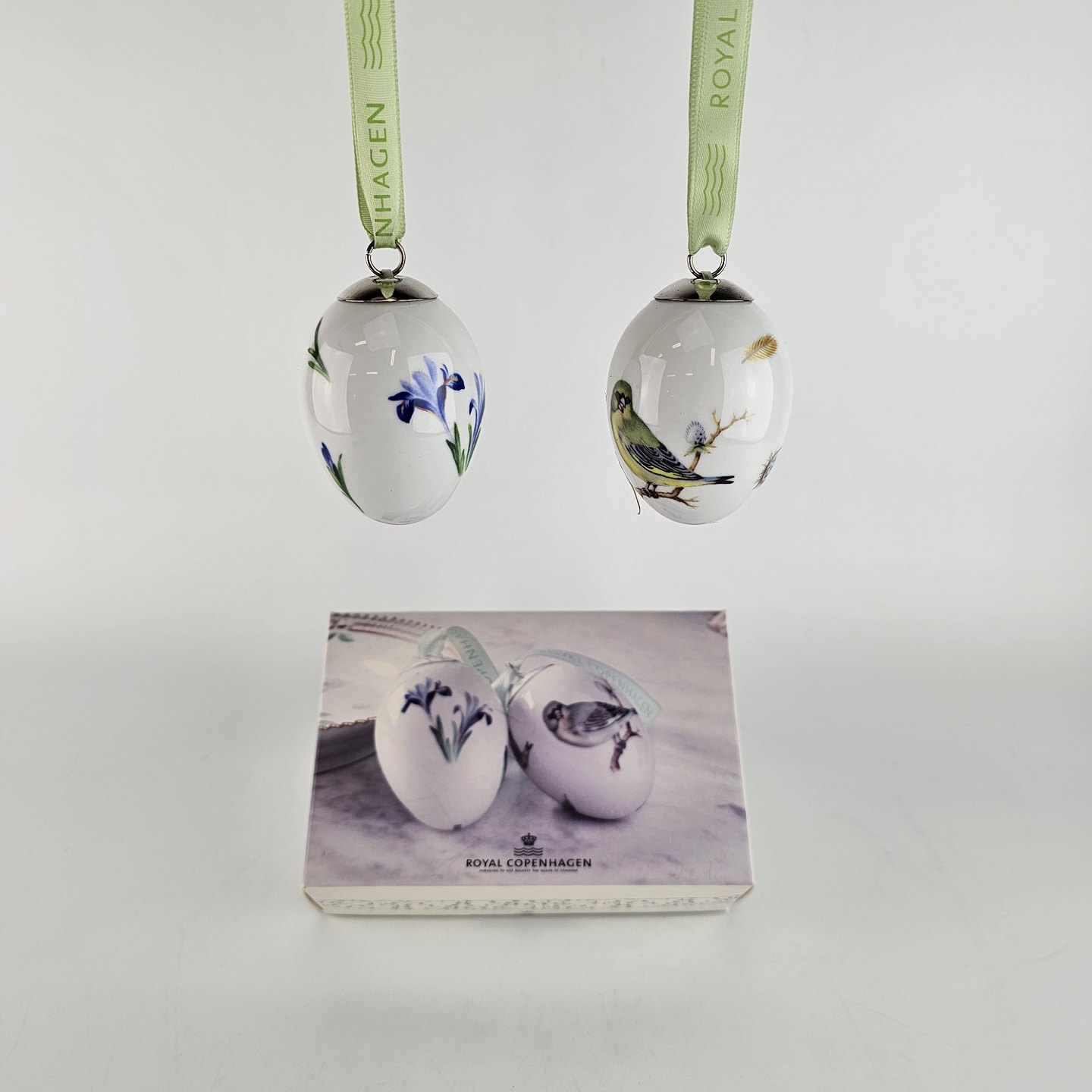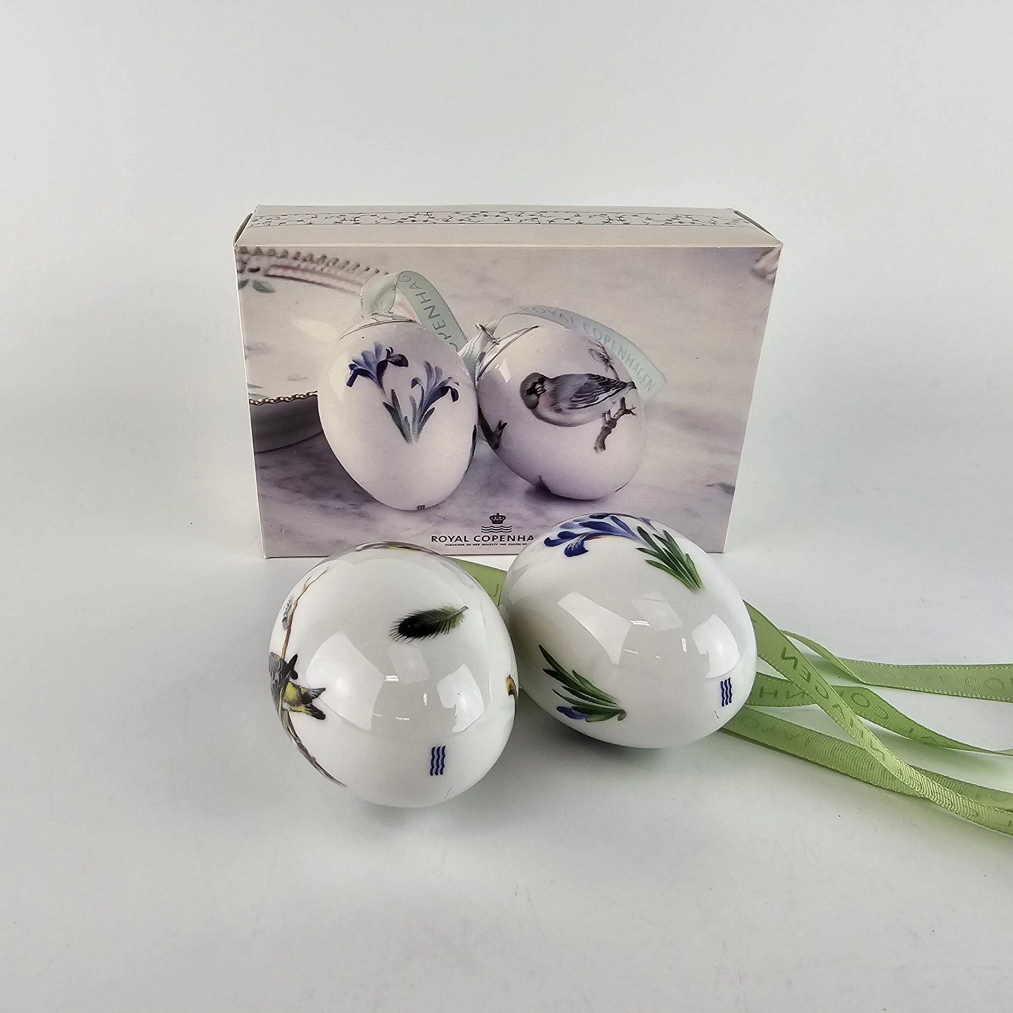 Æggene leveres med mintgrønt bånd og i original æske