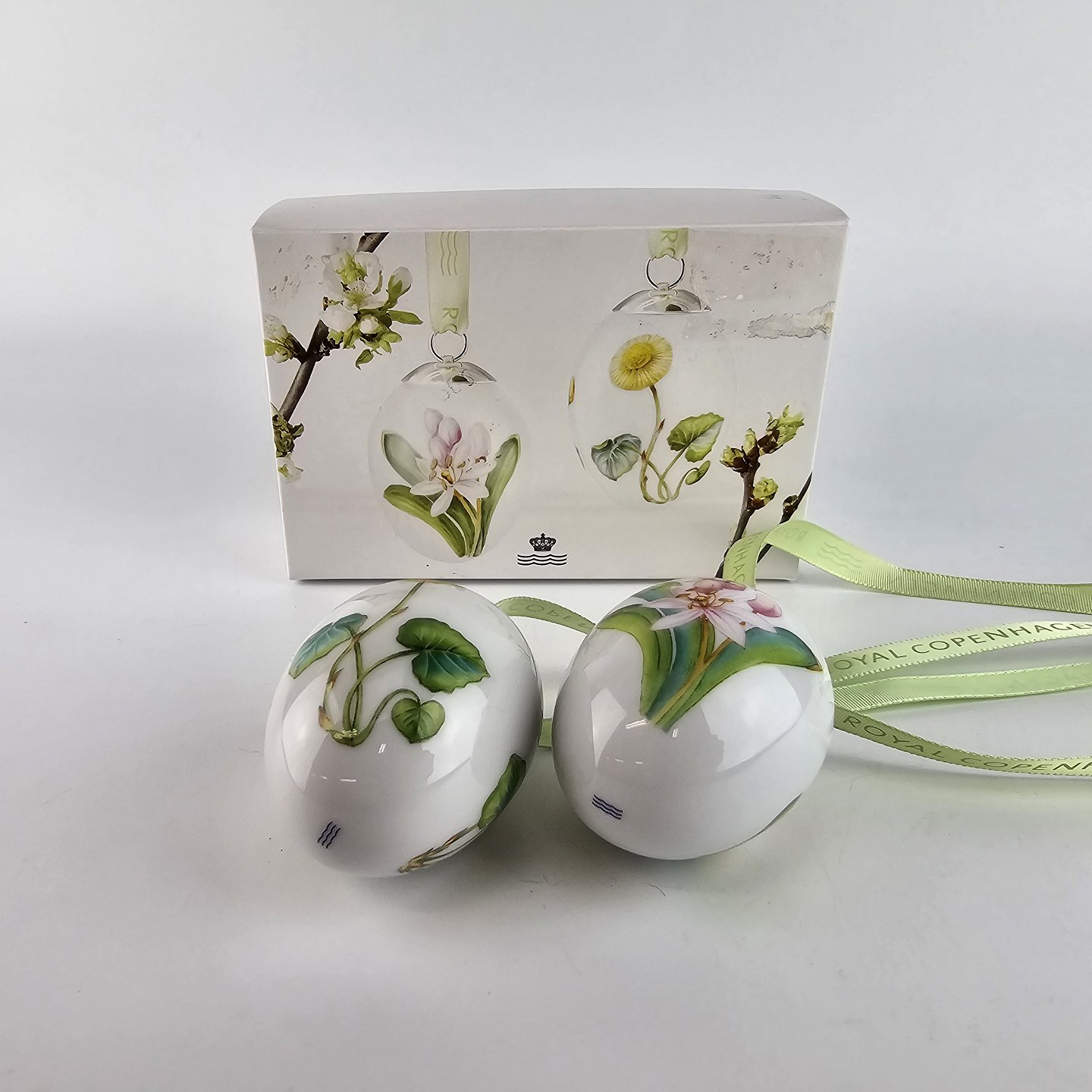 Æggene leveres med mintgrønt bånd og i original æske