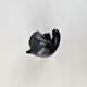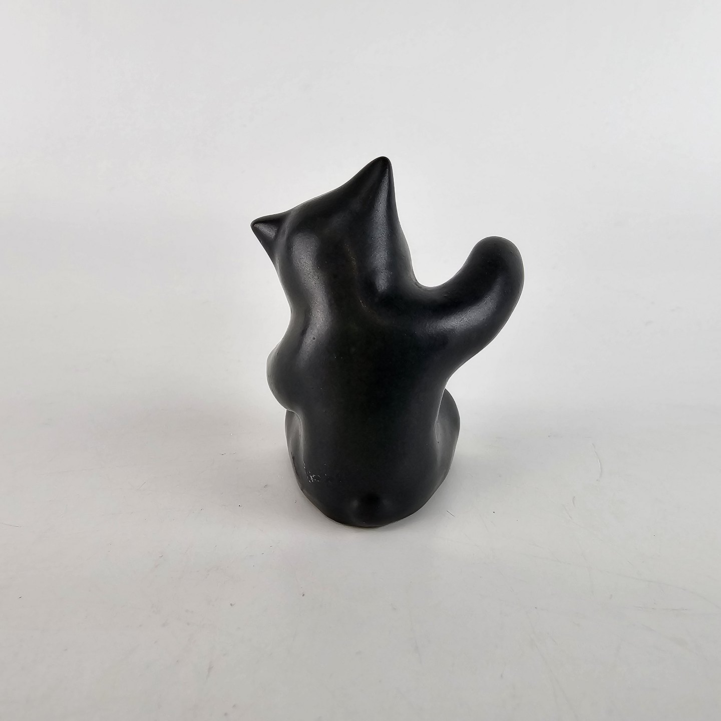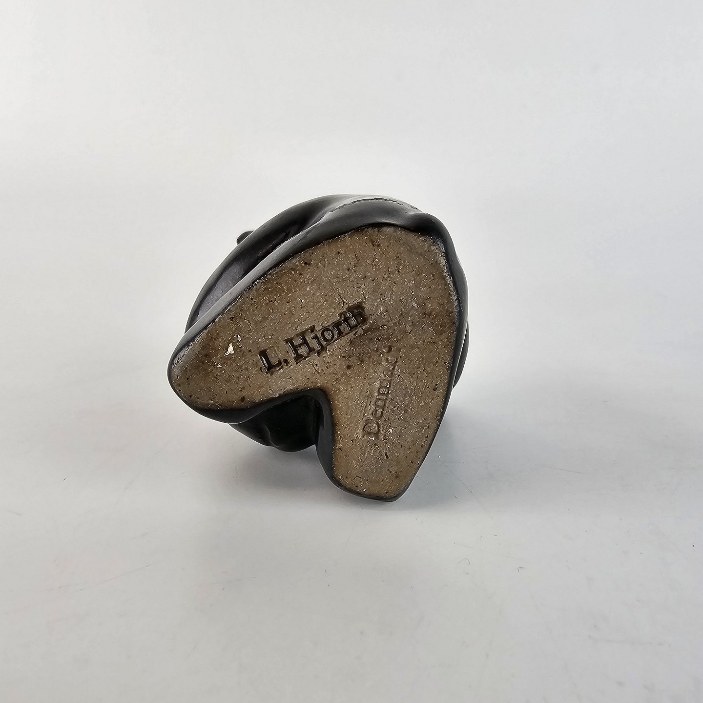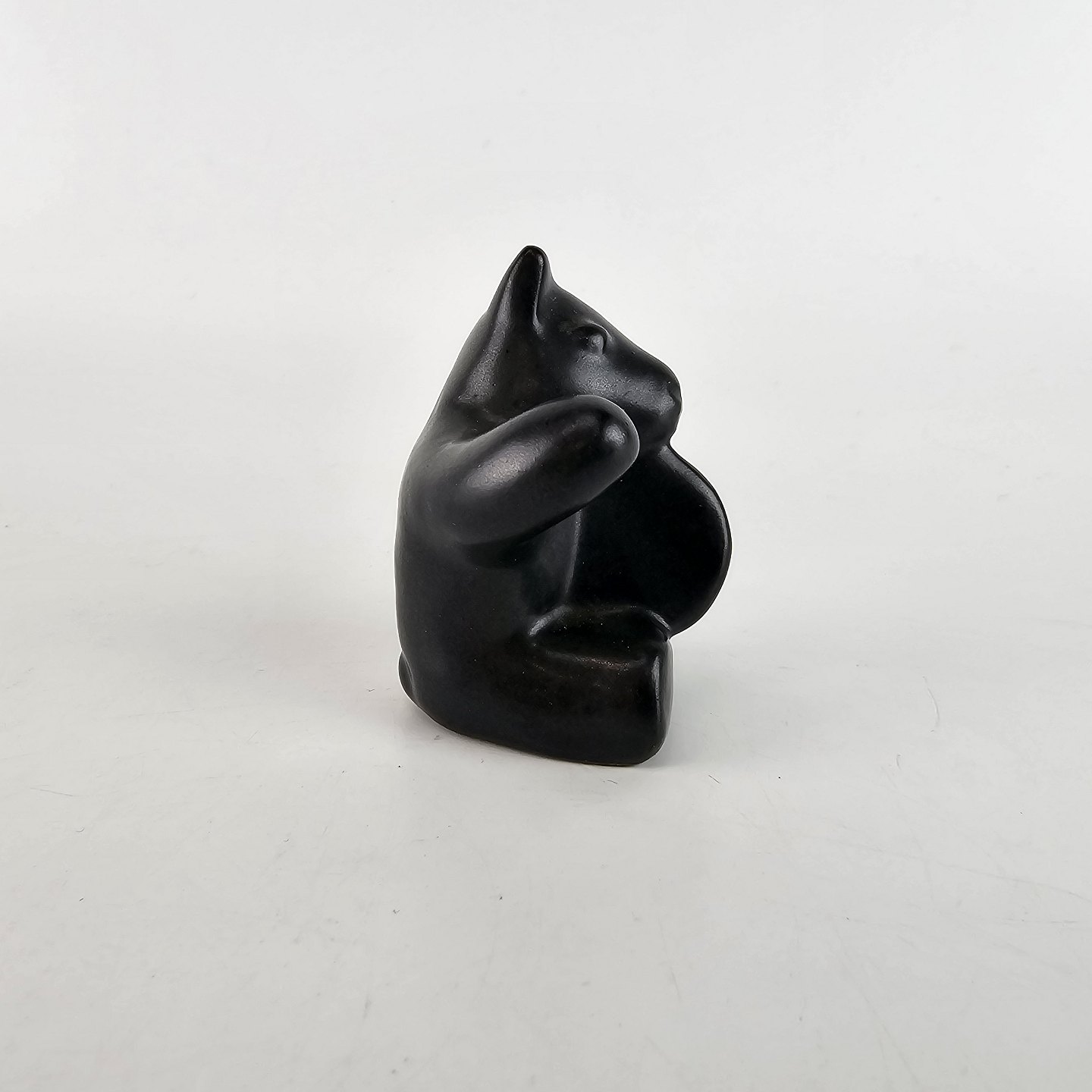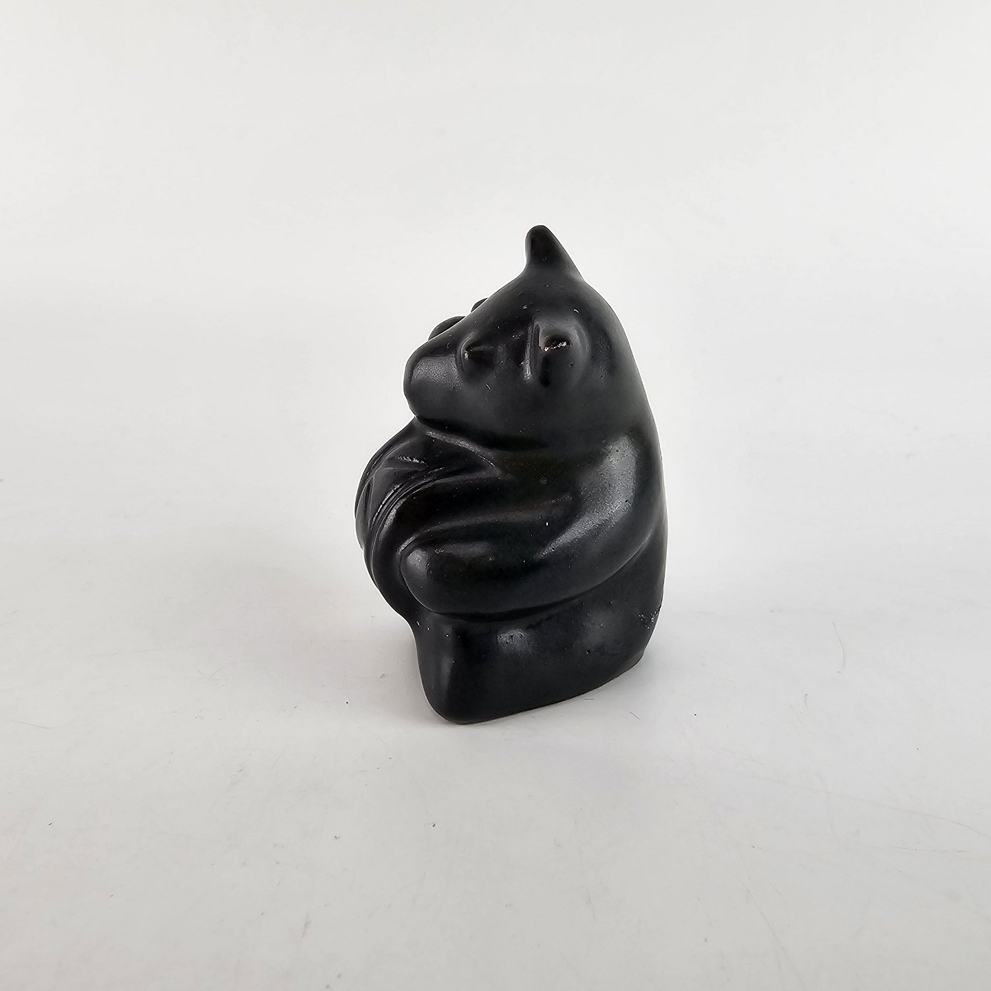 Sortglaseret keramikfigur med motiv af en bjørn som slår på tromme.
