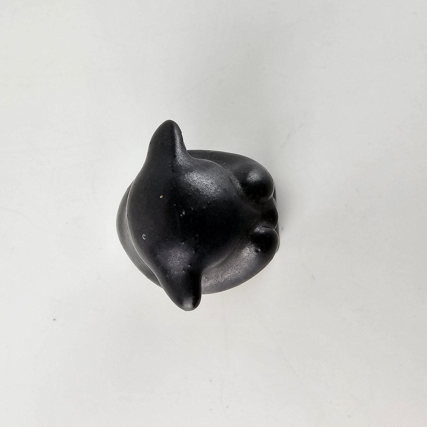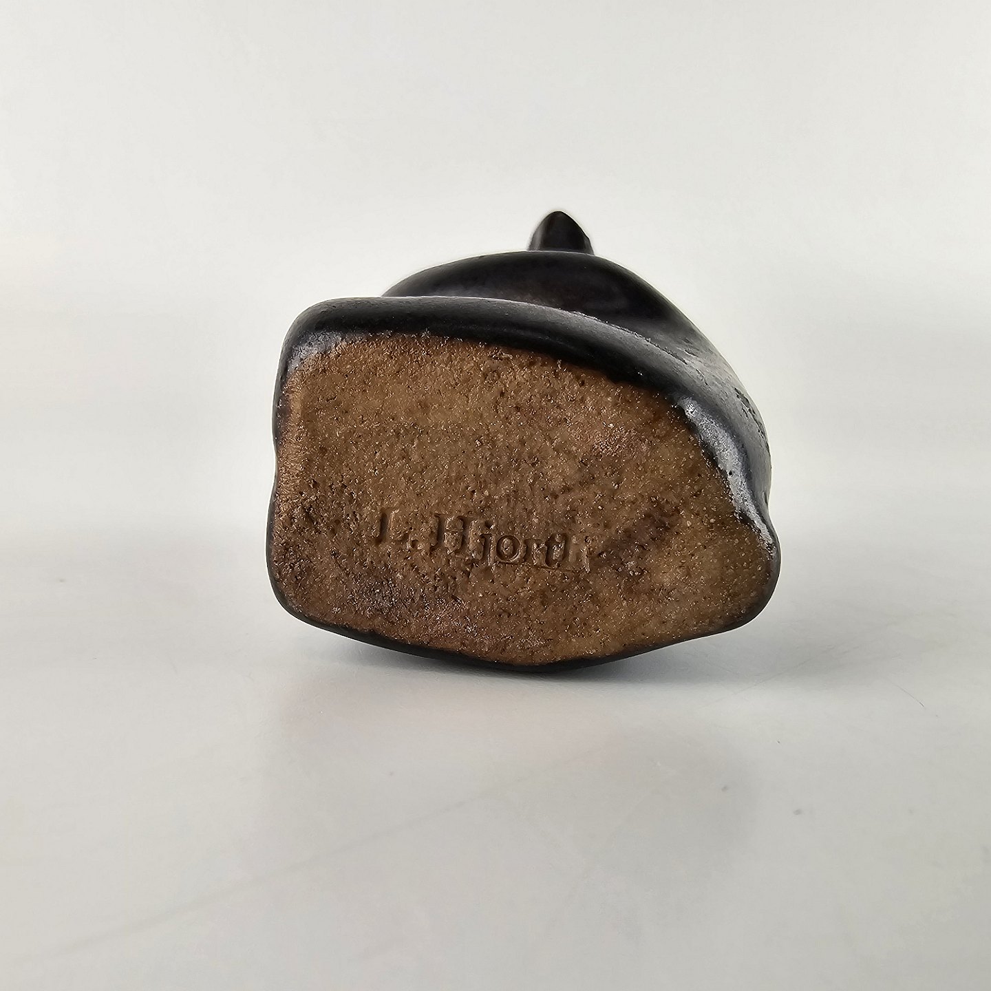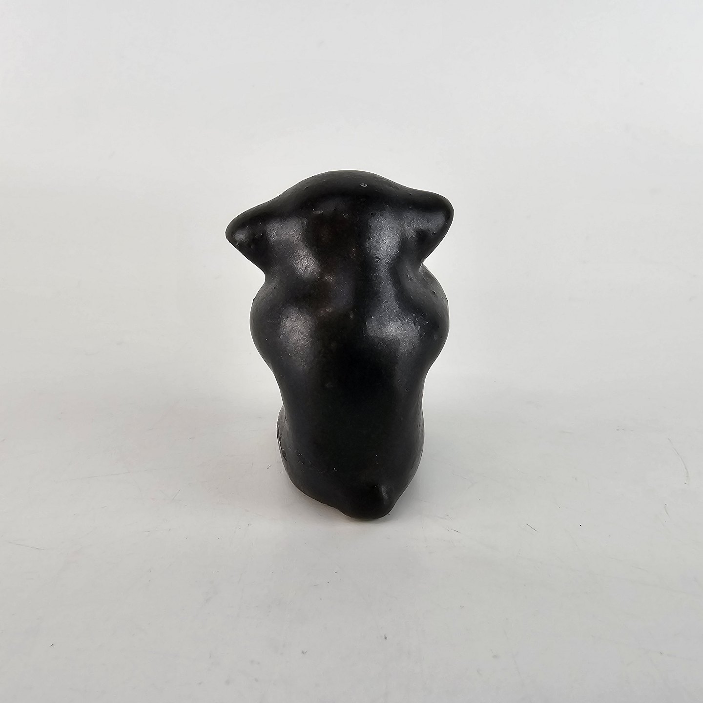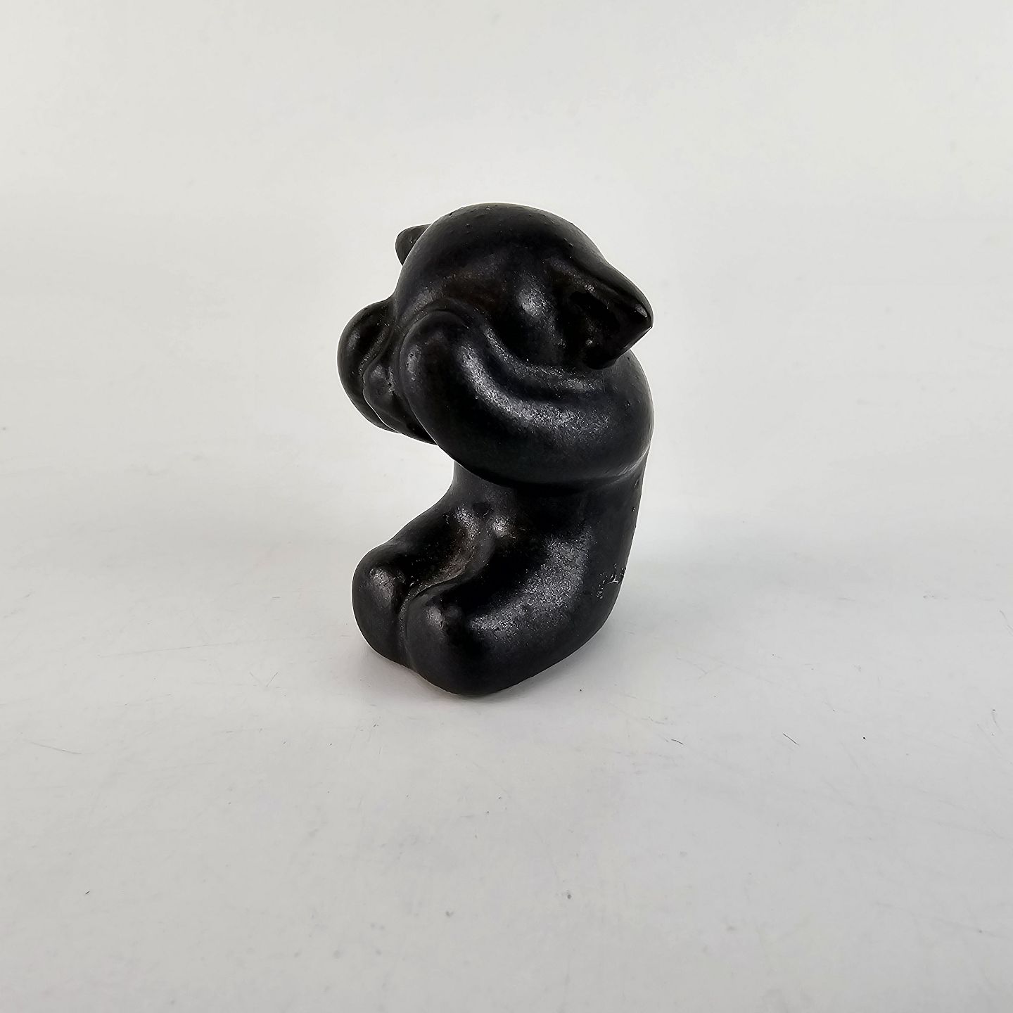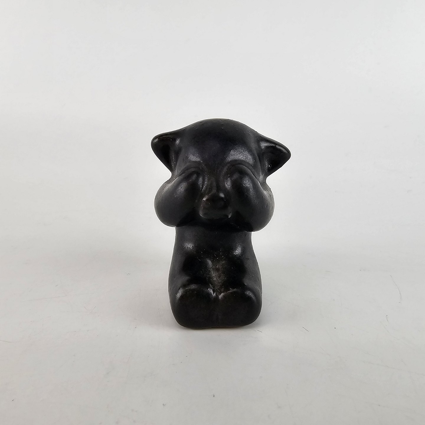 Sortglaseret keramikfigur med motiv af en bjørn som holder sig for øjnene.