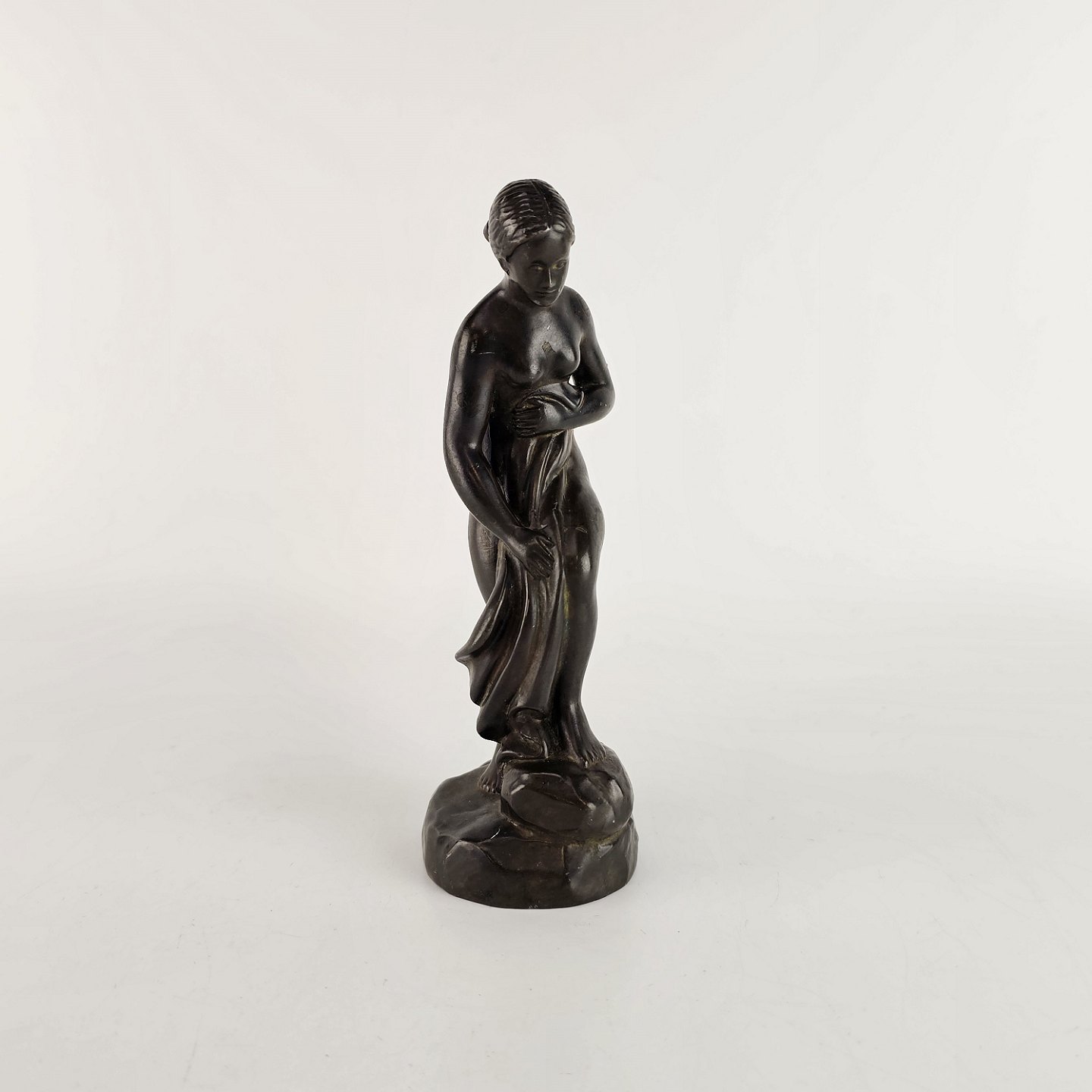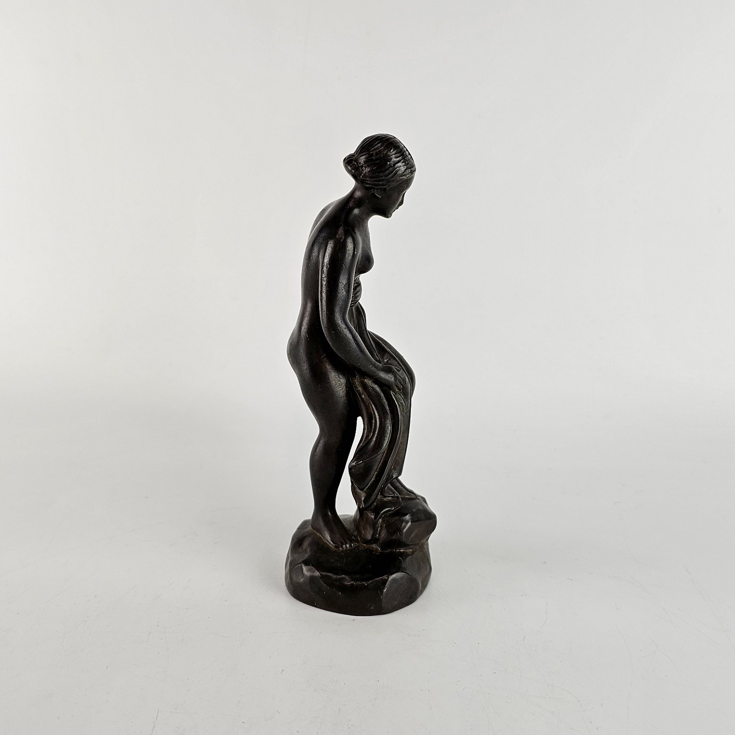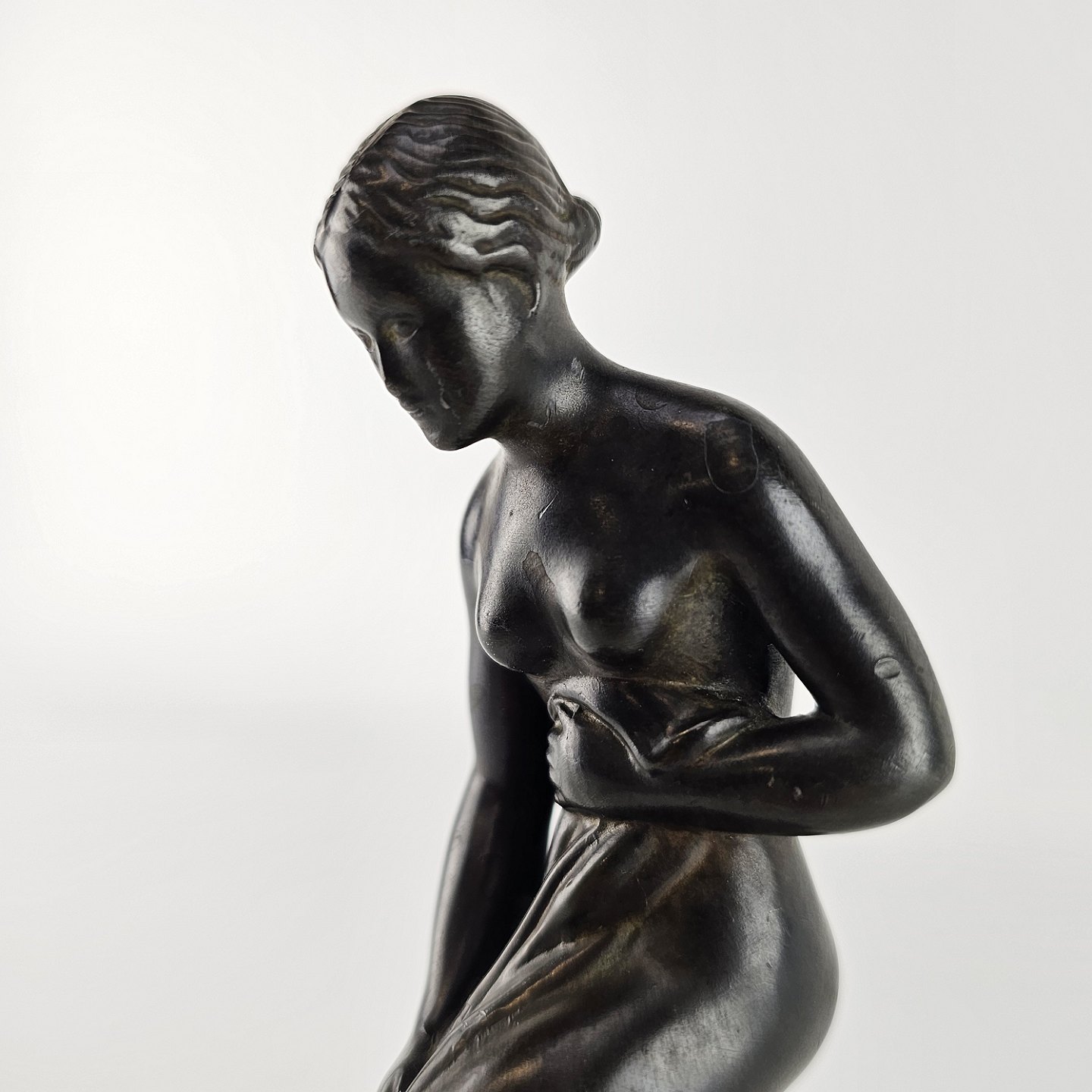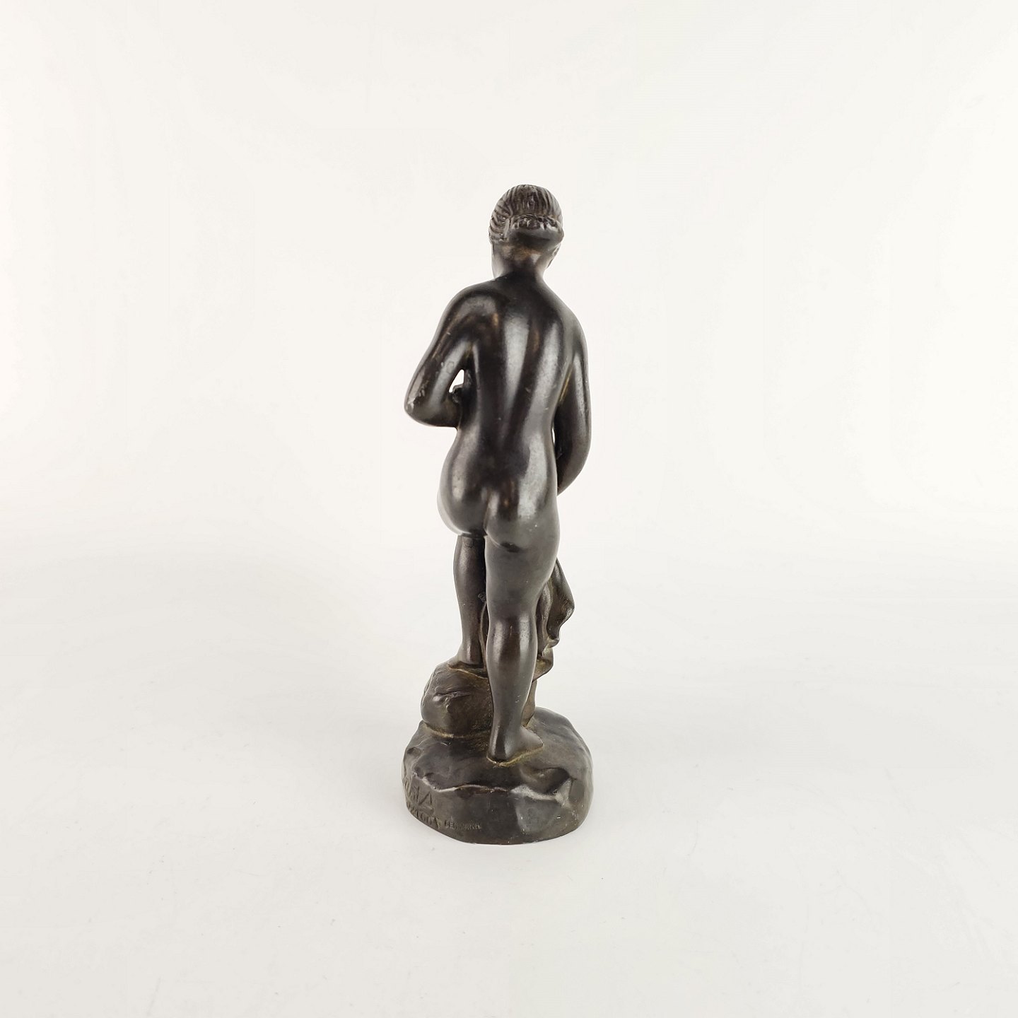 Lille statuette i bronze, med motiv af nøgen Venus som holder et klæde.