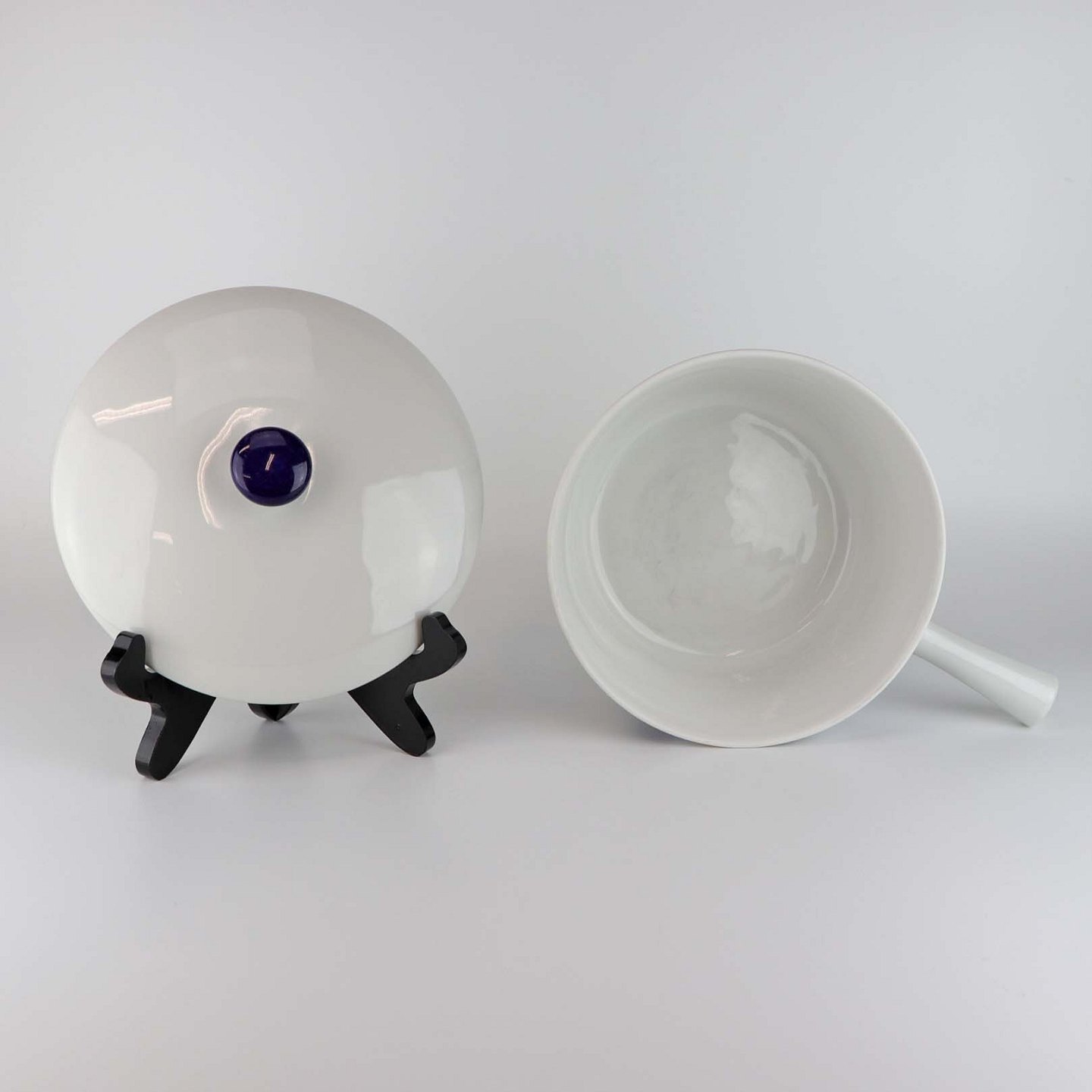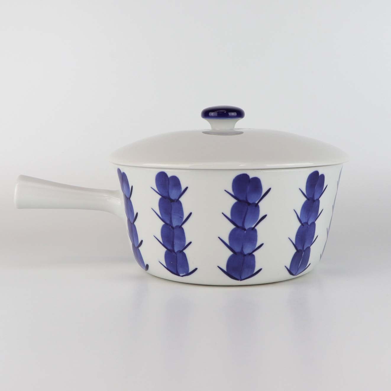Ildfast gryde med låg i porcelæn fra Stellet Danild 30, også kaldet Blomsterknop