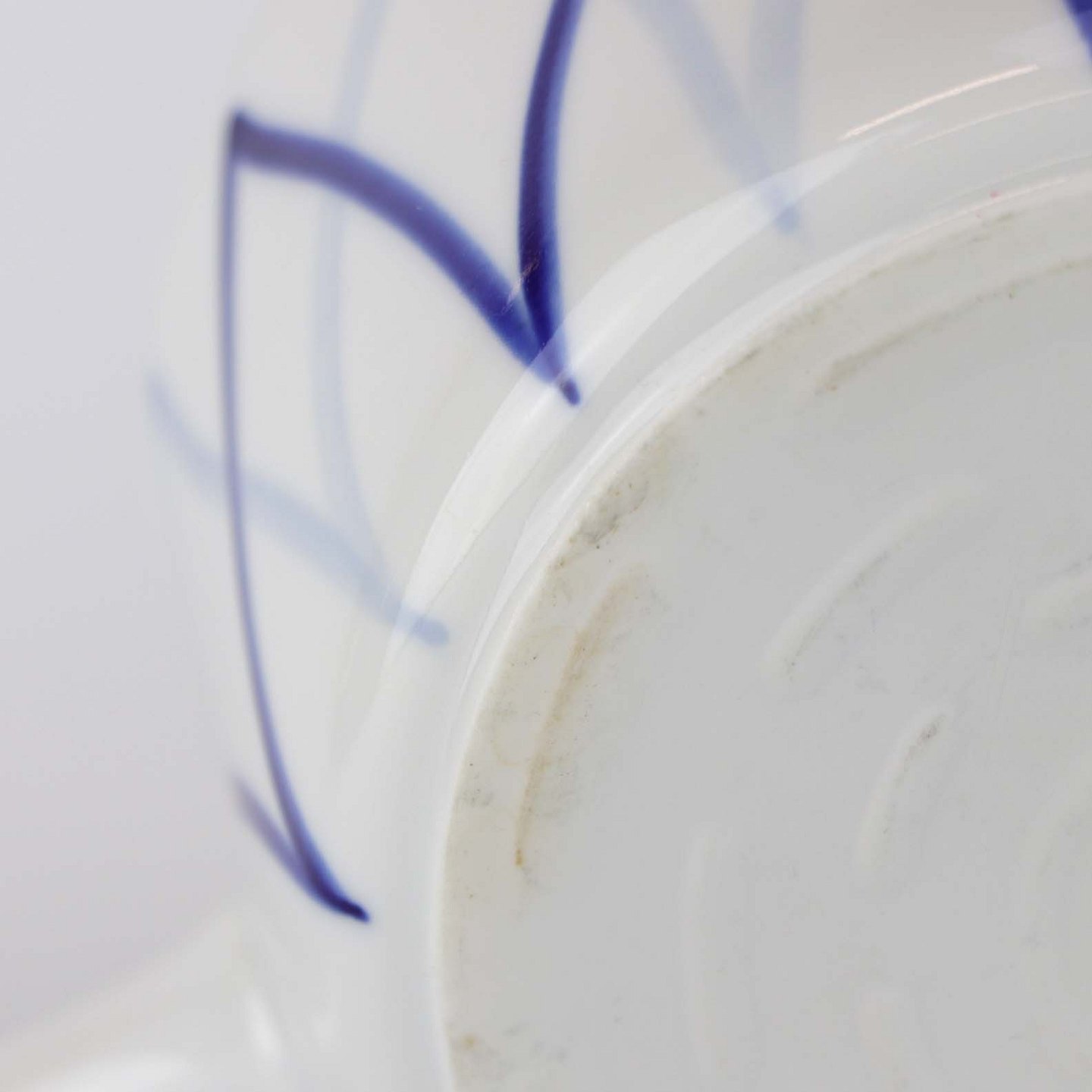 Blå Flamme er hvidt ildfast porcelæn, dekoreret med blå striber, der ligner flammer. Brugsspor kan forekomme