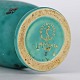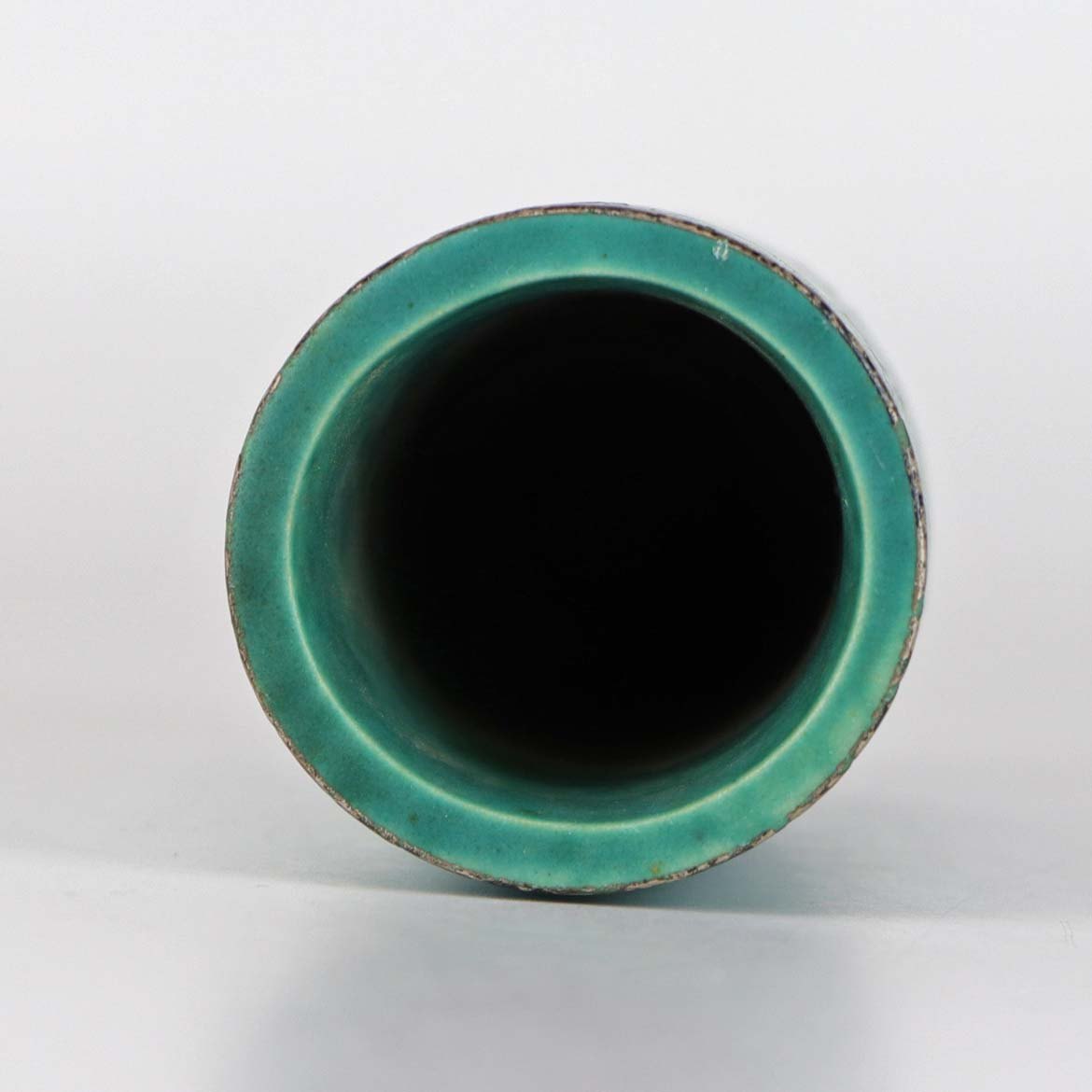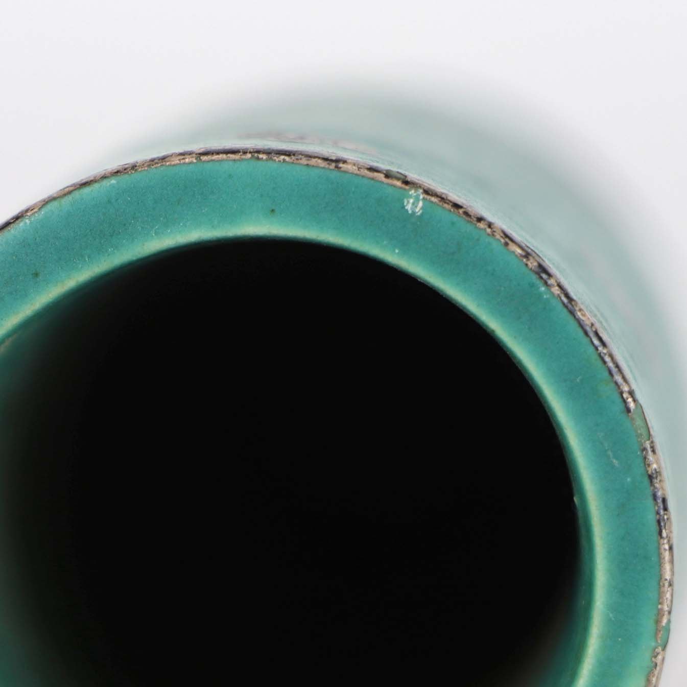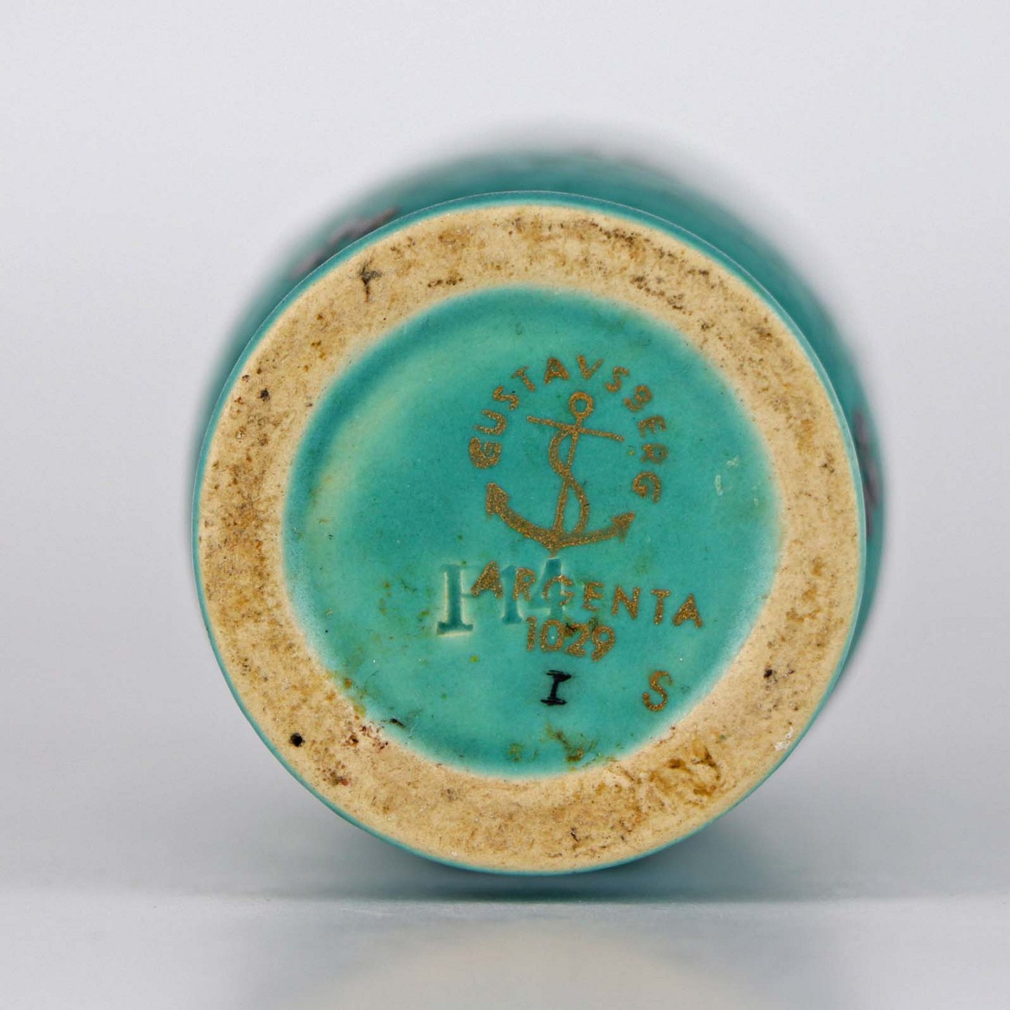 Lille art deco vase fra Argenta serien i søgrøn stentøj med motiv af sorte trekløvere. Nr. 1029