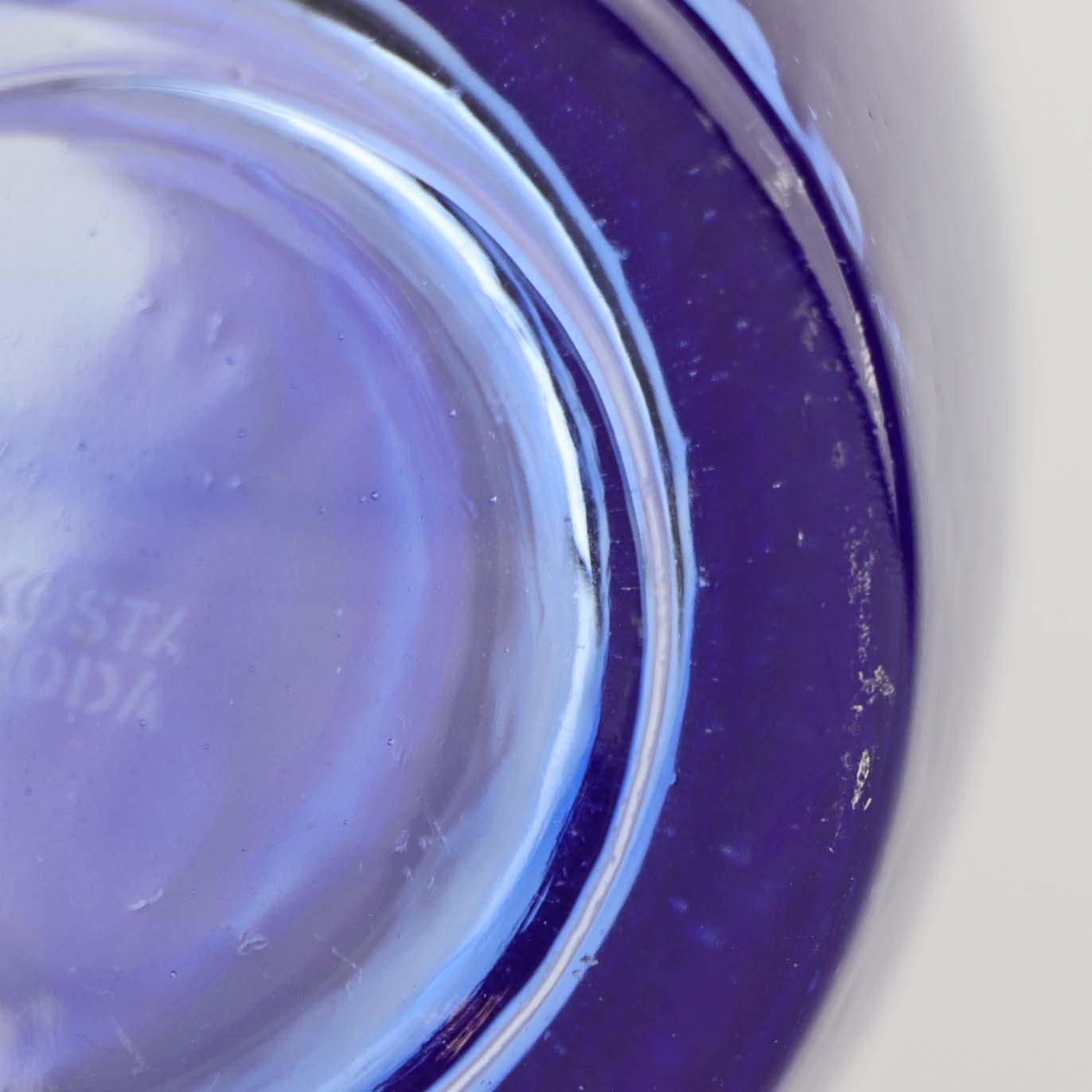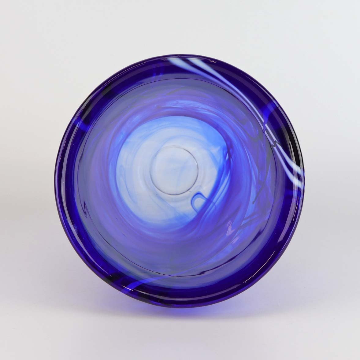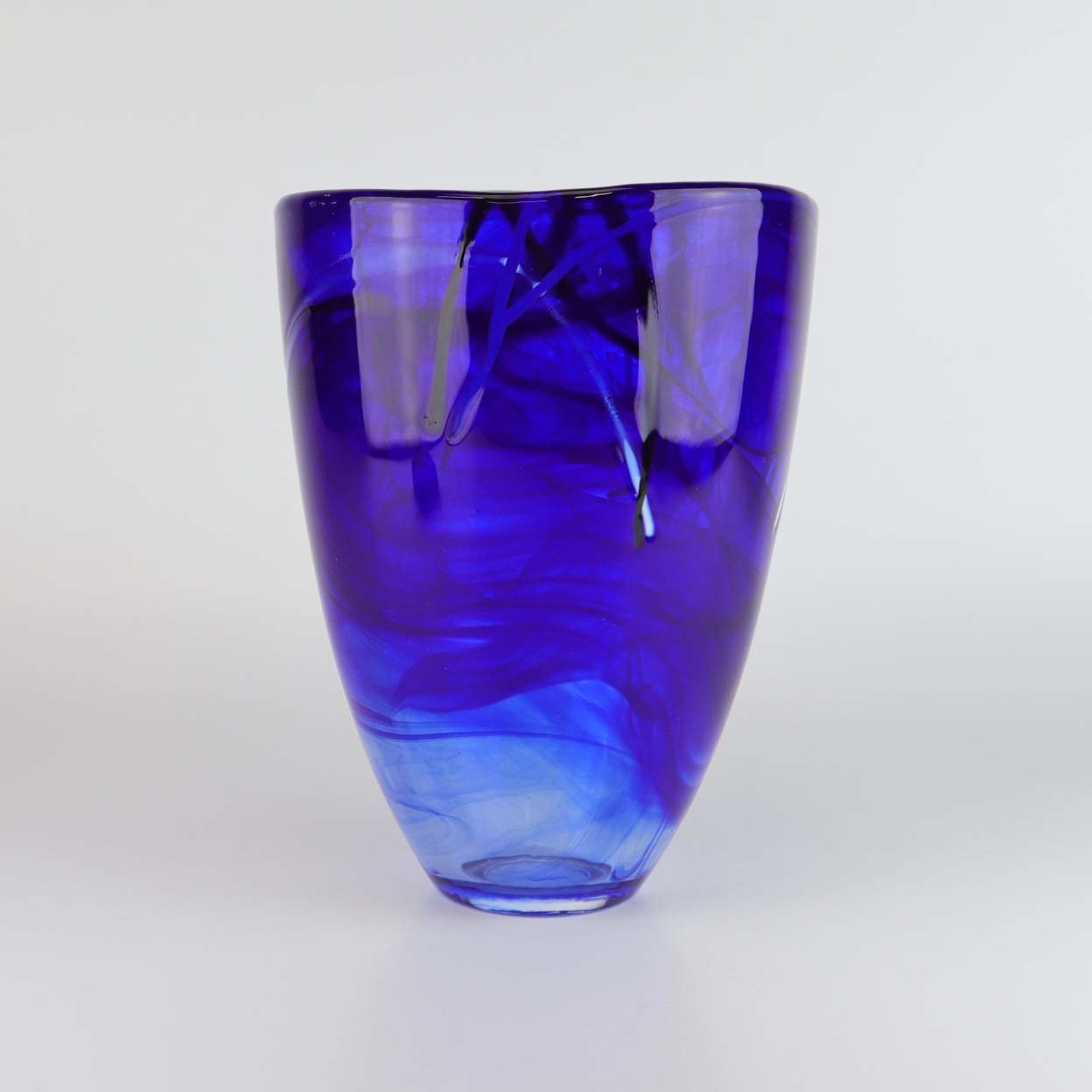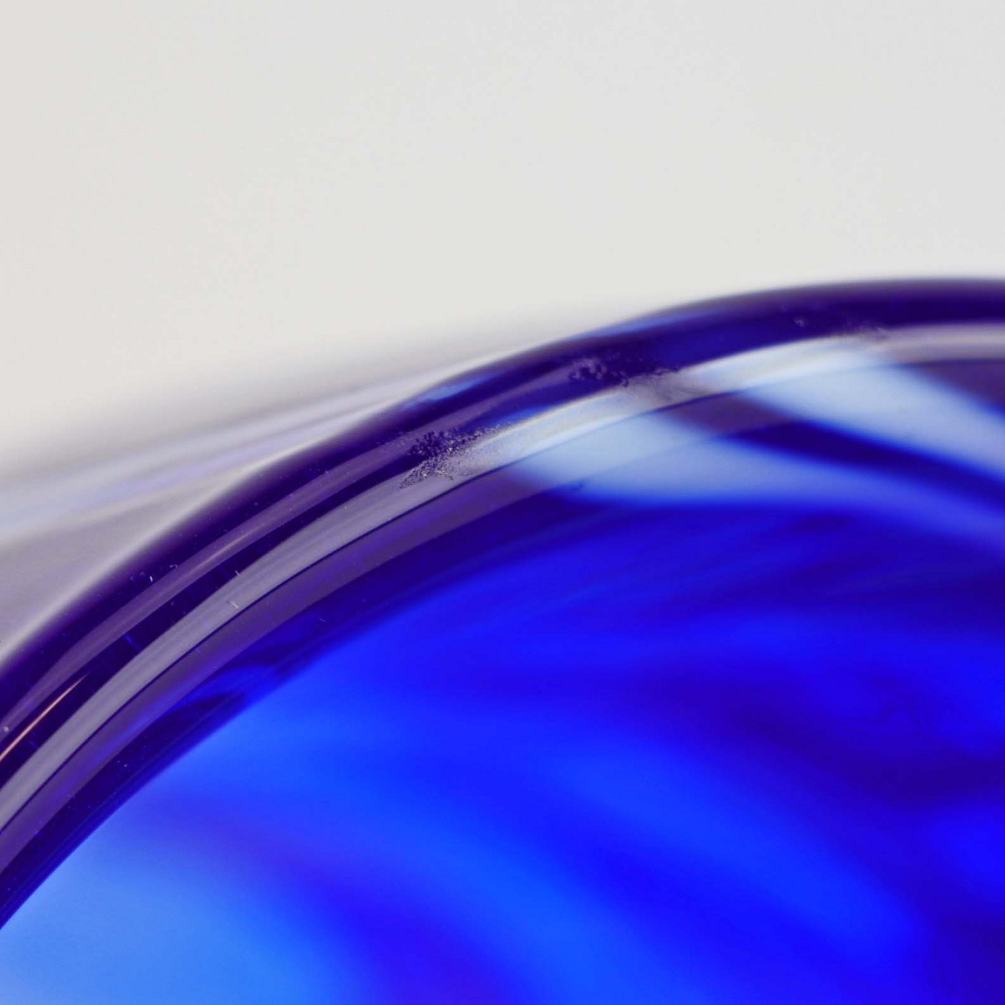 Asymmetrisk vase i glas fra serien Contrast. Vasen er i klart glas med blå og hvide farver