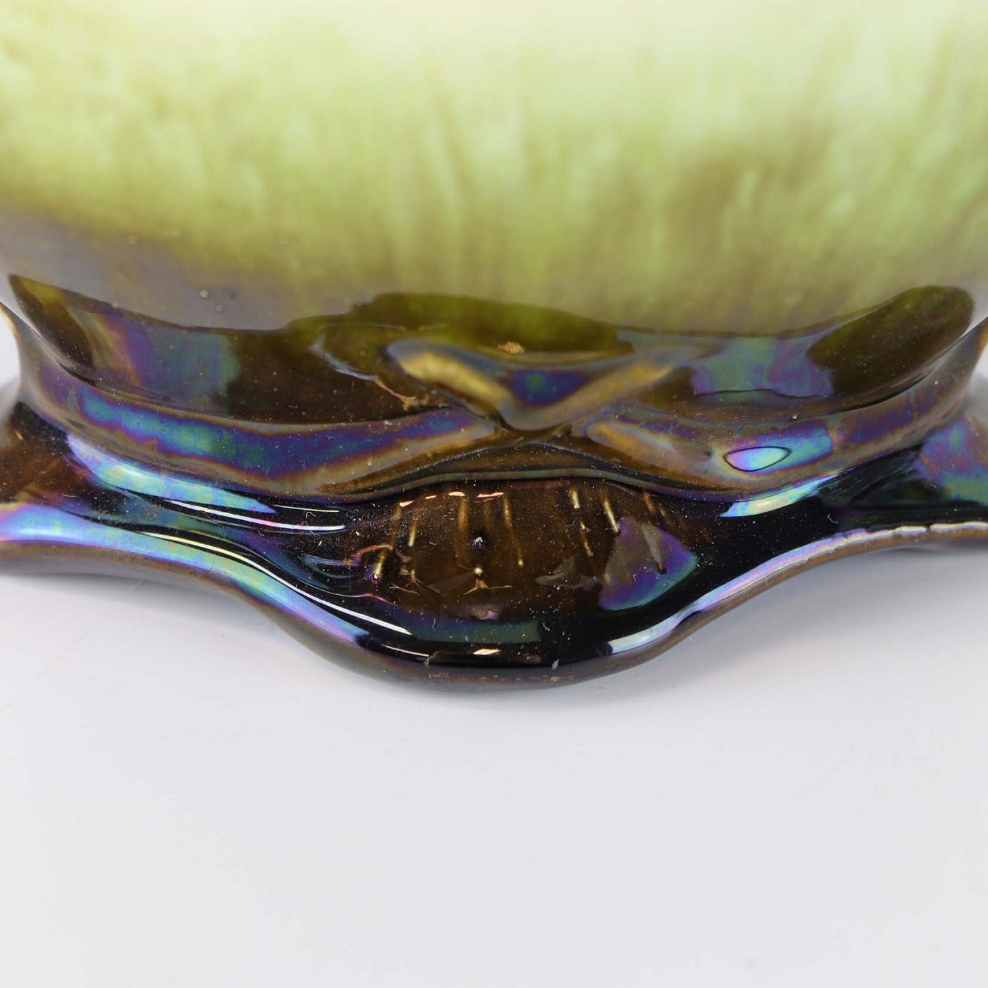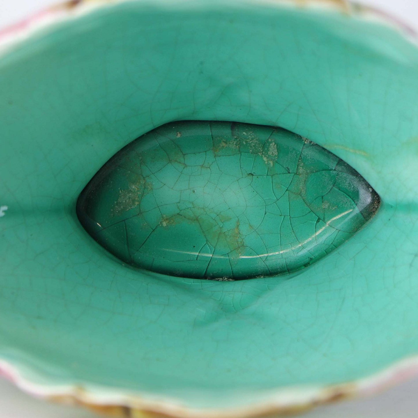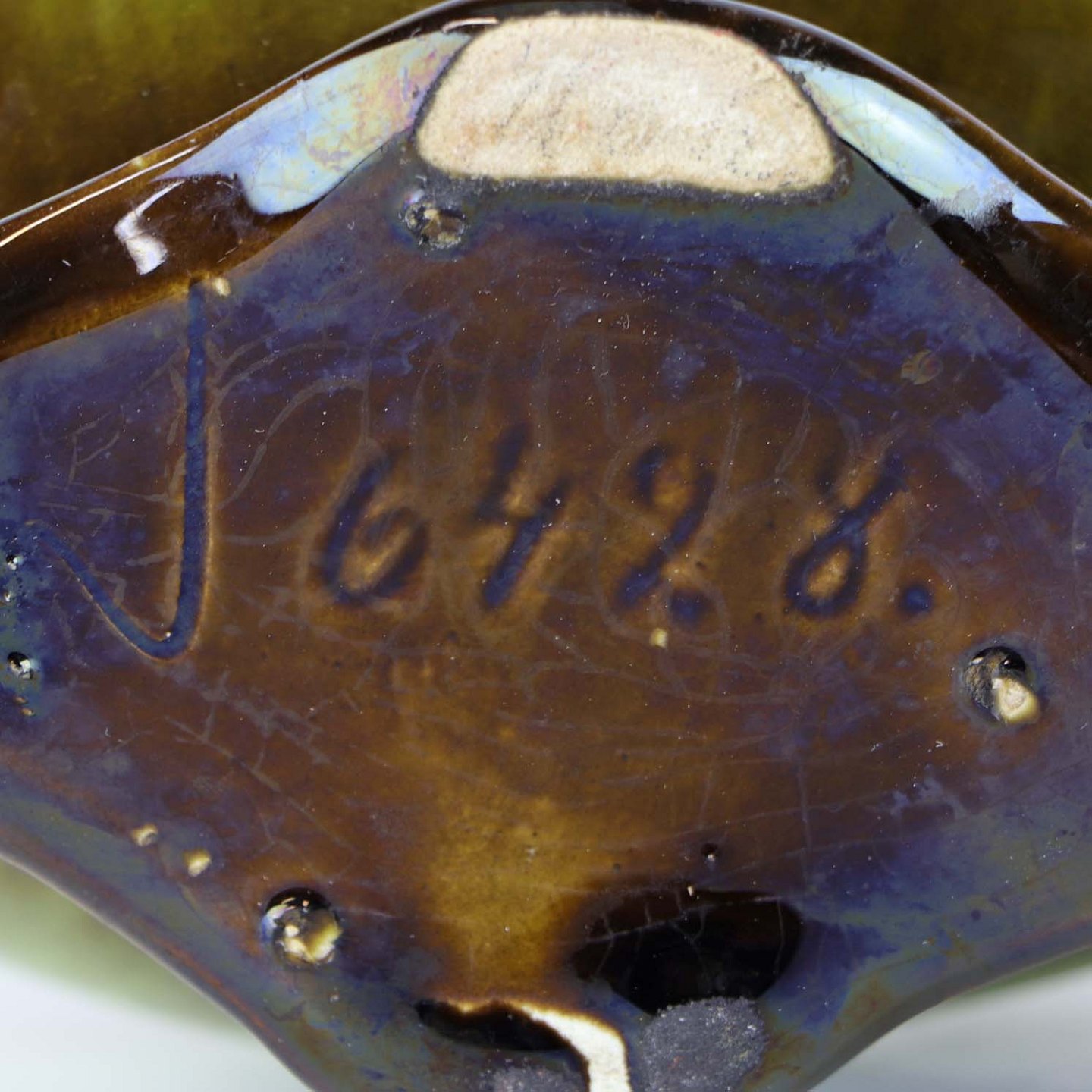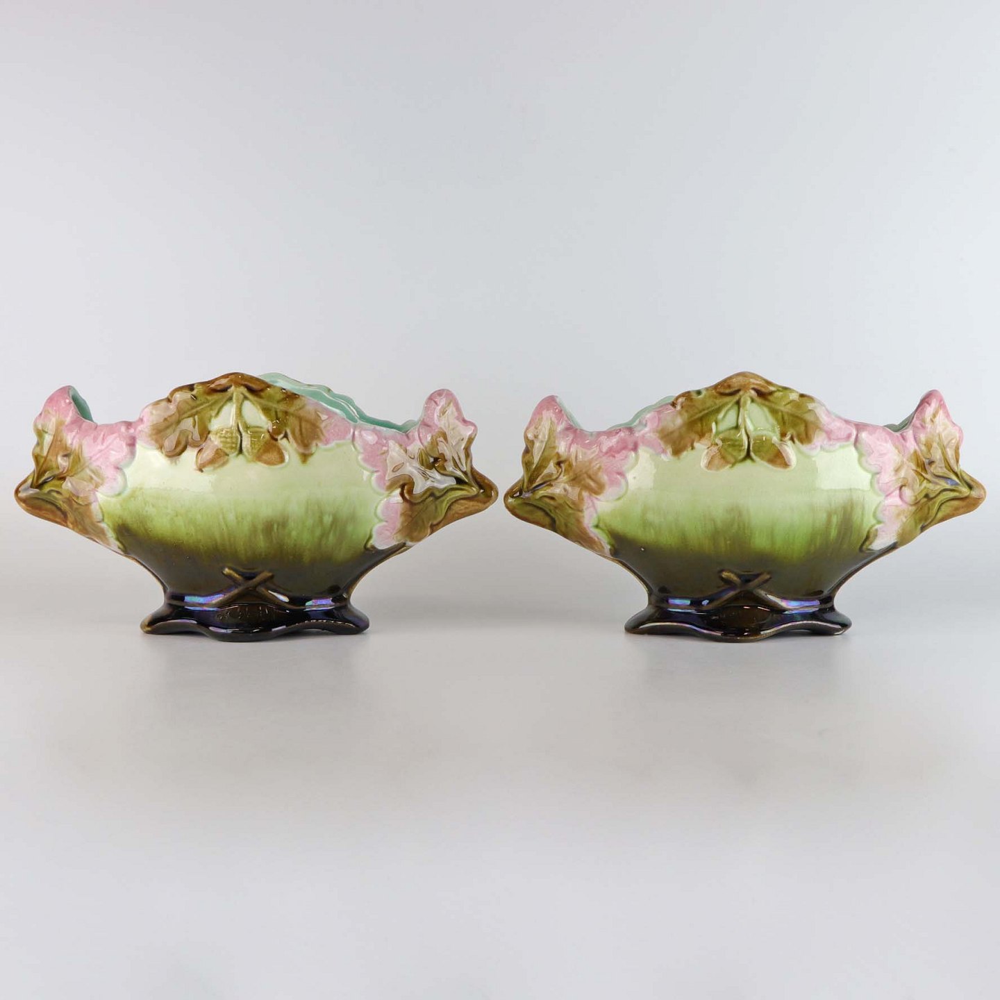 Et sæt ovale bordvaser i fajance i stilen art nouveau Majolica dekoreret med blade og agern. Nr. 6428