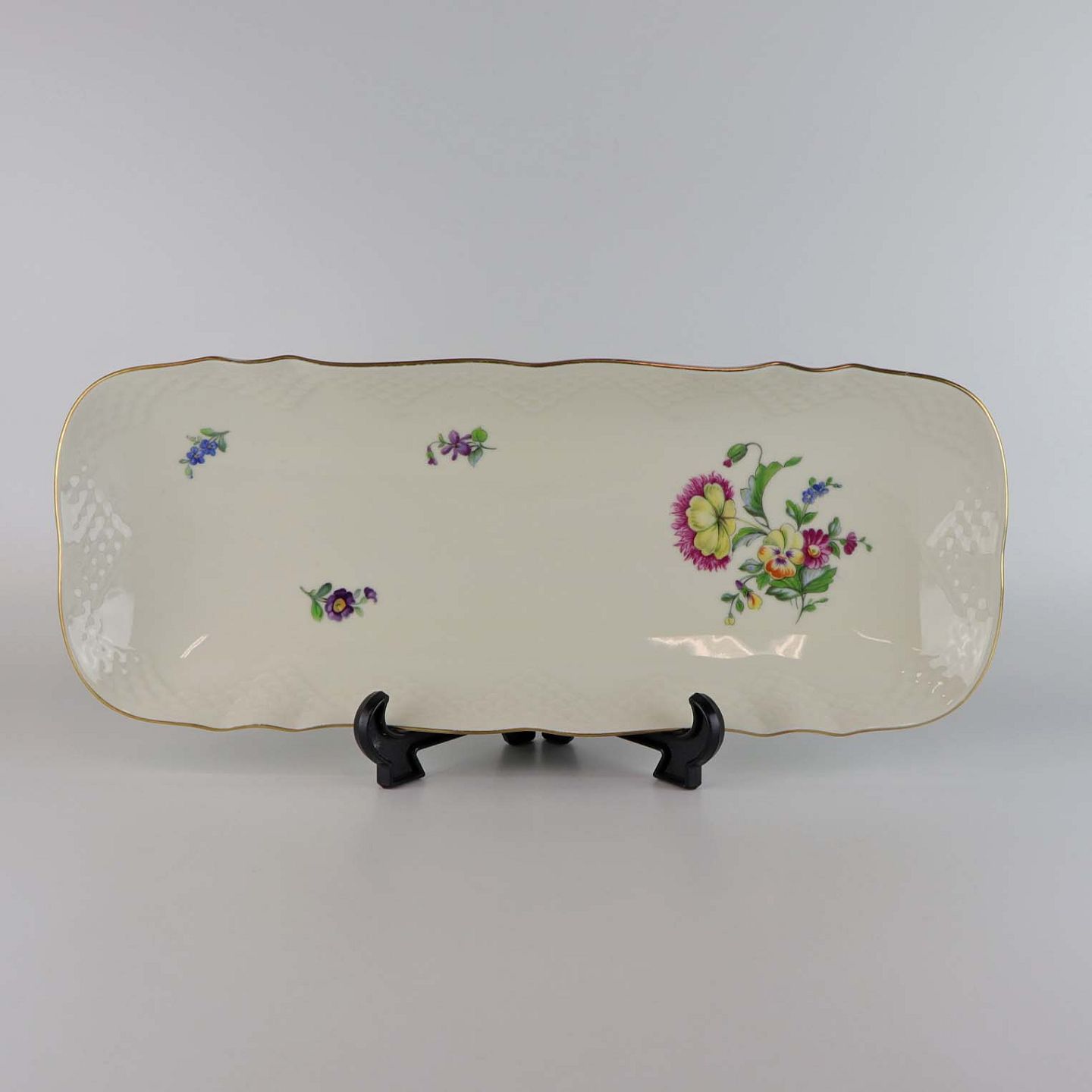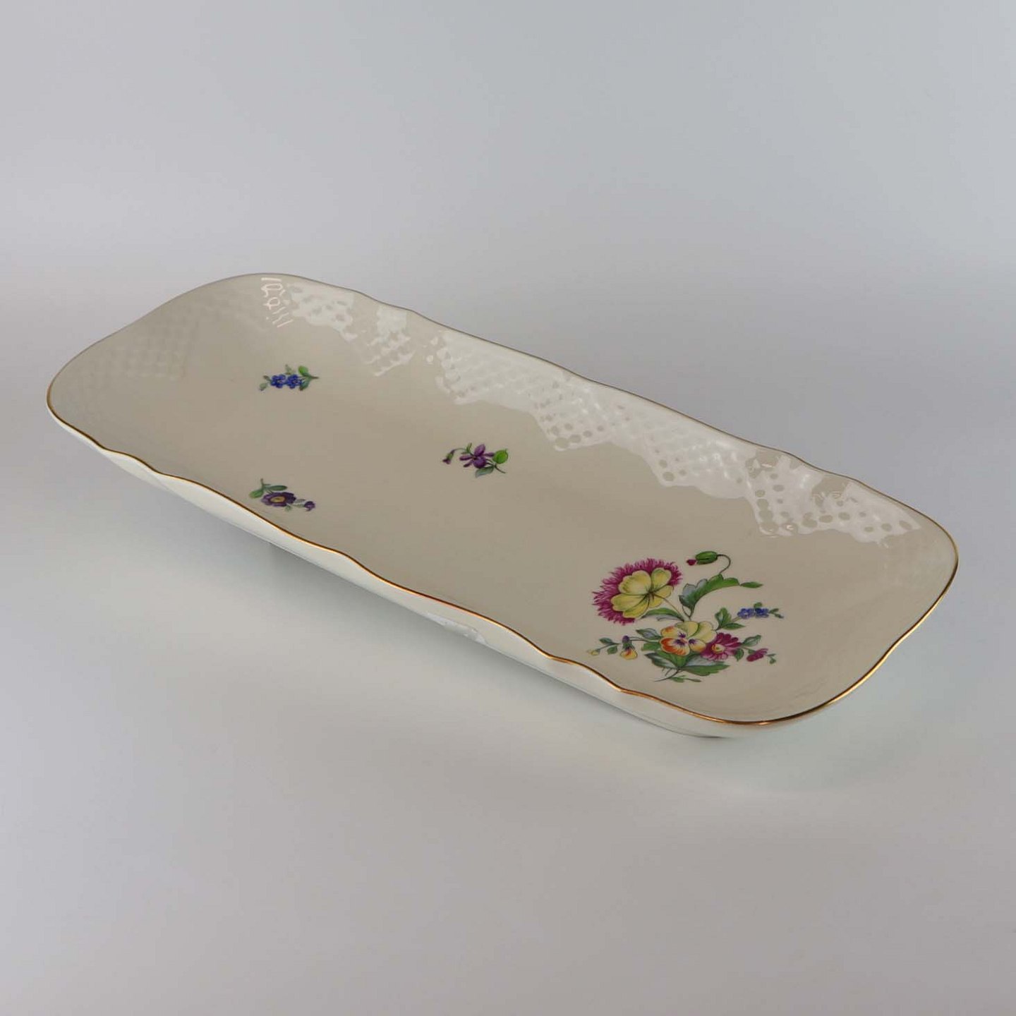 Aflangt serveringsfade i porcelæn fra stellet Saksisk blomst Nr. 205