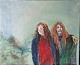 Maleri på lærred opspændt på træramme med motiv af to kvinder. Dateret 2015