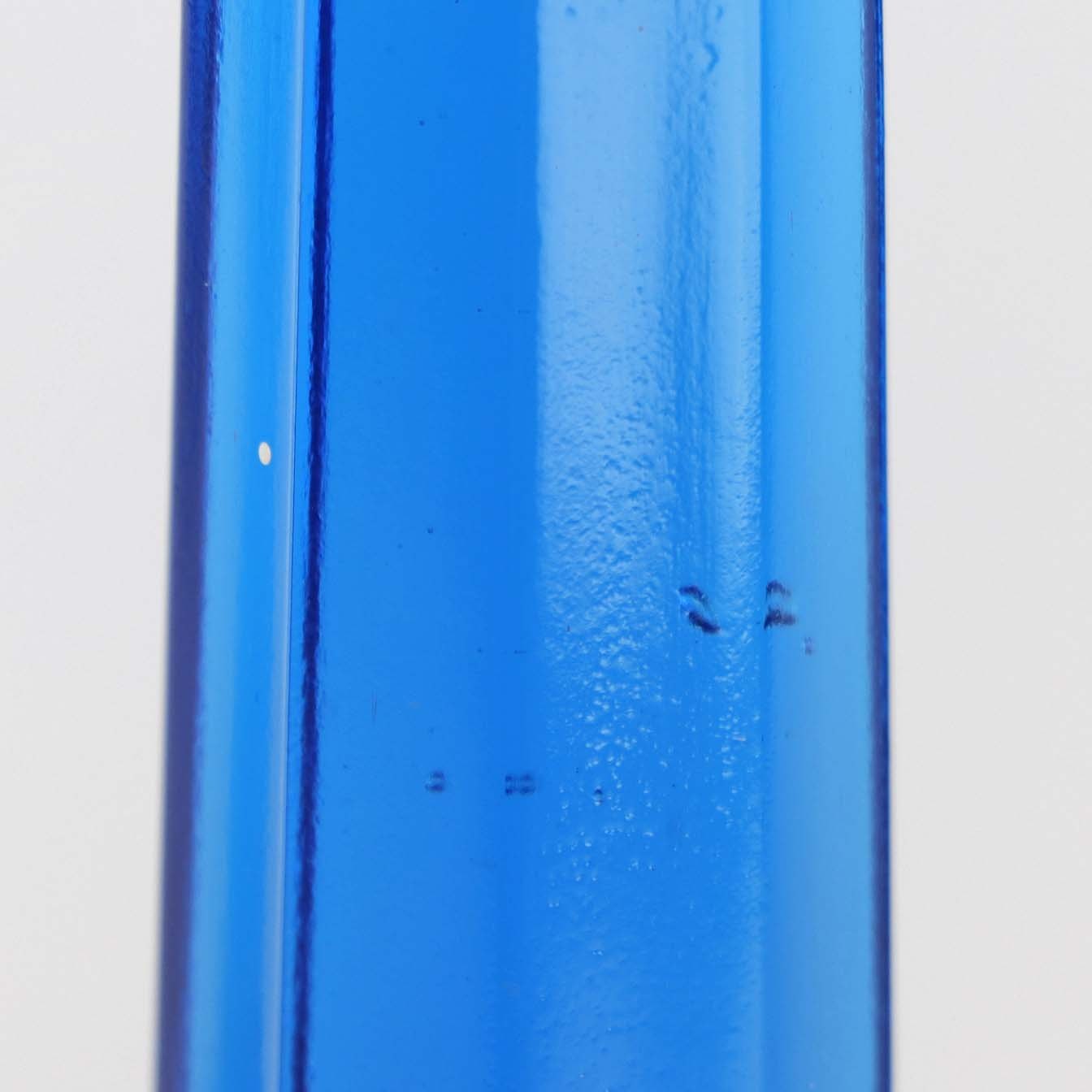 Fremstår med to hvide pletter på glas, enkelte luftbobler samt spor efter stearin.
