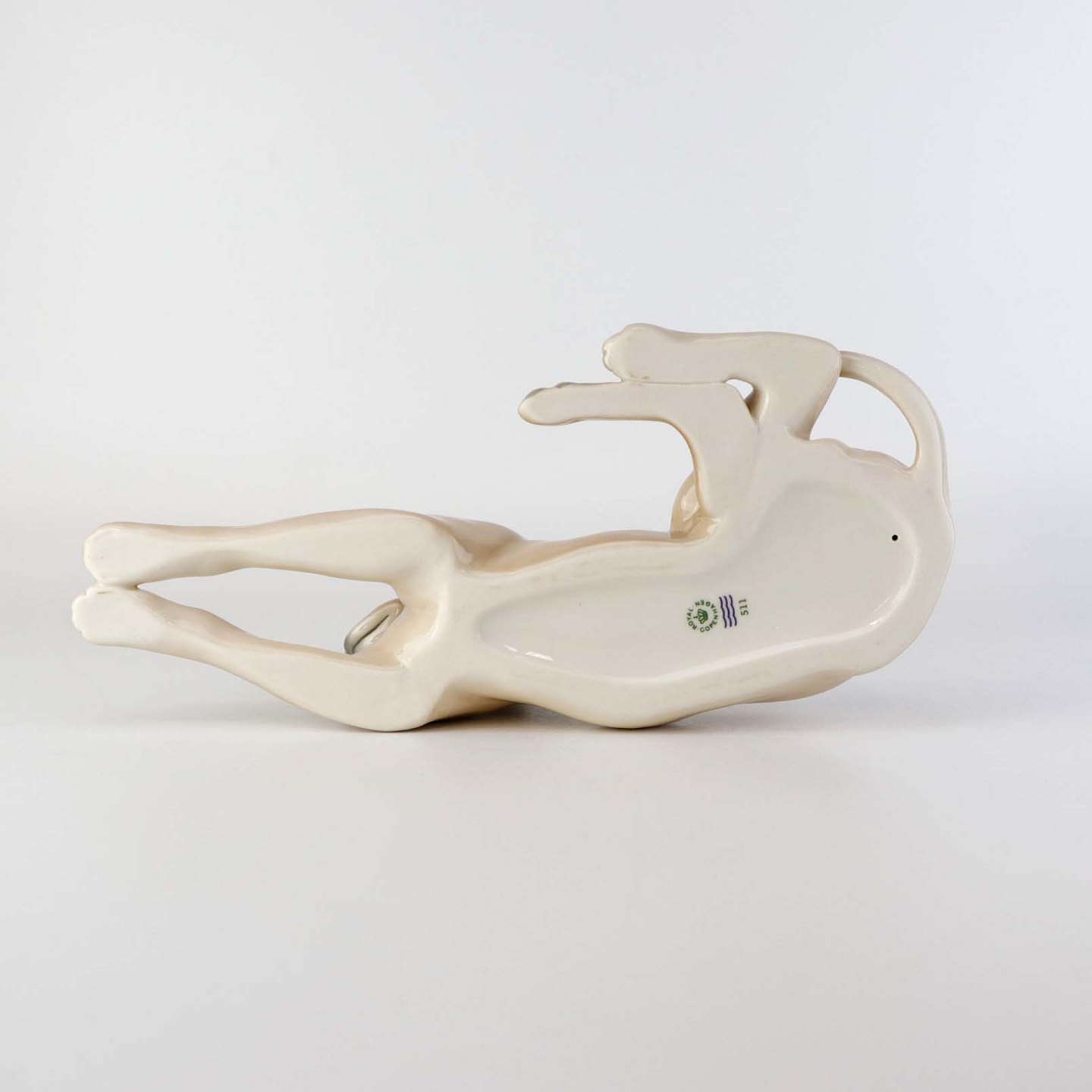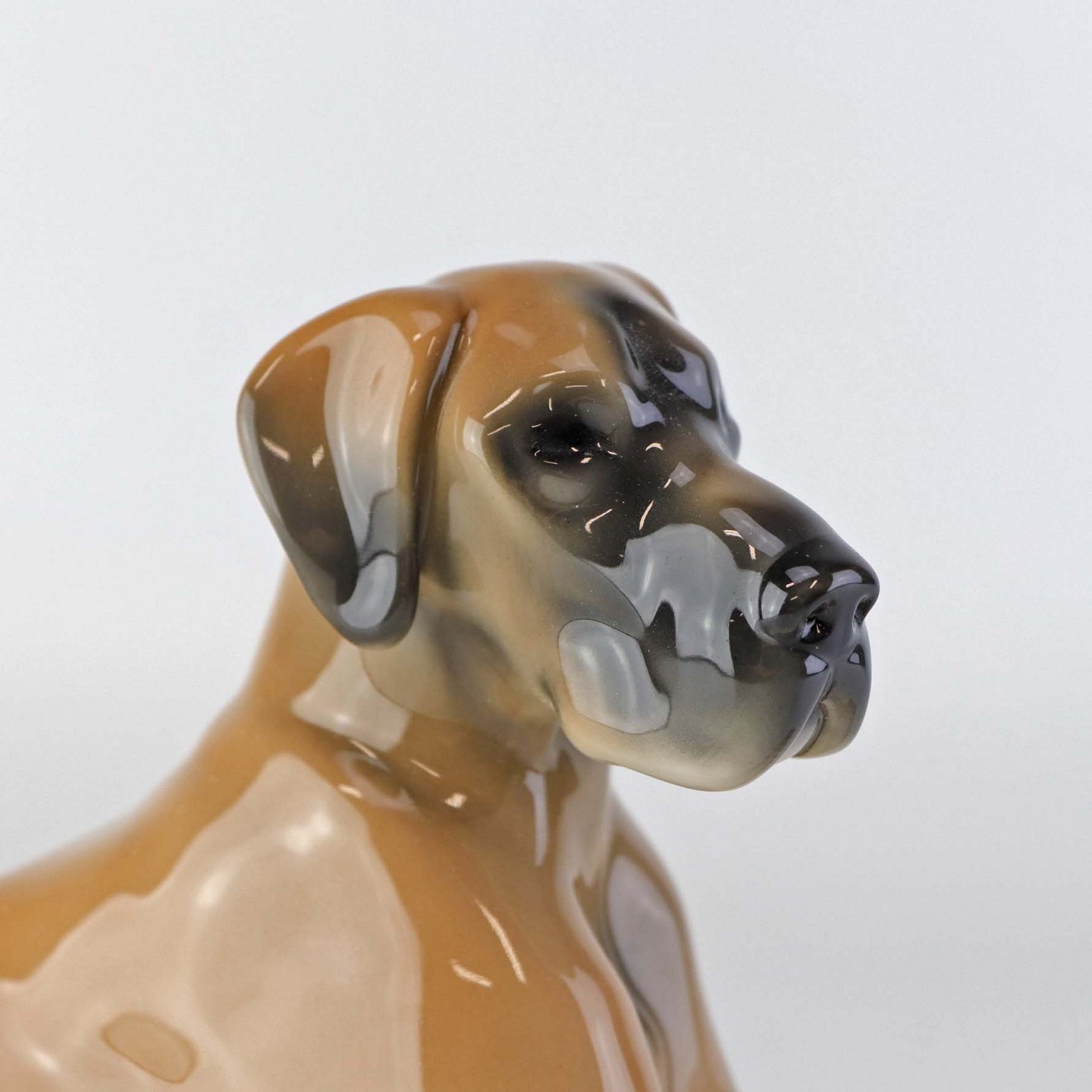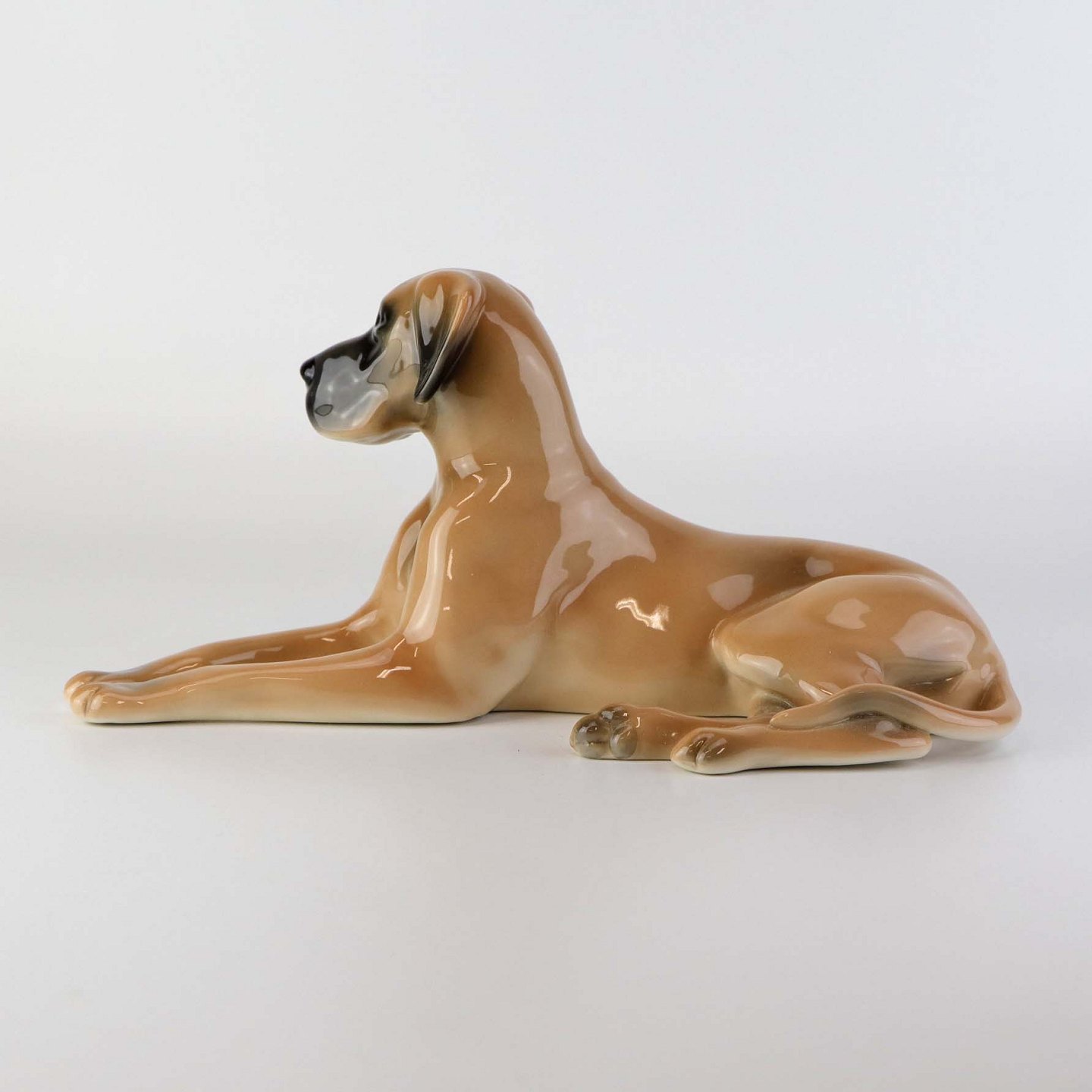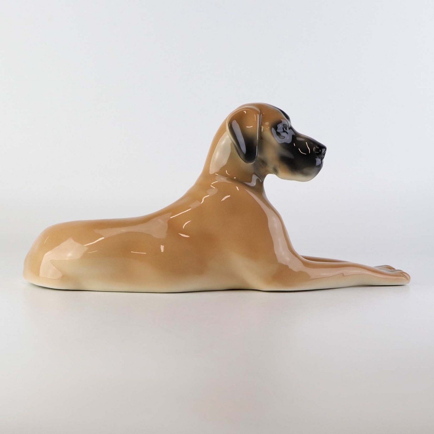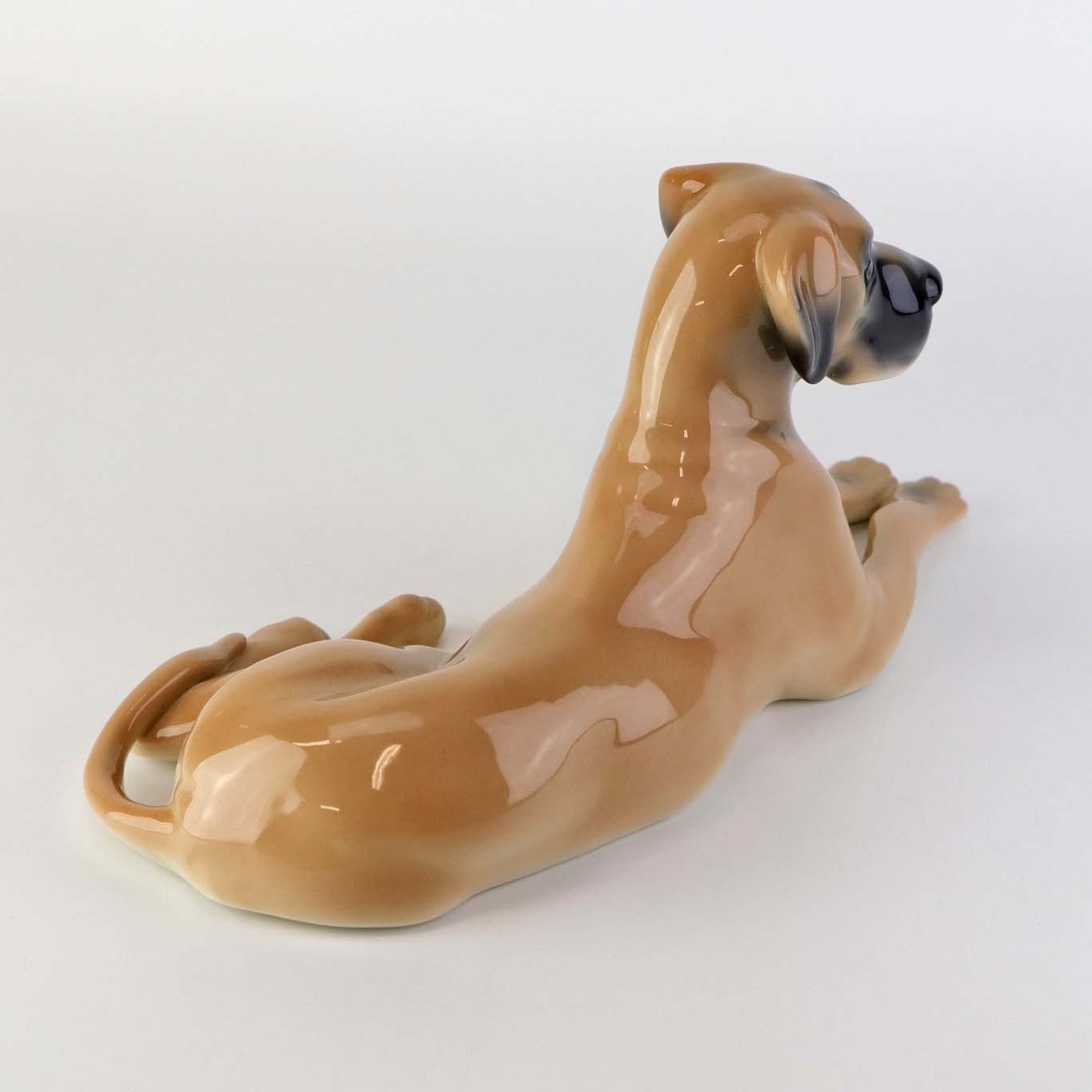 Figur i porcelæn med motiv af liggende brun hund af racen granddanois også kendt som Great Dane. Nr. 511