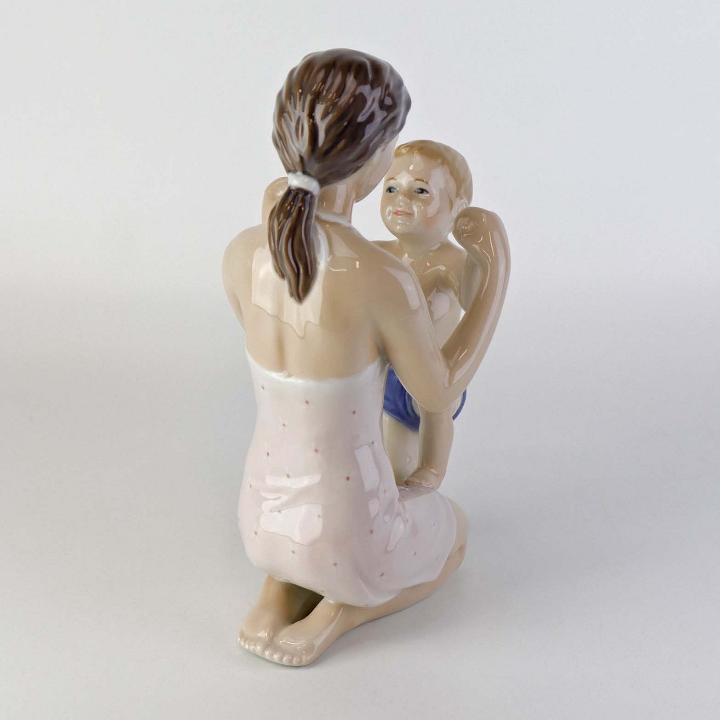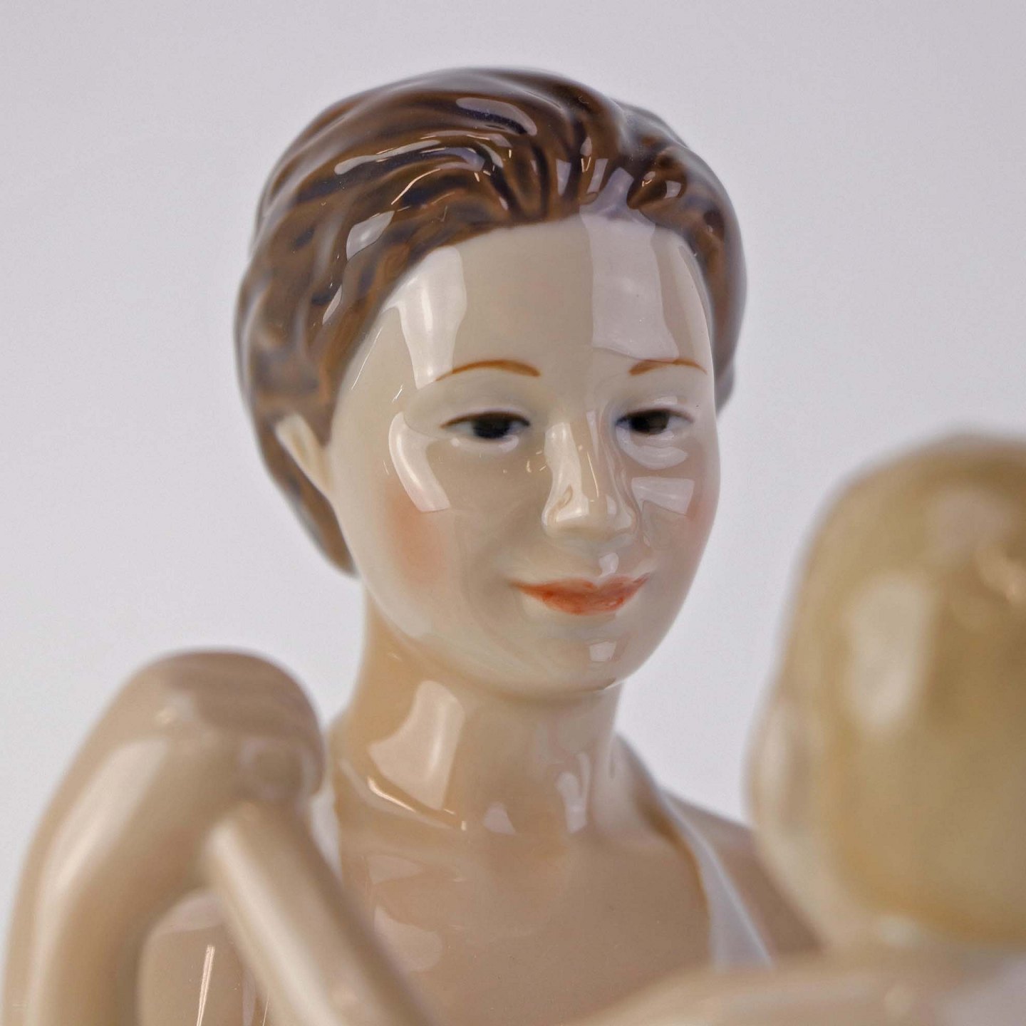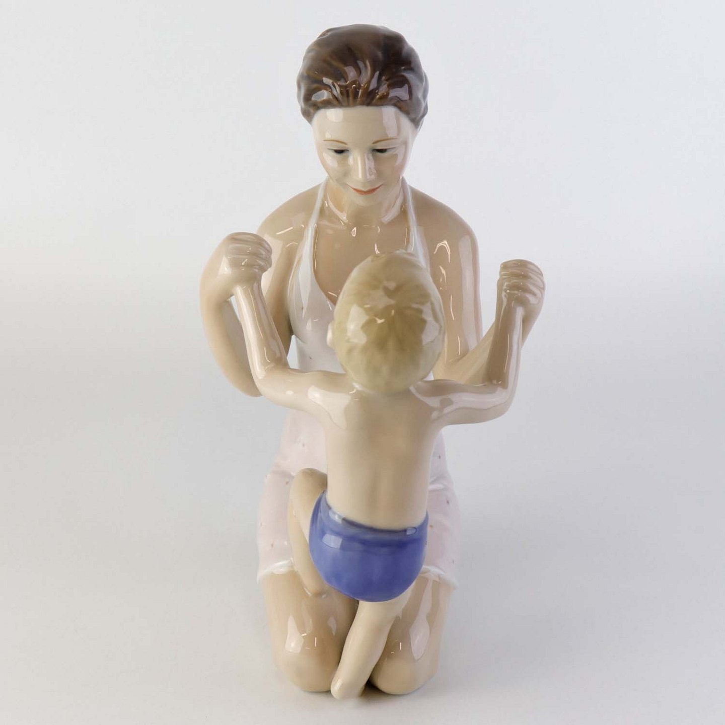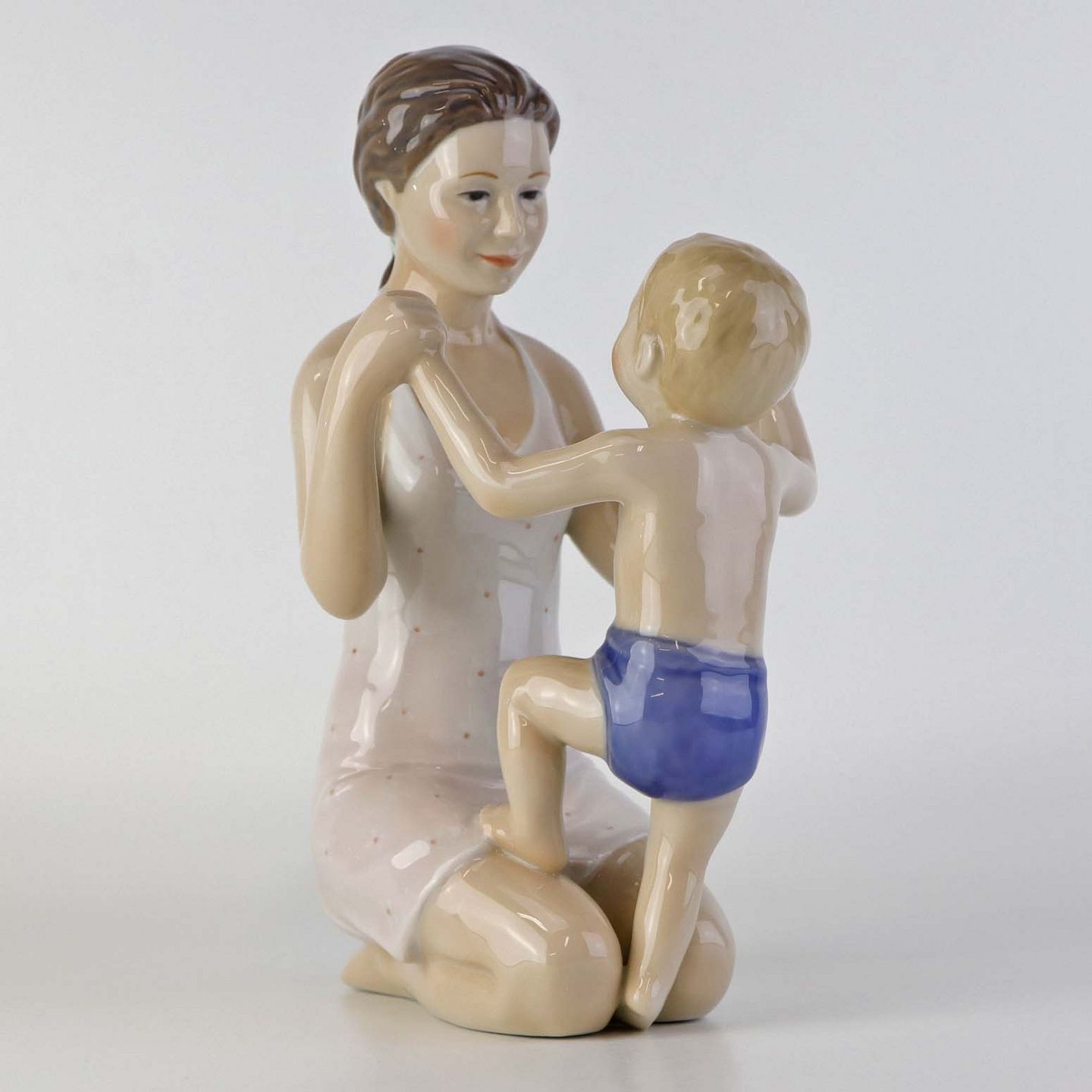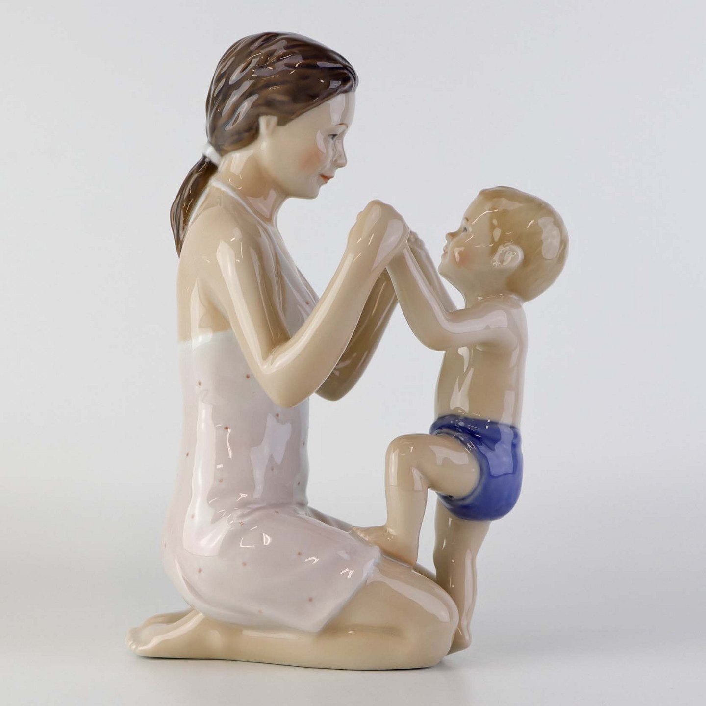 Figur i porcelæn med motiv af siddende ung kvinde med hendes lille dreng stående på skødet. Nr. 544