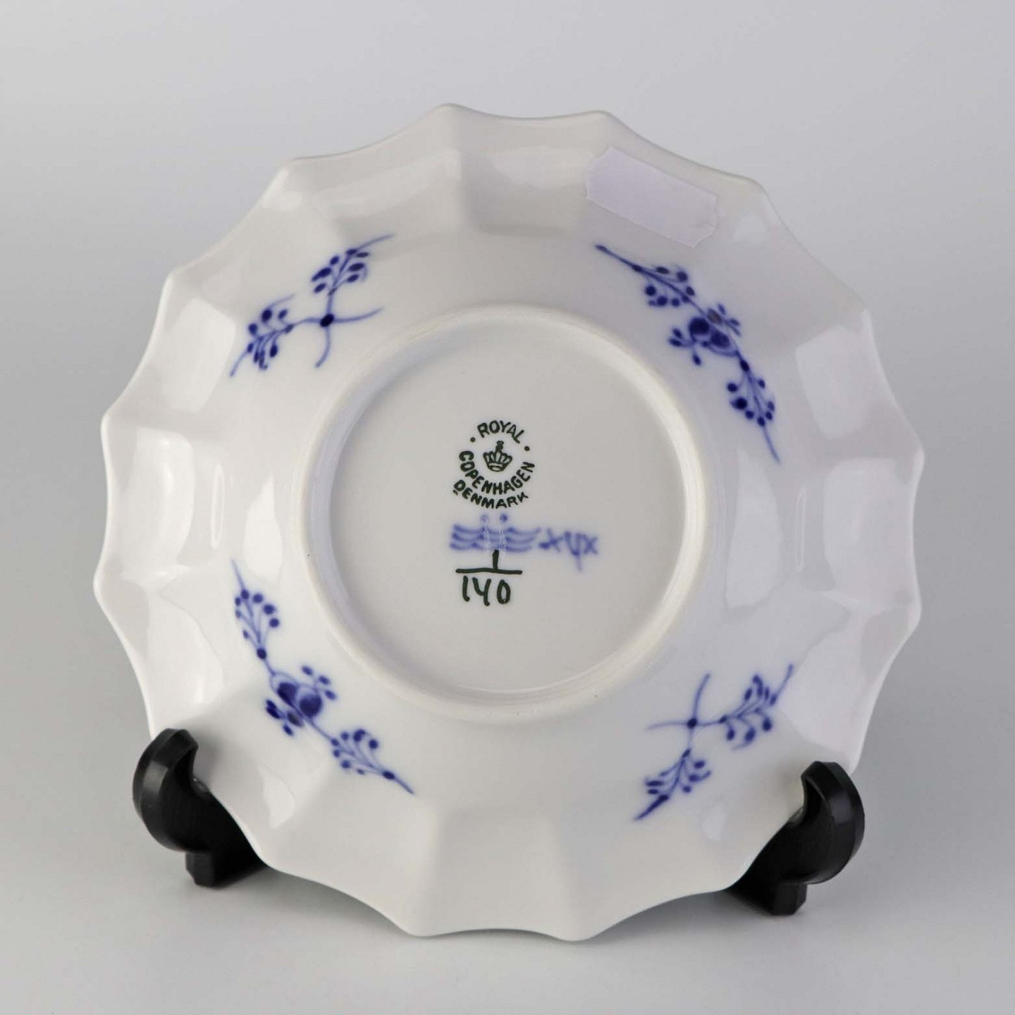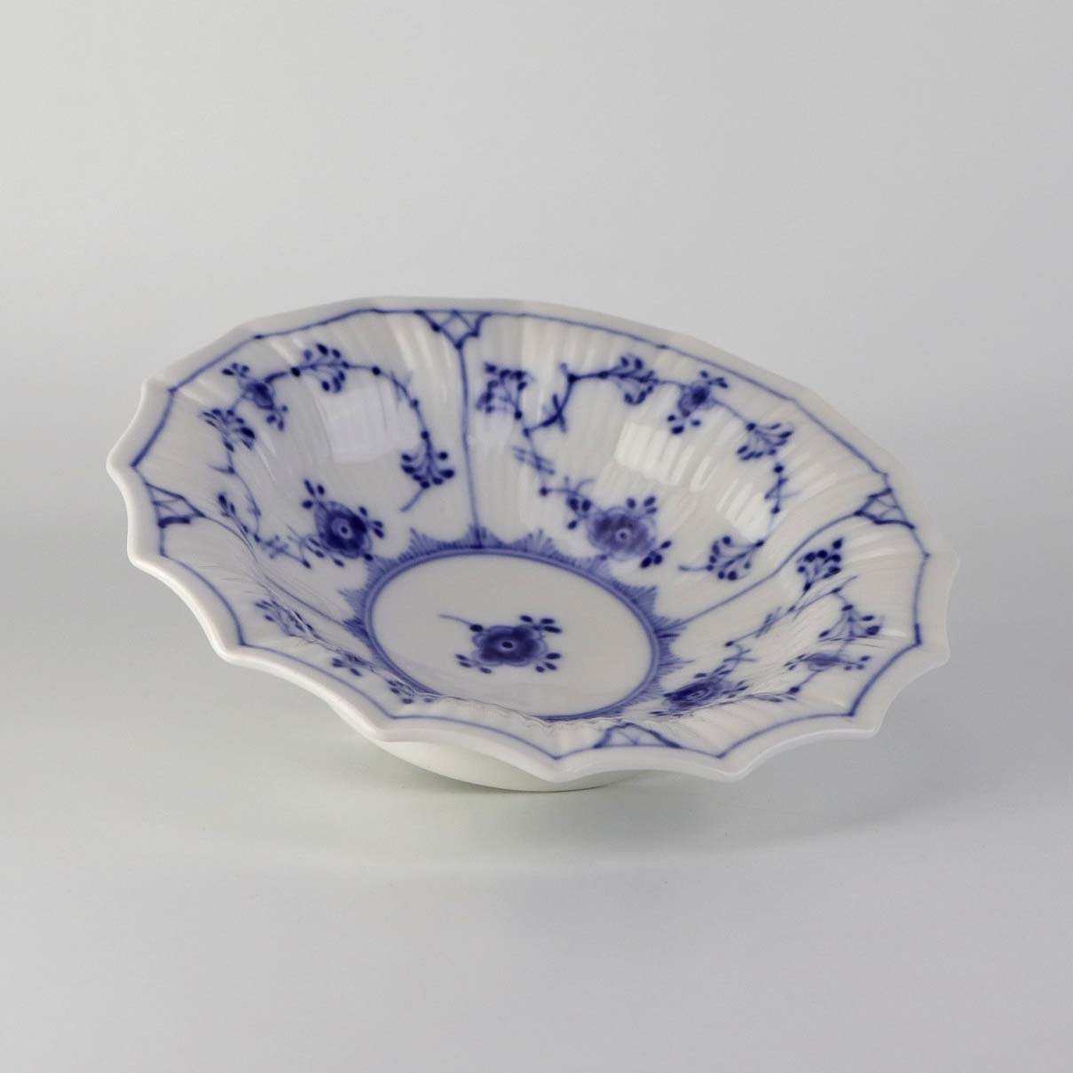 Skål med kantet sider i kongeligt porcelæn fra stellet musselmalet riflet. Nr. 1/140
