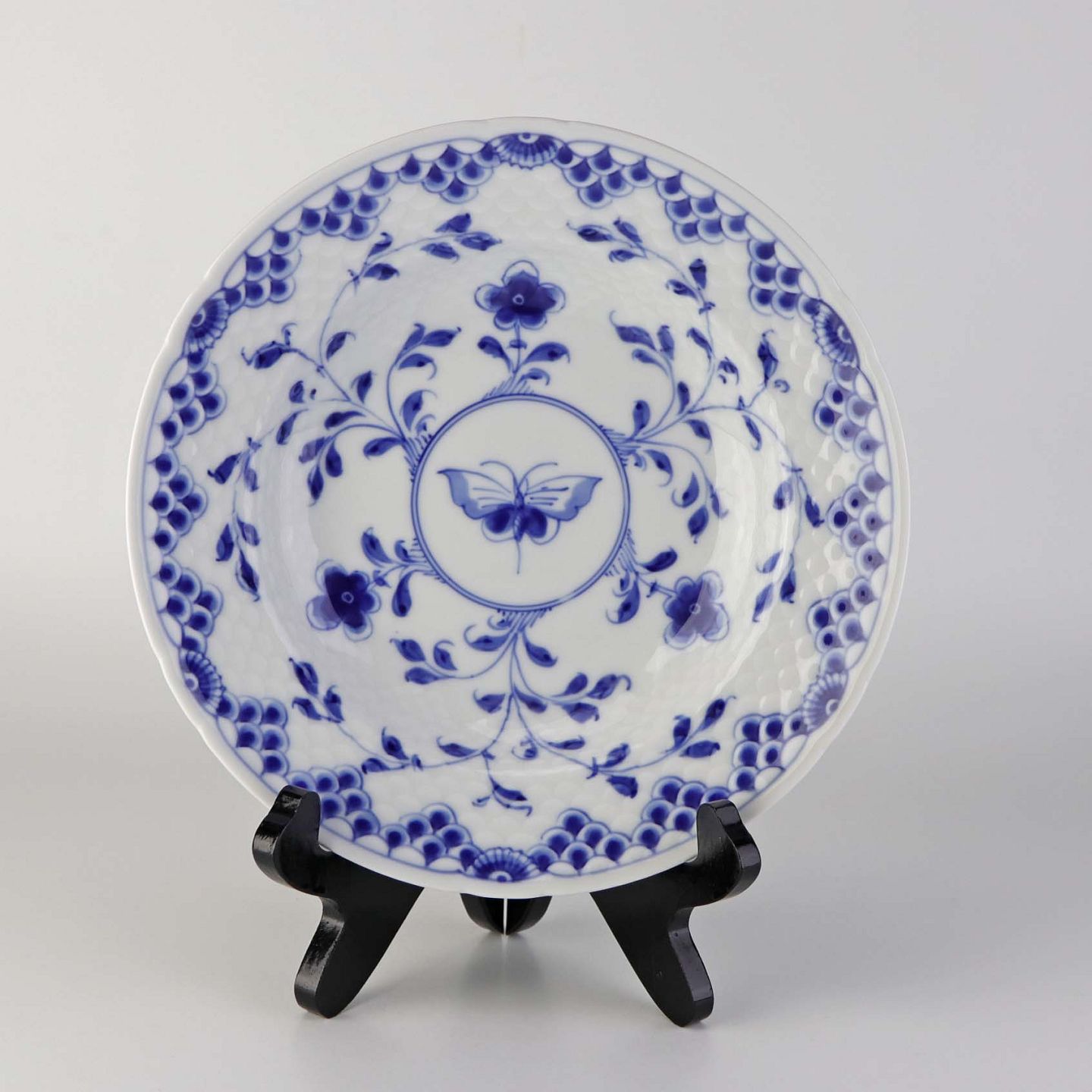 Dyb tallerken i porcelæn fra stellet Dickens Sommerfugl. N. 323