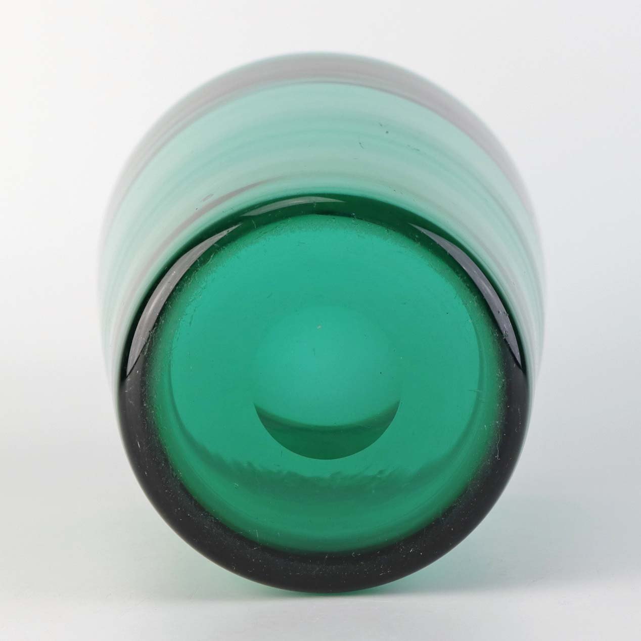Fremstår med støbningsboble i glasset samt brug spor under bund. Kugleslebet i bund.